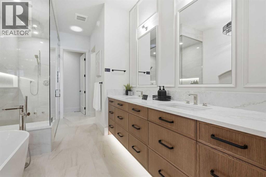 OPEN HOUSE SATURDAY, APRIL 25TH & SUNDAY, APRIL 26TH FROM NOON - 5 PM BOTH DAYS. Nestled in the heart of Serenity at Heritage Pointe and backing onto a beautifully landscaped greenspace, this luxurious 3 bedroom, 3.5 bath villa with the Sawyer floorplan has been carefully crafted by RareBuilt Homes & offers over 3200 sq ft of exceptional living space. The open concept main floor impresses with engineered wide plank hardwood, custom tile detailing, 10’ ceilings, and a spacious great room with large sliding doors that open to a covered rear deck and private fenced yard. The chef inspired kitchen is equipped with a full KitchenAid appliance package, including a six burner gas cooktop, custom hood fan, refrigerator/freezer, dishwasher, and built in oven with convection microwave. A generous island, ample storage, and thoughtful layout make this kitchen ideal for both everyday living and entertaining. A stylish home office with beam detailing adds both character and functionality. The primary suite provides a serene retreat, complete with a spa inspired 5 piece ensuite featuring heated floors, a freestanding soaker tub, an oversized shower, and a custom walk in closet. The fully finished basement extends the living space with a large recreation room, two additional bedrooms (one with a 3 piece ensuite), a second full bath plus a home gym & infrared sauna. Additional highlights include tilt and turn triple glazed windows, 6 standard solar panels, a high efficiency furnace, heat pump, air conditioning, and radiant in floor heating—ensuring year round comfort and energy efficiency. Outside, enjoy a covered composite rear deck with custom aluminum railing plus a fully landscaped & irrigated yard including ornamental fencing and gate in the rear yard providing access to 2 km of local pathways. Parking is effortless with a fully finished and painted oversized double attached garage complete with epoxy flooring, aggregate driveway and EV charger readiness. Enjoy the freedom of full landscape maintenance and snow removal plus close proximity to Heritage Pointe Golf Club, LaunchPad Golf at Heritage Pointe & easy access to Calgary or Okotoks via highway 2 or 2A. (id:63190)