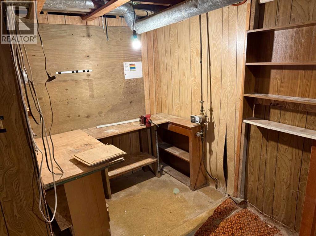 Cute bungalow in the Town of Vulcan, estimated to have been built in 1926. It features one-bedroom and one-bathroom. Main level also has the kitchen with eating area and living room. The basement is partially developed with a shop area, utility room, and storage room. The house has composite siding and asphalt shingles. This property is a fixer upper. It is conveniently located close to a walking path, schools, and other recreational facilities. There is off-street parking at the front. Property is being sold in "as is where is" condition, as the owner has never lived in the property. (id:63190)