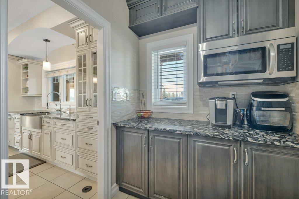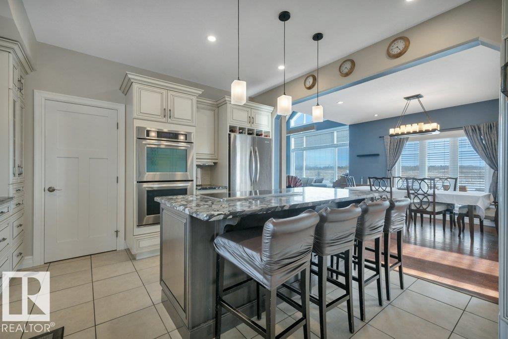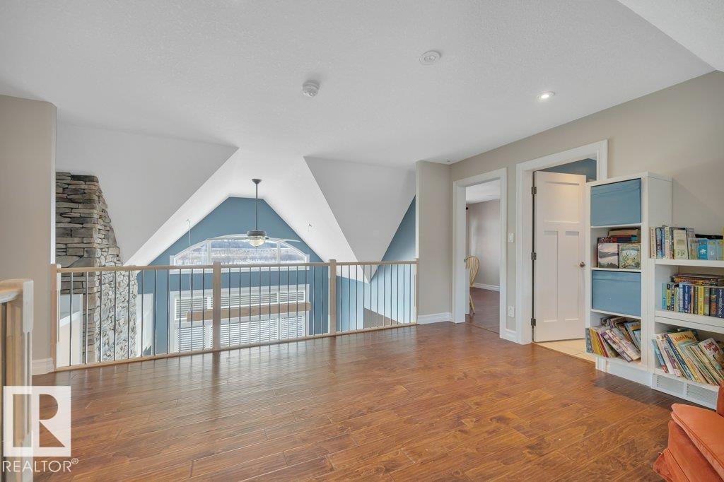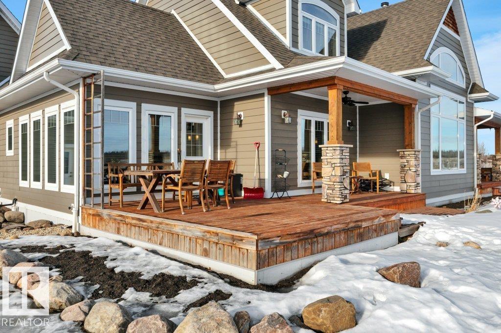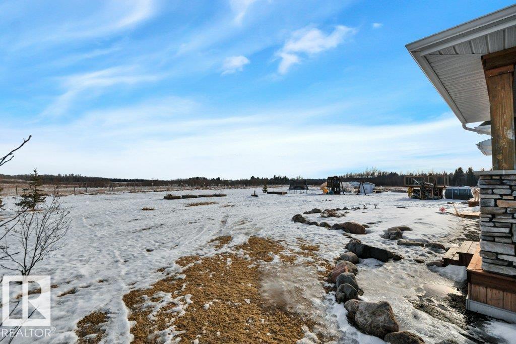 Perfect family living on 4.37 acres. This 6-bed, 1.5-story home features durable Hardie Plank siding and a secure electronic gate. The 1,700+ sq. ft. main floor boasts a master retreat with ensuite, a bright sunroom, and a custom kitchen with a walk-in pantry. Vaulted ceilings in the living area feature a gas fireplace and an open view to the upper floor, which includes a convenient laundry chute for busy families. The property is highly versatile with a private guest suite above the double attached garage. The finished basement is built for fun with custom built-ins for a media center, a wet bar, and a pool table. Outside, the fully fenced yard backs onto farmer’s pasture, featuring an above-ground pool with deck, hot tub, fire pit, play center, storage shed, and greenhouse. Located in a quiet subdivision just 20 mins to the Edmonton International Airport. Space, privacy, and function for the whole family. (id:63190)