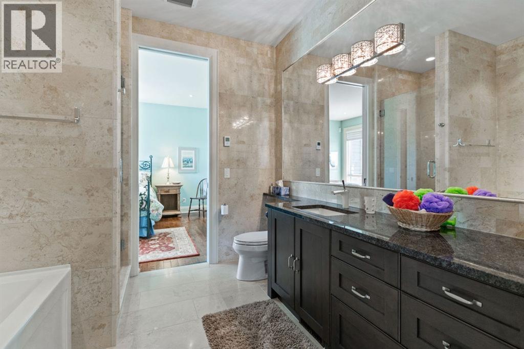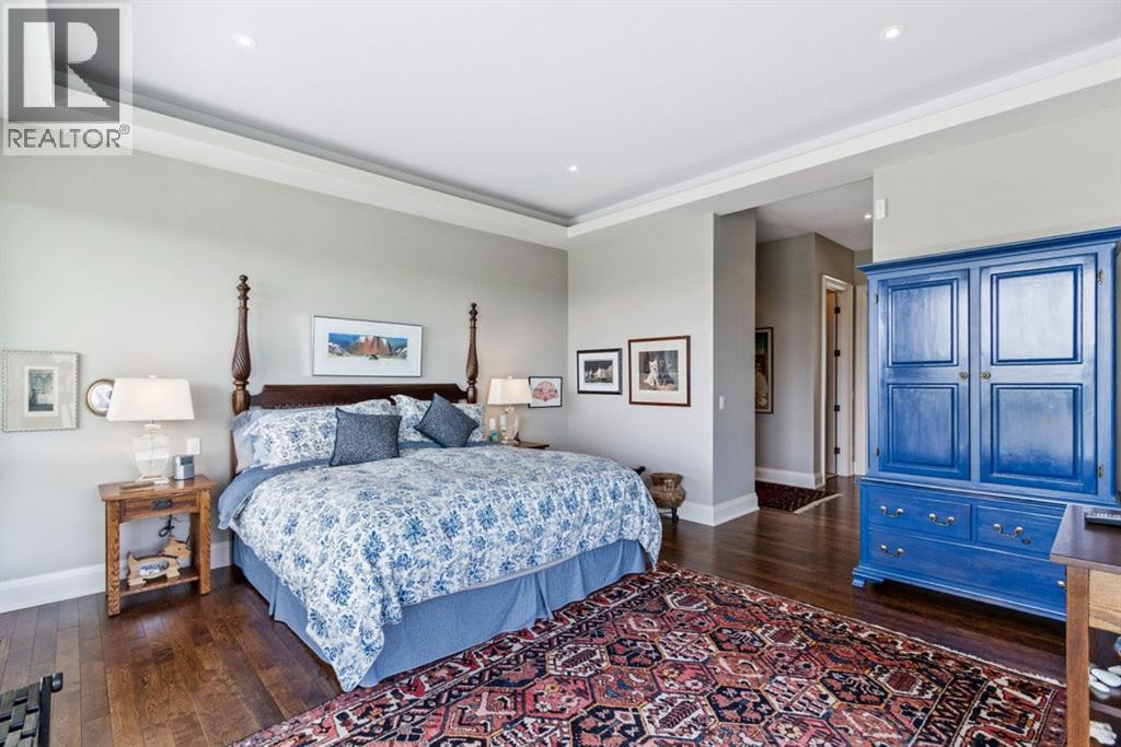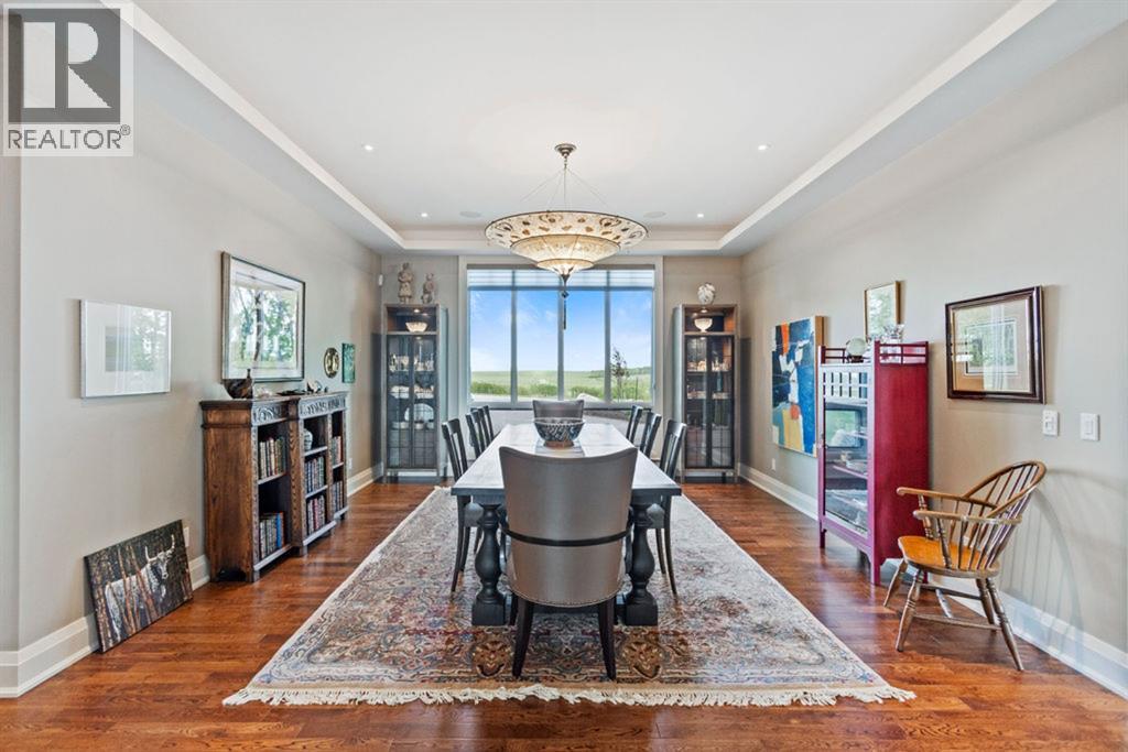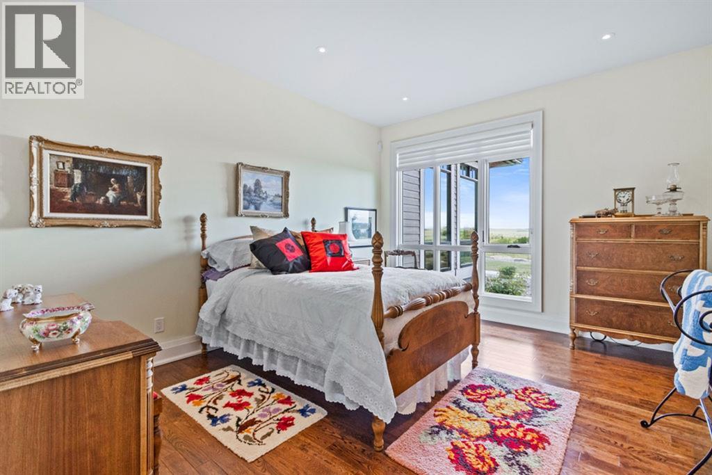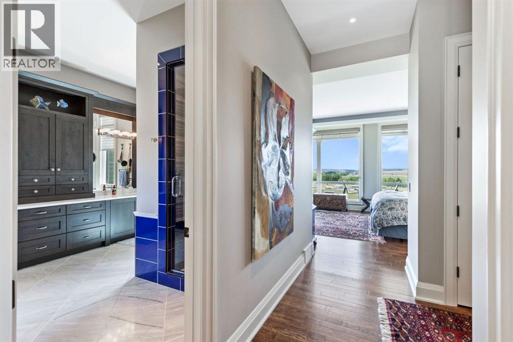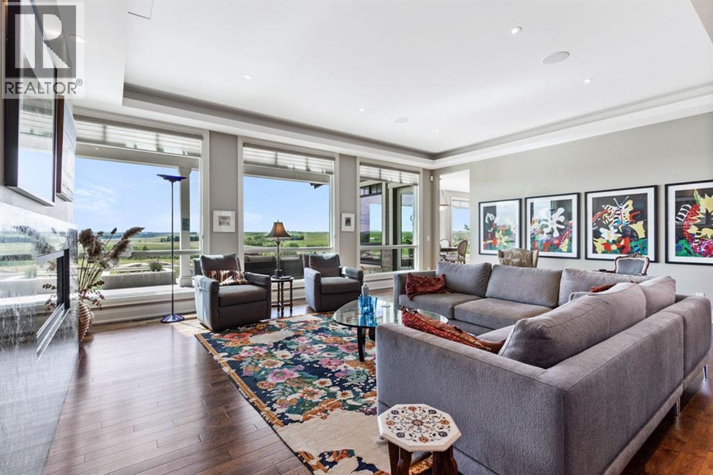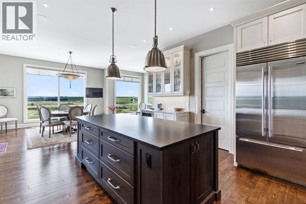 Stunning Custom Built Bungalow sitting atop the biggest hill on 122 acres with breathtaking views in all directions. Unobstructed mountain views to the west, golf course to the north, the friendly hamlet of madden east and south for miles! Enter from your gated private paved lane-way and find this architectural thing of beauty at the peak. This home is just shy of 4000 sq/ft on the main level and boasts another 2700sq/ft of developed space in the basement. The main floor has gleaming hardwood flooring throughout along with slate entry and heated tile flooring in all the bathrooms. Oversized low UV transmission windows with Hunter Douglas blinds throughout helps capture the most amazing landscapes. The executive chefs kitchen has stainless steel appliances including a Wolff gas stove, Sub Zero fridge, Dacor wall oven and microwave. All cabinetry milled by Legacy with soft close and upgraded shelving and storage. Huge center island with Cambrian Black satin granite is a classic focal point in this exquisite home. There are two dining areas for all sizes of gatherings and a huge living room with descending TV from the ceiling and natural gas fireplace. The large master bedroom comes with a 4 piece en-suite with modern tiled shower, his/her sinks in Bianco Rhino marble and a walk in California closet. Main floor is completed with two other bedrooms with California closets and Jack n Jill 4 piece bathrooms, an office, and den adjacent dining room. The second fireplace is found in the library or study for those that like to kick back with a glass of wine and enjoy a good book. Basement is finished with a huge family/ games room and tons of storage. The attached triple garage measures 38x22 it has a separate entry and big bright windows and upgraded wood doors. The west facing concrete patio is covered with skylights so you can enjoy it in all weather! The property is professionally landscaped with mature trees and raised garden boxes for the green thumb. Extra features i nclude 2 independent furnaces and AC systems, in-floor heating, water softening system, instant hot water, in-wall Vacu flo, Sonos sound, Security system and more! Combination of pasture and grade A crop land with good perimeter fencing. Rare opportunity to own a beautiful parcel of land this size commutable to Calgary with an equally magnificent home to match! (id:63190)