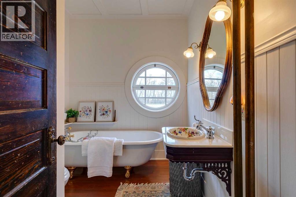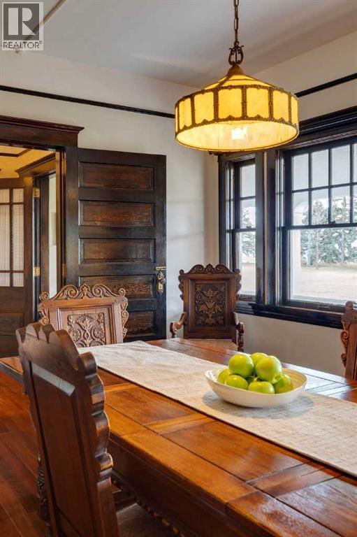 Welcome to an exceptionally well-preserved and thoughtfully updated historic residence, set on 21.75 acres of prime land in the County of Newell, just outside Brooks, Alberta. Known formally as The Duke of Sutherland Residence, this rare two-storey Craftsman-style home offers timeless character, superior craftsmanship, and over 3,600 sq ft of refined living space. This grand yet welcoming home features 5 bedrooms, 2.5 bathrooms, formal living and dining rooms, a generous kitchen, large bedrooms, two staircases, 9’- 4” ceilings on the main floor, and a spacious sunroom/back entry, family room, and large laundry/utility room. 3 of the 5 bedrooms include walk-in closets, while original details such as solid wood doors, trim and moldings, and two original brick fireplaces showcase the home’s enduring quality. Lovingly restored, renovated, and maintained over the past 26 years, the current owner has been dedicated to preserving the home’s historic integrity while incorporating thoughtful, sustainable modern updates. Original features that remain proudly intact include fir hardwood floors, two clawfoot soaker tubs, a striking round ox-eye bathroom window, and a fully restored deep, covered, south facing, full-length veranda—perfect for enjoying the peaceful surroundings. With outstanding curb appeal, the home sits both stately and serene, offering picturesque views of the yard and gardens from each of the 32 double-hung wood windows, which flood the home with natural light. The property is serviced by municipal water, supplemented by a 900-gallon basement water tank to ensure uninterrupted supply. Adding exceptional value, the Land Title includes the highly sought-after EID First Water Rights. Irrigation lines are already in place to service the pasture, yard, and gardens. The home is efficiently heated via radiant boiler heat. Recent upgrades include: 2 new electrical panels (2026), updated wiring, renovated bathrooms, new Pella windows in the sun room and living ro om (west wall), new exterior painting & new cedar shingles. Approximately 6 acres encompass the home and established gardens, while the remaining 15.75 acres are well-suited for pasture, crops, cattle, or horses. Registered as a Provincial Historic Site since 2000, the property qualifies for applicable heritage restoration grants. While some of the exterior design and select historic interior elements must be preserved, approved interior updates and modernizations are permitted, including projects such as a kitchen renovation, subject to consultation with the Alberta Community Development advisor. This is a rare opportunity to own a truly remarkable home and a meaningful piece of Southern Alberta history.Book your private showing today! *** For the Property 'Historic Details' & list of 'Property Features & Upgrades' contact the Listing Agent. (id:63190)