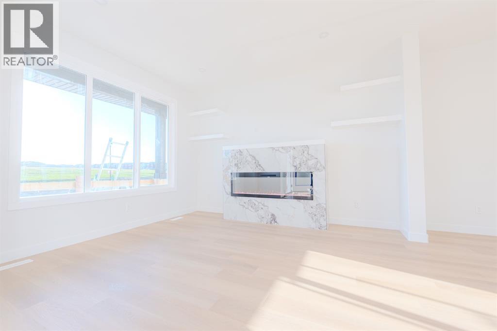 Experience the comfort and style of this custom-built home in the welcoming community of Crossfield. This pre-construction laned home offers 1,443 sq. ft. of smartly designed living space over two stories, with 9-ft ceilings on every level creating a bright, open feel.A charming front porch and a spacious backyard deck set the stage for relaxed summer evenings with family and friends. Inside, the open-concept main floor blends style with function. The kitchen features quartz countertops, a breakfast bar, stainless steel appliances, and textured cabinets. The great room is filled with natural light and highlighted by a sleek electric fireplace. Durable vinyl plank flooring and dual-pane windows add both style and efficiency. A convenient two-piece powder room completes the main floor.Upstairs, the primary suite includes a walk-in closet and a spa-inspired 4-piece ensuite. Two additional bedrooms share another full bathroom, and the laundry room with sink makes everyday living easier.Additional features include a double detached garage, landscaped backyard, and a roughed-in basement with a separate side entrance, giving you options for future development. Buyers also have the opportunity to personalize finishes to match their style.Iron Landing in Crossfield is a family-friendly community with parks, playgrounds, schools, shopping, and dining close by. Crossfield Elementary and W.G. Murdoch School are within walking distance, while Airdrie is less than 10 minutes away and Calgary just 25 minutes. (id:63190)