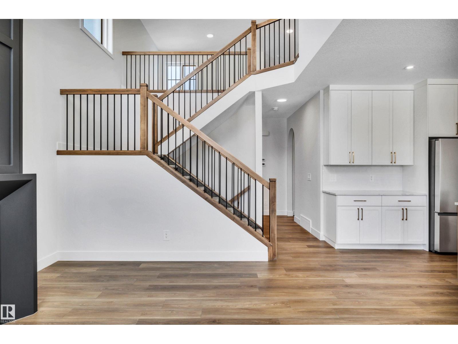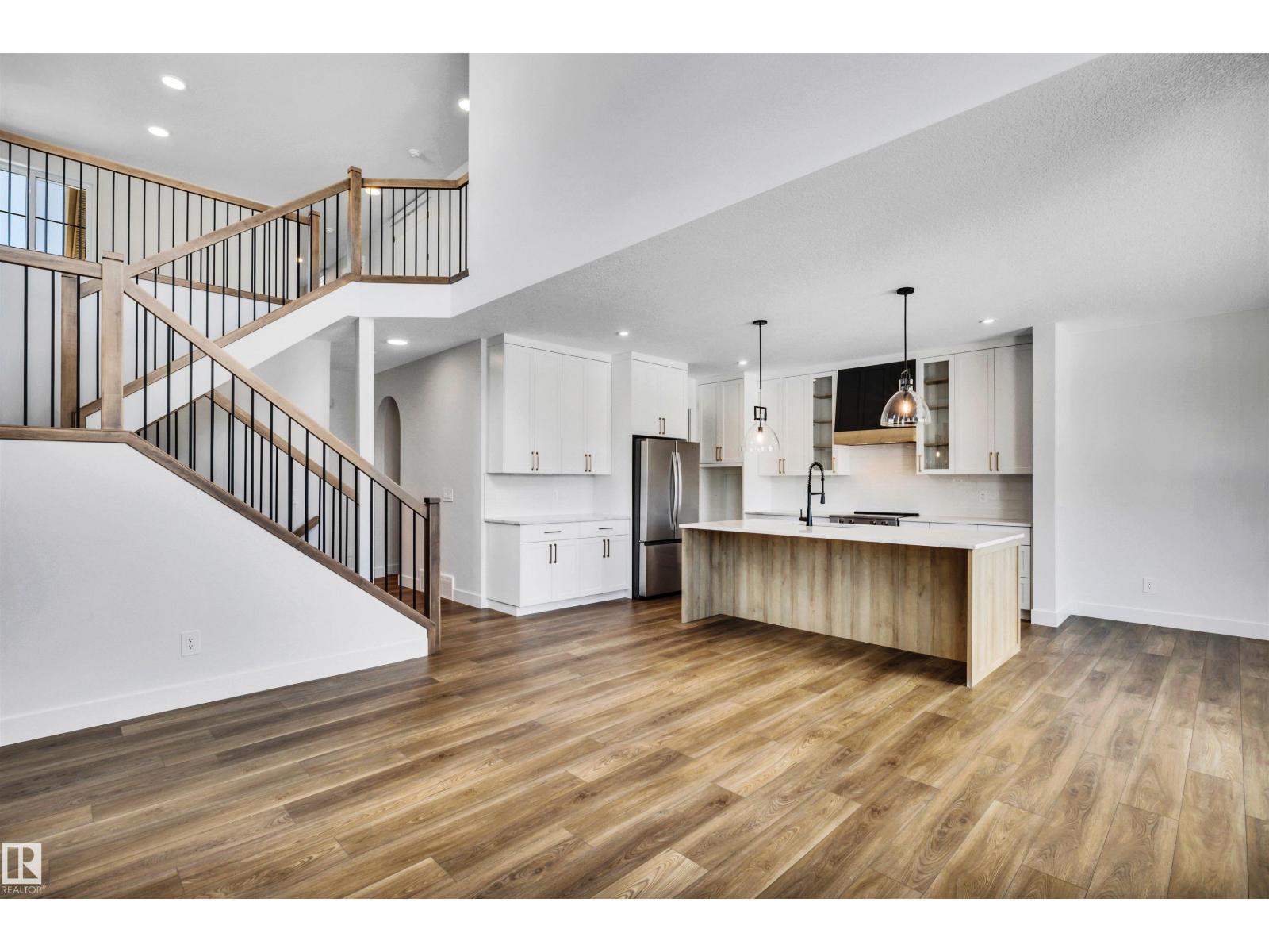 Welcome to this beautifully crafted two-storey walkout home by Homexx, where thoughtful design meets everyday comfort. The open-concept layout is perfect for entertaining, showcasing a chef-inspired kitchen with a large island and custom cabinetry that flows effortlessly into the dining area and the open-to-below great room. A generous mudroom and private office, both complete with built-in cabinetry, provide smart storage and functional living space. Upstairs, you’ll find three well-appointed bedrooms, a spacious bonus room, convenient upper-floor laundry, and two full bathrooms, including a bright primary retreat with a luxurious 5-piece ensuite, separate soaker tub and shower, and an impressive walk-in closet. Finishing touches include quartz countertops, elegant lighting, 8-foot interior doors, stylish wrought iron railings, and 200-amp electrical service. The home will be fully landscaped, backs onto a pond and features a west-facing deck and oversized double garage. Photos are of a similar home. (id:63190)