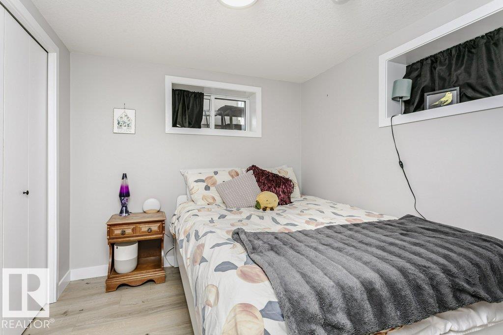 Cute as a button and beautifully updated, this bright and sunny bungalow is ideally located in the mature and highly sought-after neighbourhood of Jasper Park. The main floor features a stunning, updated chef’s kitchen with stainless steel appliances, ample counter space, and an abundance of natural light from large windows throughout the home. Stylish updated vinyl plank flooring adds a modern touch. The fully finished basement offers additional living space, complete with a bedroom and full bathroom, perfect for guests, a home office, or a growing family. Situated on a large lot, the home also features a rear deck ideal for relaxing or entertaining. Extensive updates include siding, soffits, fascia, and roof, offering peace of mind for years to come. Located just down the street from a park and school, with numerous amenities nearby, with over 1300 square feet of living space, this move-in-ready home combines charm, functionality, and an unbeatable location. (id:63190)
