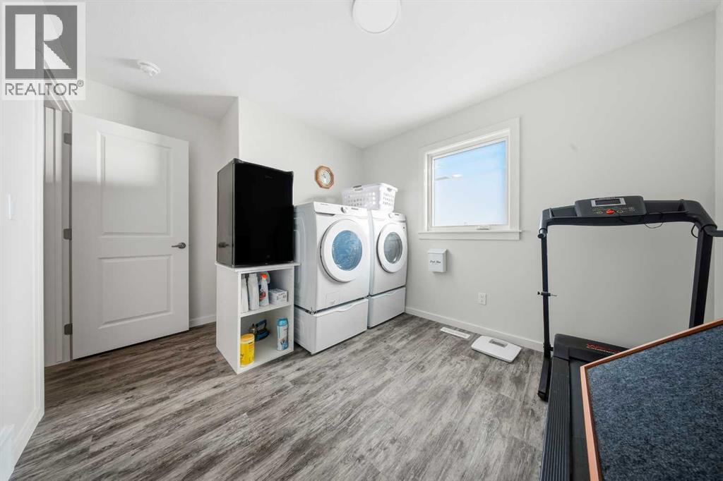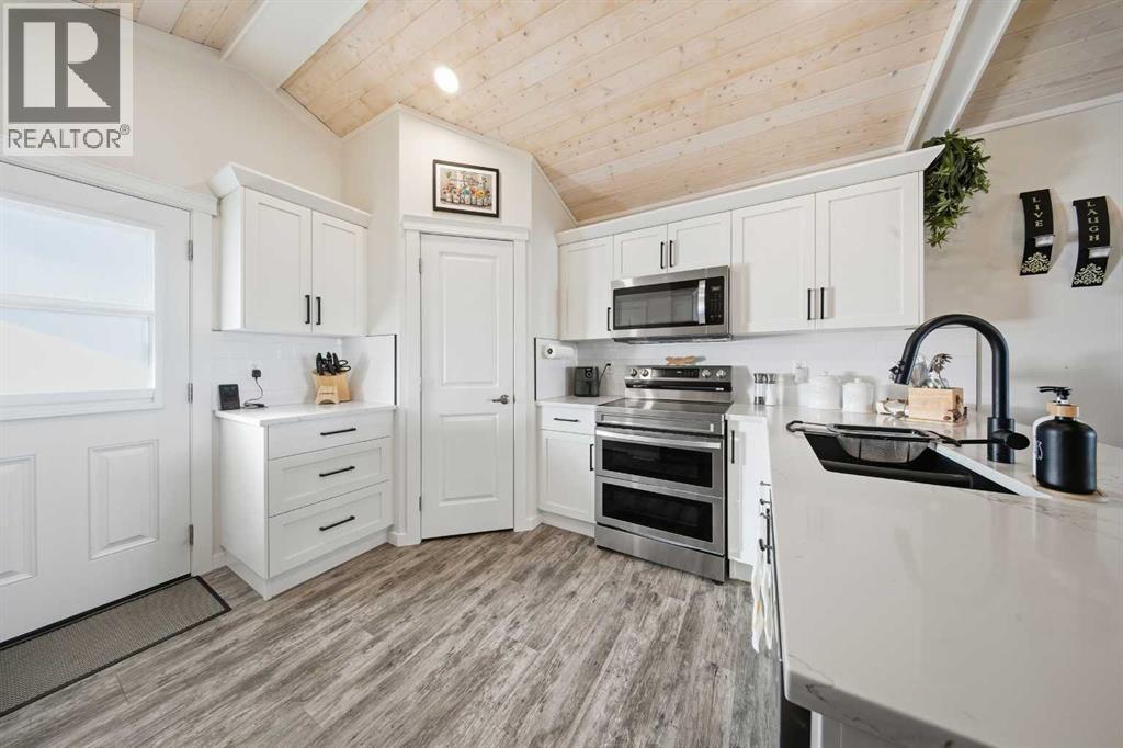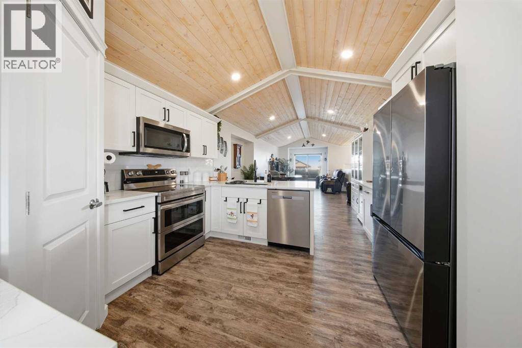 ~Imagine living in a former show home, perched in an enviable location that blends natural beauty with MODERN LUXURY! This stunning property features five spacious bedrooms~ perfect for growing families, home offices, or guest rooms, three pristine bathrooms, offering both style and convenience. As you enter, you'll be greeted by an OPEN CONCEPT floor plan that effortlessly flows from one space to another. The heart of the home is the GORGEOUS WHITE KITCHEN, complete with upgraded stainless appliances (double oven with air fryer) that will have you cooking and entertaining with ease. The sleek QUARTZ countertops, ample cabinetry, and high-end finishes make this home not only functional but a showstopper in itself. Step outside to the maintenance free backyard- the epitome of RELAXATION and low upkeep. Fully fenced for privacy, a perfect sanctuary for kids, pets, or simply unwinding after a long day. And then there is a SOUTH FACING deck, drenched in sunshine, where you can enjoy warm afternoons or host gatherings under the protective shade of a beautiful GAZEBO!! For convenience this property has 2 garages, one attached for easy access and the other detached for additional storage, (heated and wired 220) The basement is developed with a spacious bedroom, a 4-piece bath, utility room has plumbing for washer & dryer, a generous family room and fifth bedroom is 75% finished, currently used as storage. Other great features in this home include: VAULTED whitewashed pine ceilings, OPERATIONAL IN FLOOR HEAT, QUARTZ countertops throughout, MODERN EXTERIOR FINISHES, sump pump, ICF foundation, remainder of 10 year new home warranty, WALK in closet, and beautiful 4-piece ensuite in master bedroom. This home has been immaculately maintained inside and out. One of the bedrooms upstairs is currently in use as a main floor laundry, an easy conversion should you chose. A property like this is too good to pass up and awaits its new family. Not just a home.... but a luxury lifestyle you deserve! (id:63190)