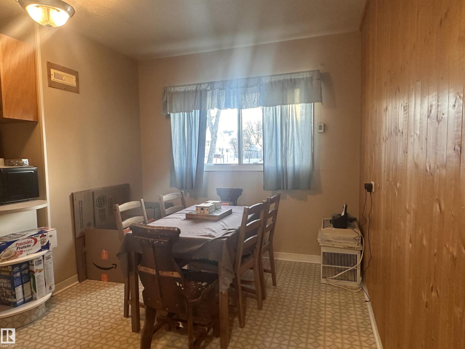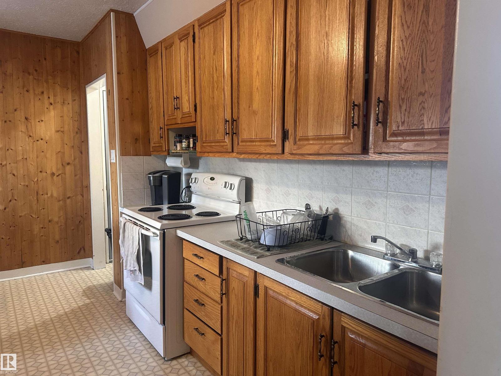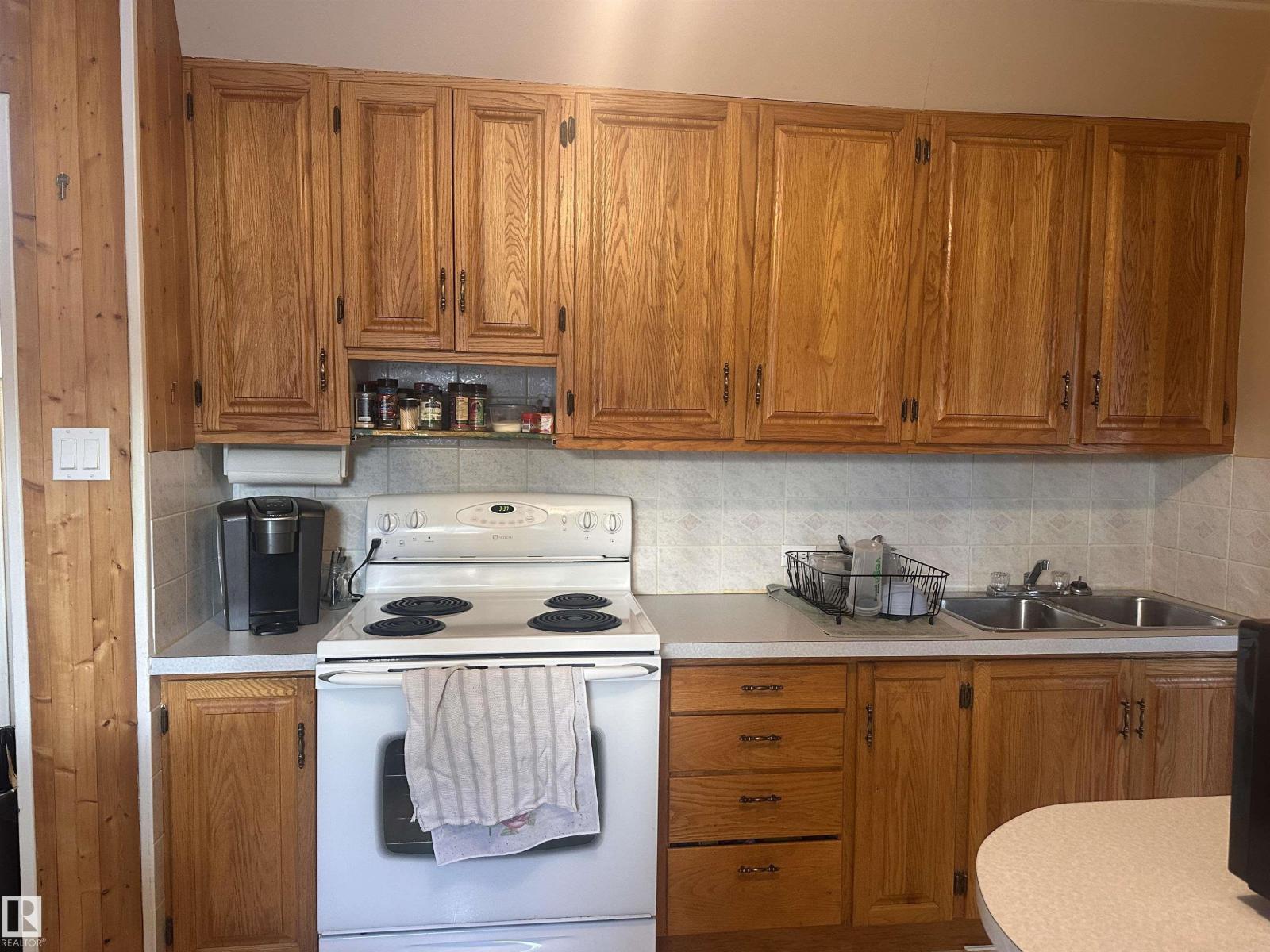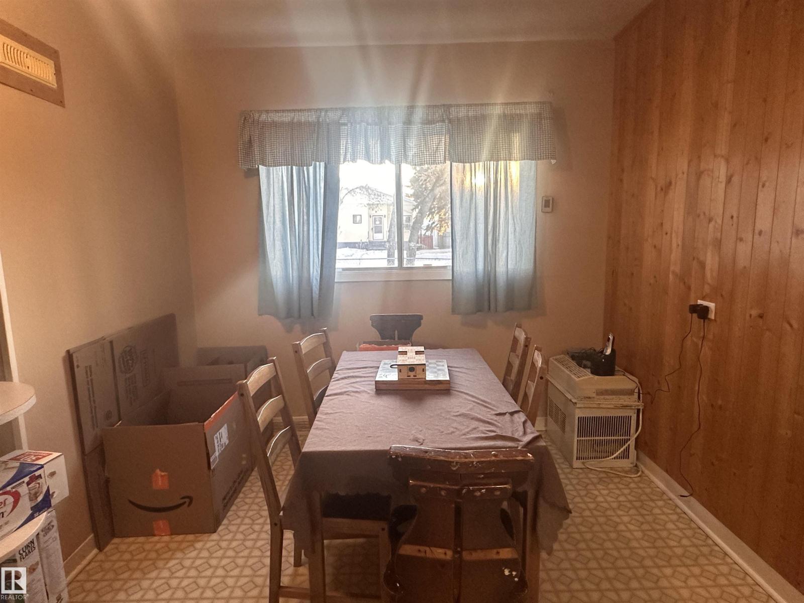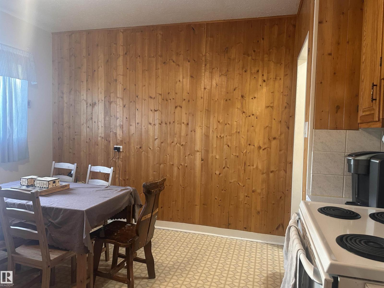 Built in 1950, this charming back-split offers 3 bedrooms and 1 full bathroom, with beautiful wood accents throughout that give the home timeless character. Natural wooden kitchen tucks in nicely with the dining room, and a spacious living room create a homey, cozy feel. Off the living area, Enjoy the patio doors leading out to the deck—perfect for enjoying the outdoor retreat. Nestled in the heart of Barrhead; a mature neighbourhood that has the street lined with beautiful cascading trees. The home is set on a generous lot, partially chain link fenced, a solid single attached garage, and plenty of room to make it your own. In addition, this property offers loads of potential for outdoor living, gardening, or future ideas in the front and back yards. Short walking distance to the schools, playgrounds and all of Barrhead's thriving downtown amenities: lined with local, family-run shops. (id:63190)