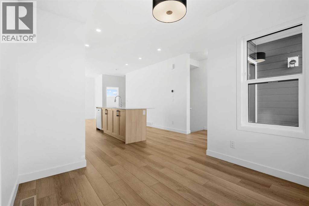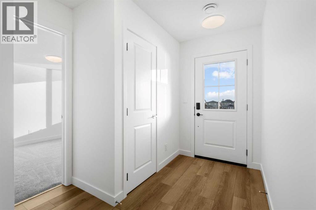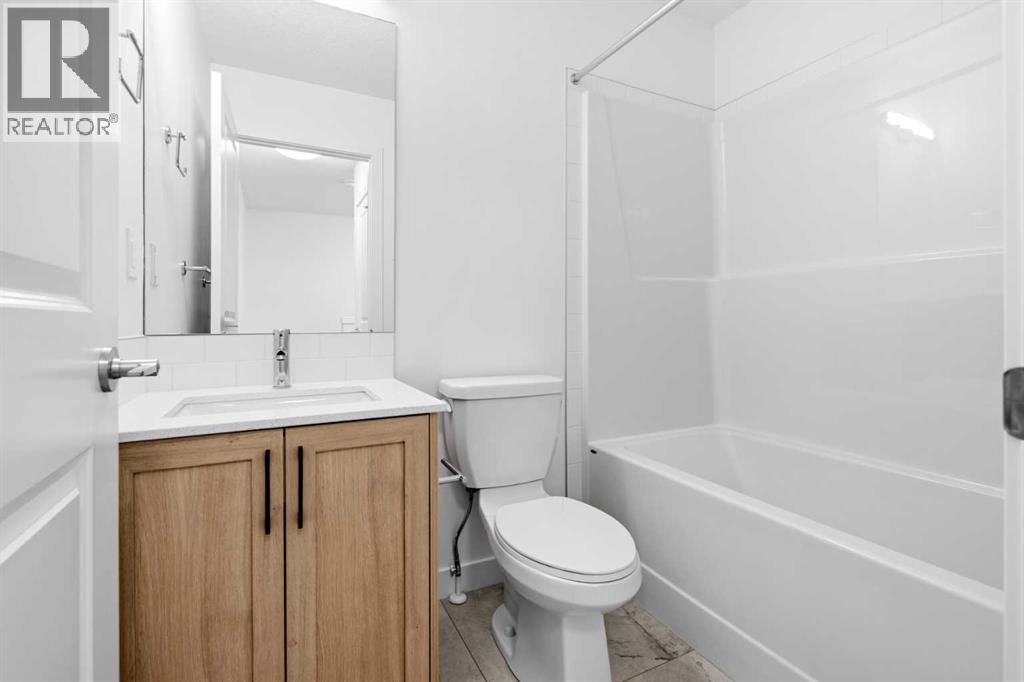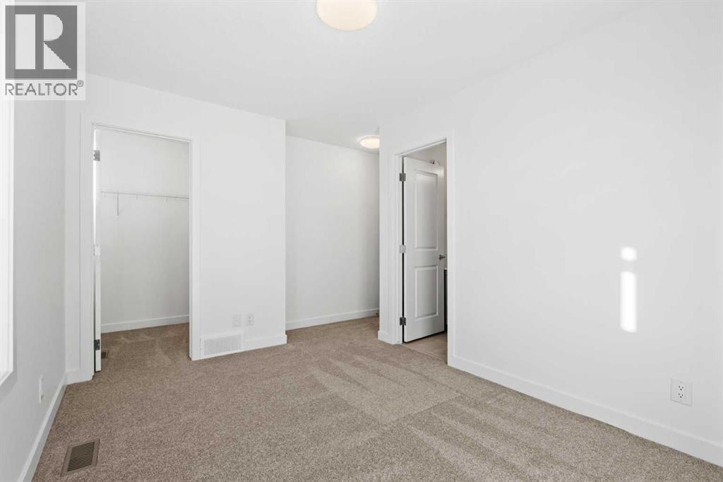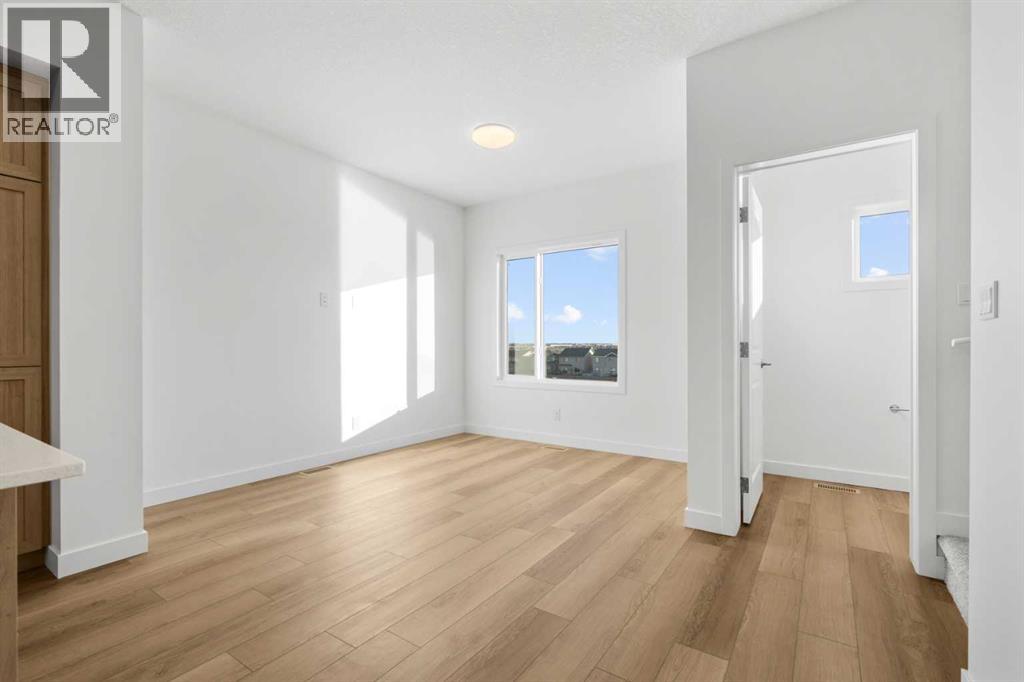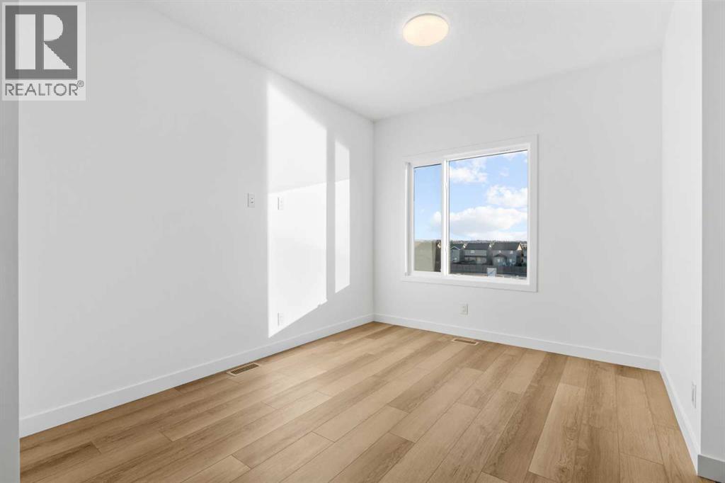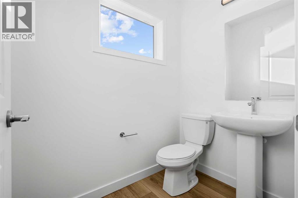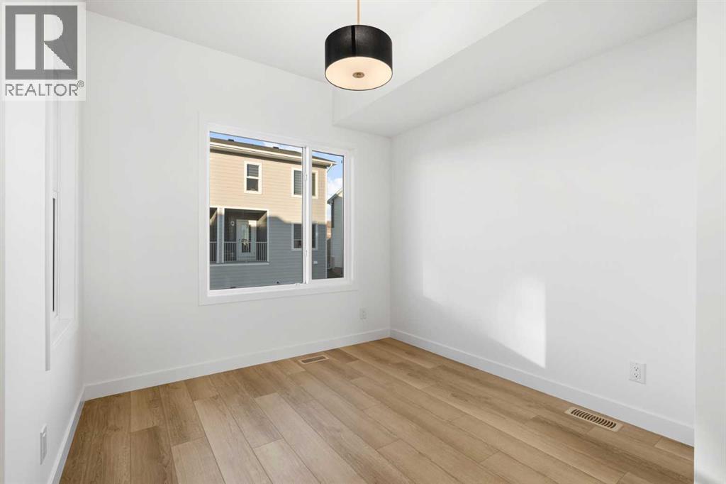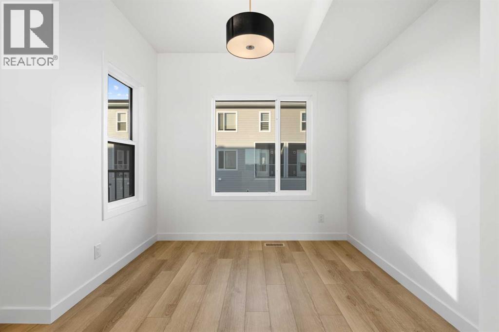 2 YEARS FREE CONDO FEES | NEW BUILD TOWNHOME | LOW CONDO FEES | 4 BED (3 UP, 1 DOWN) / 2.5 BATH / 1,462 SQ FT | OVERSIZED SINGLE ATTACHED GARAGE + DRIVEWAY | IMMEDIATE POSSESSION – Welcome to the Elm 2 townhome by Minto Communities, an award-winning Canadian builder, located in Wildflower, proudly voted Best New Community in Canada. This vibrant, master-planned community in Airdrie is designed with lifestyle and connection in mind, offering a thoughtful mix of home styles in a neighbourhood built to grow with you.This brand-new townhome features a functional and modern layout ideal for today’s homeowner. The main floor offers a well-designed living space at the front of the home, creating a welcoming area to relax or entertain. The kitchen is centrally located and showcases stainless steel appliances, a large island, modern finishes, ample cabinetry, and storage. The dining area is positioned at the rear of the home with direct access to a private balcony—perfect for morning coffee or unwinding at the end of the day. A convenient 2-piece bathroom completes this level.Upstairs, the spacious primary bedroom includes a walk-in closet and a private 3-piece ensuite. Two additional bedrooms, a full 4-piece bathroom, and conveniently tucked-away upper-floor laundry provide excellent functionality for families, guests, or home office needs.The lower level features a large foyer with direct access to the oversized single attached garage, along with a fourth bedroom—ideal for guests, a home office, or flex space. A full driveway adds valuable additional parking, offering everyday convenience rarely found in townhome living.Residents of Wildflower enjoy exclusive access to The Hillside Hub, a standout amenity centre featuring Airdrie’s first outdoor pool, a hot tub, open-air sports court, and a variety of shared indoor and outdoor spaces designed for gathering, recreation, or quiet retreat. With nearby parks, pathways, amenities, and easy access to major routes, Wildflower delivers a truly well-rounded lifestyle.Combining award-winning community planning, modern design, low condo fees, and immediate possession, this is an outstanding opportunity to own a stylish new build townhome in one of Canada’s most celebrated communities. Don’t miss your chance to make Wildflower home! Book your visit today! (id:63190)