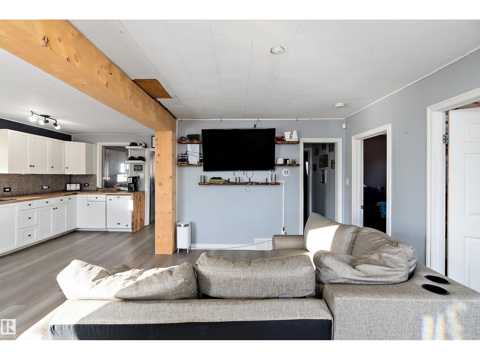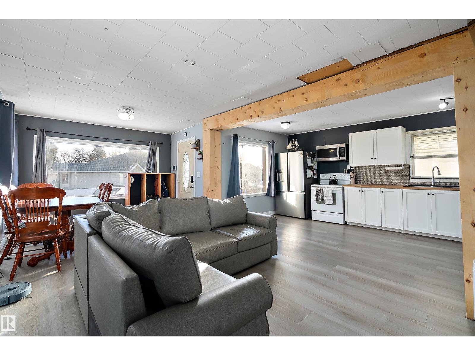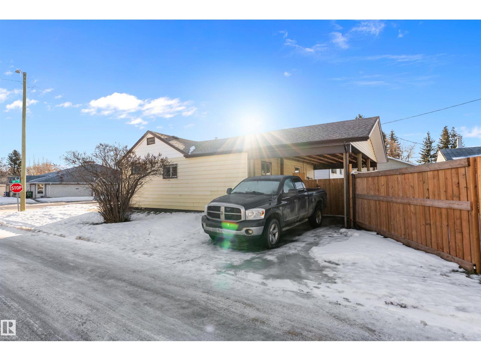 Welcome to this charming and well laid out bungalow in Wetaskiwin offering comfortable living space and a great floor plan for families, first time buyers, or investors. Step inside to a bright and welcoming living room that flows nicely into the dining area, creating an ideal space for relaxing or entertaining. The spacious kitchen offers plenty of room for meal prep and storage, with a layout that keeps everything functional and connected. The main floor also features a generous primary bedroom along with two additional bedrooms and a full four piece bathroom, perfect for a growing family or home office needs. Downstairs, the basement adds excellent extra living space with a large fourth bedroom and a convenient two piece bathroom, providing the perfect setup for guests, teens, or additional recreation space. Outside, enjoy the convenience of a detached garage for parking, storage, or hobbies. Massive covered patio area. This home offers great potential and a practical layout in a convenient Wetaskiwin. (id:63190)