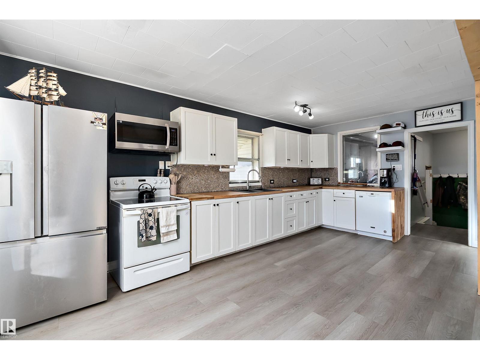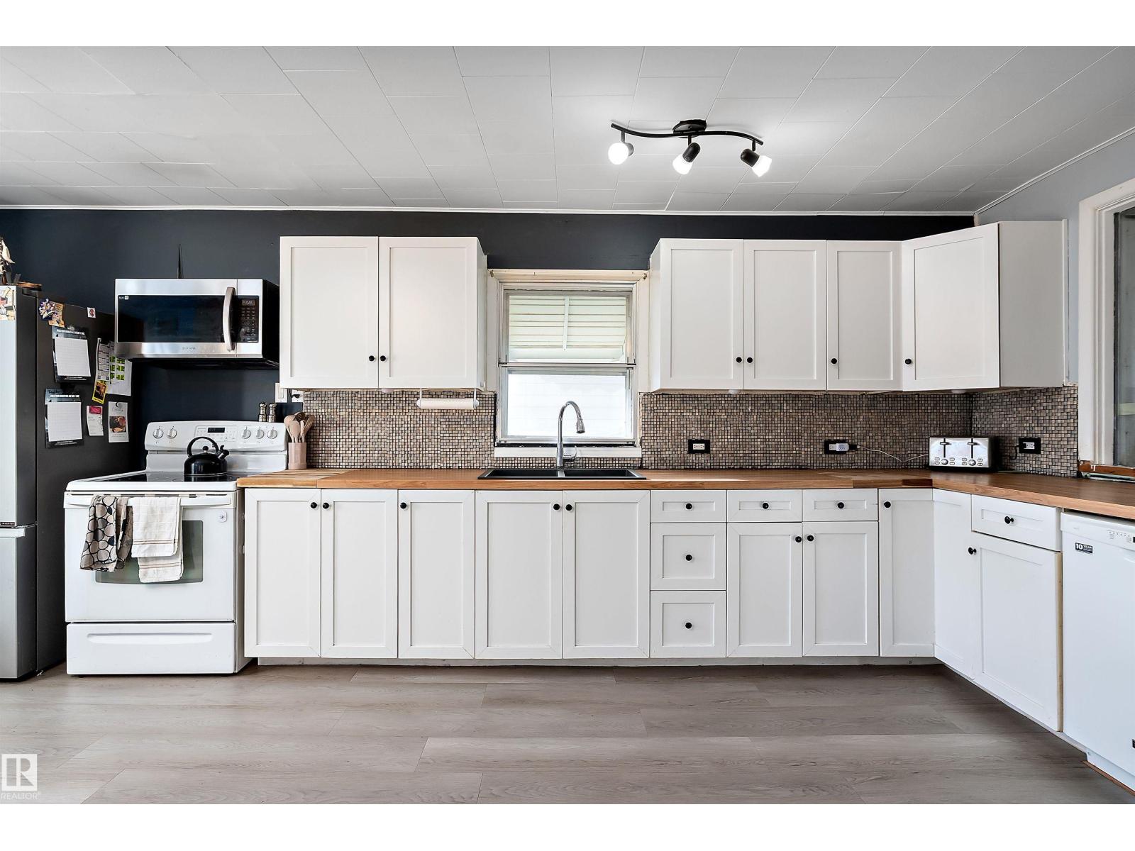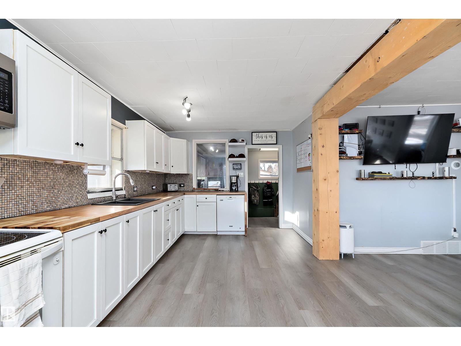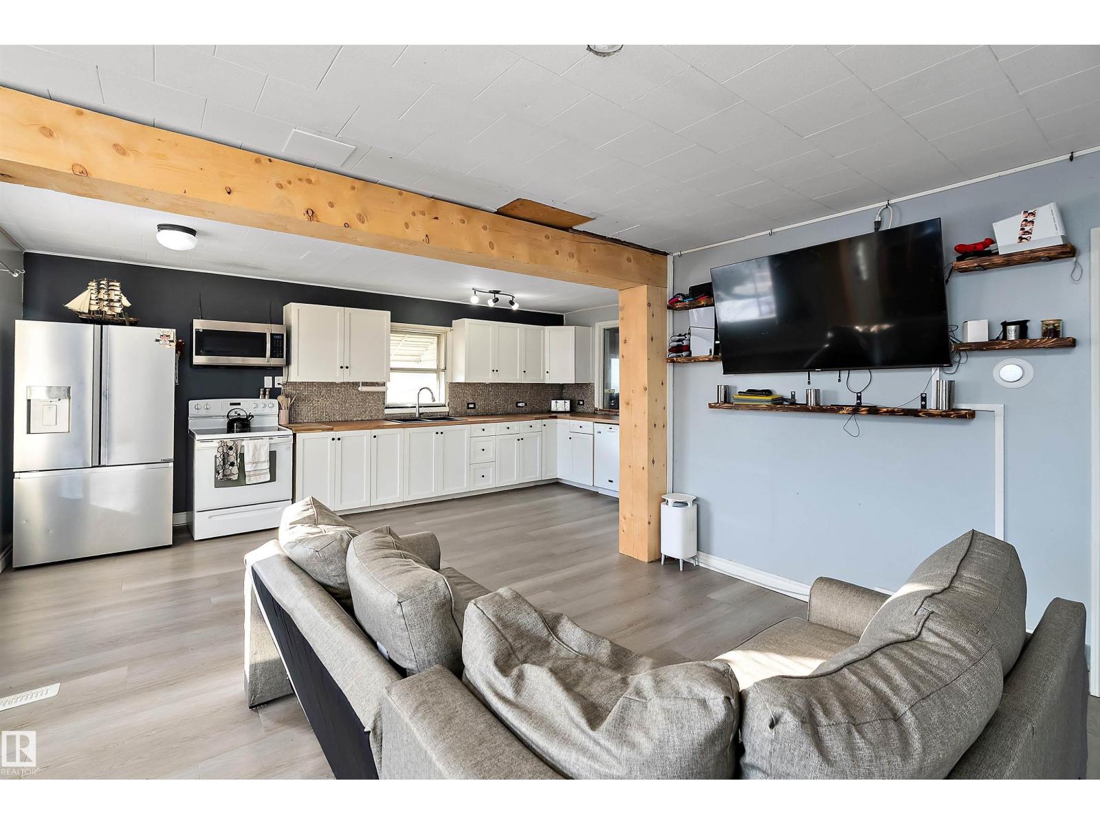 Welcome to this charming and well laid out bungalow in Wetaskiwin offering comfortable living space and a great floor plan for families, first time buyers, or investors. Step inside to a bright and welcoming living room that flows nicely into the dining area, creating an ideal space for relaxing or entertaining. The spacious kitchen offers plenty of room for meal prep and storage, with a layout that keeps everything functional and connected. The main floor also features a generous primary bedroom along with two additional bedrooms and a full four piece bathroom, perfect for a growing family or home office needs. Downstairs, the basement adds excellent extra living space with a large fourth bedroom and a convenient two piece bathroom, providing the perfect setup for guests, teens, or additional recreation space. Outside, enjoy the convenience of a detached garage for parking, storage, or hobbies. Massive covered patio area. This home offers great potential and a practical layout in a convenient Wetaskiwin. (id:63190)
