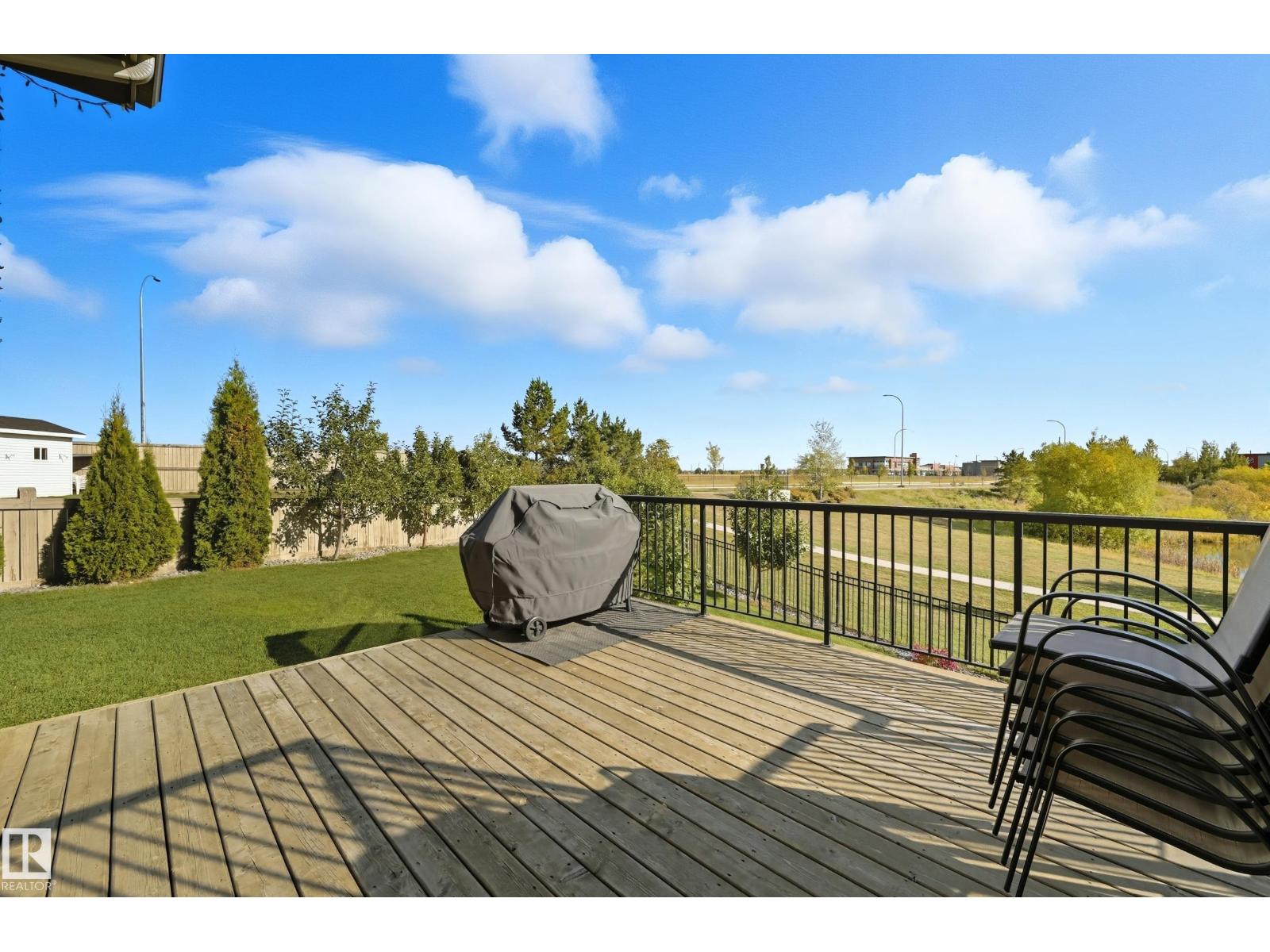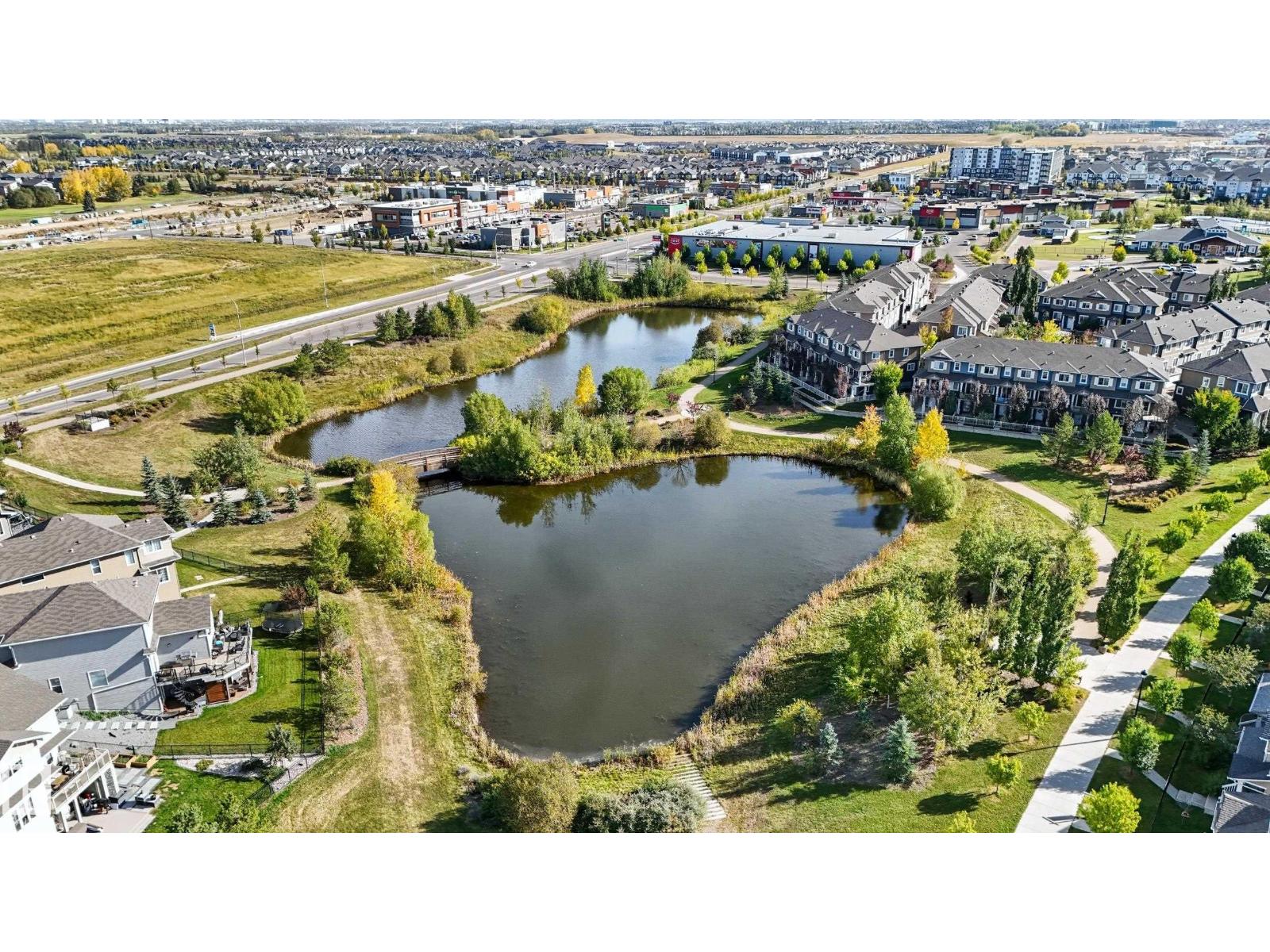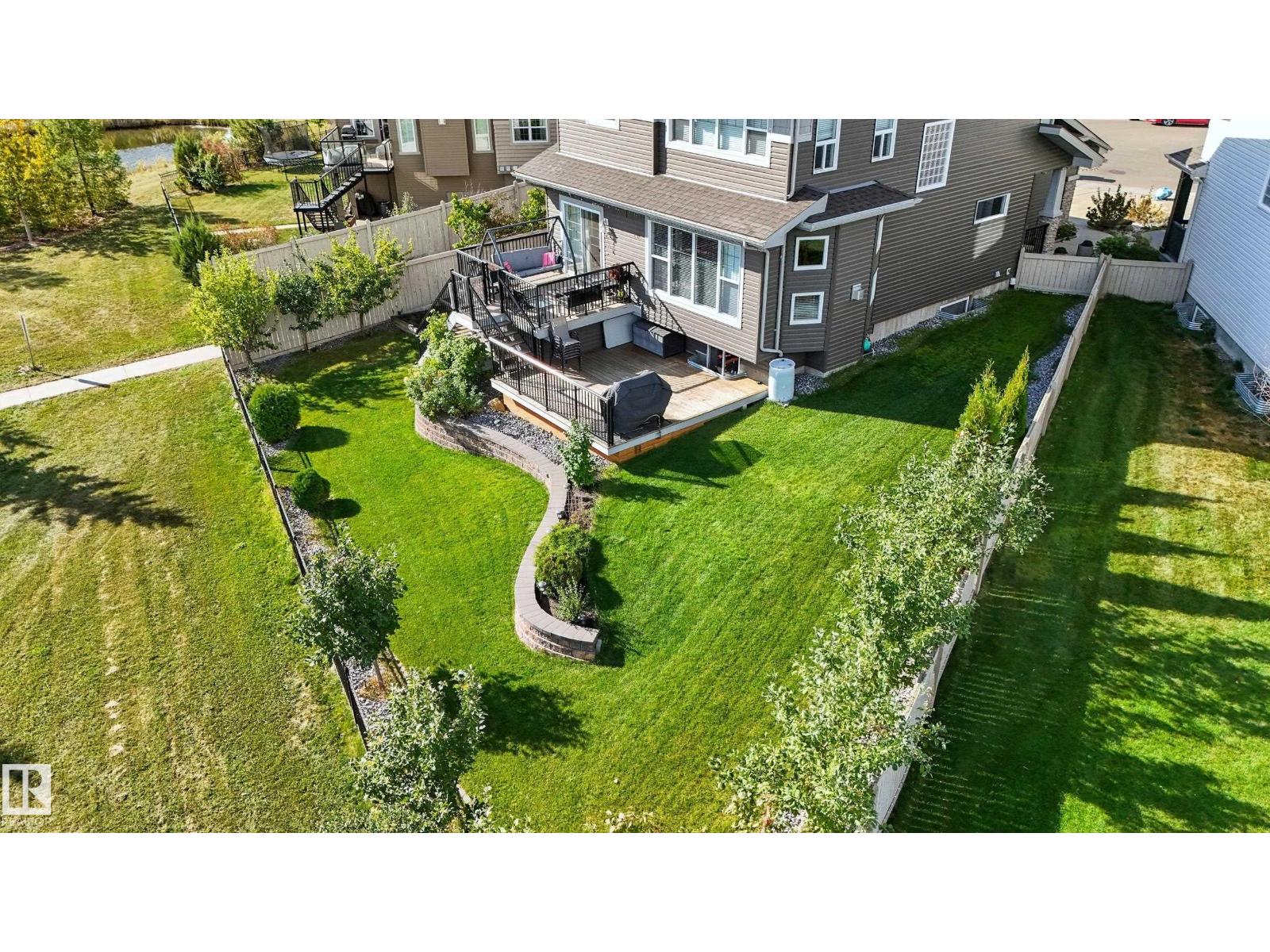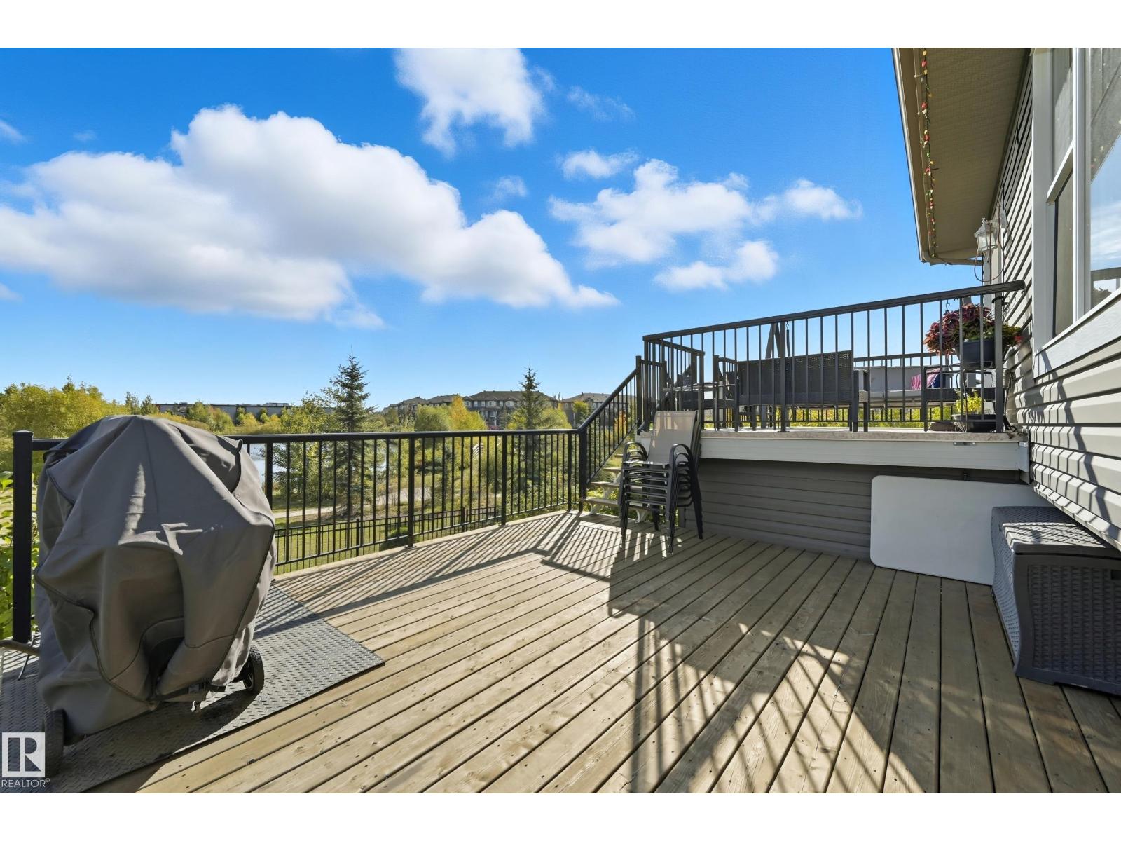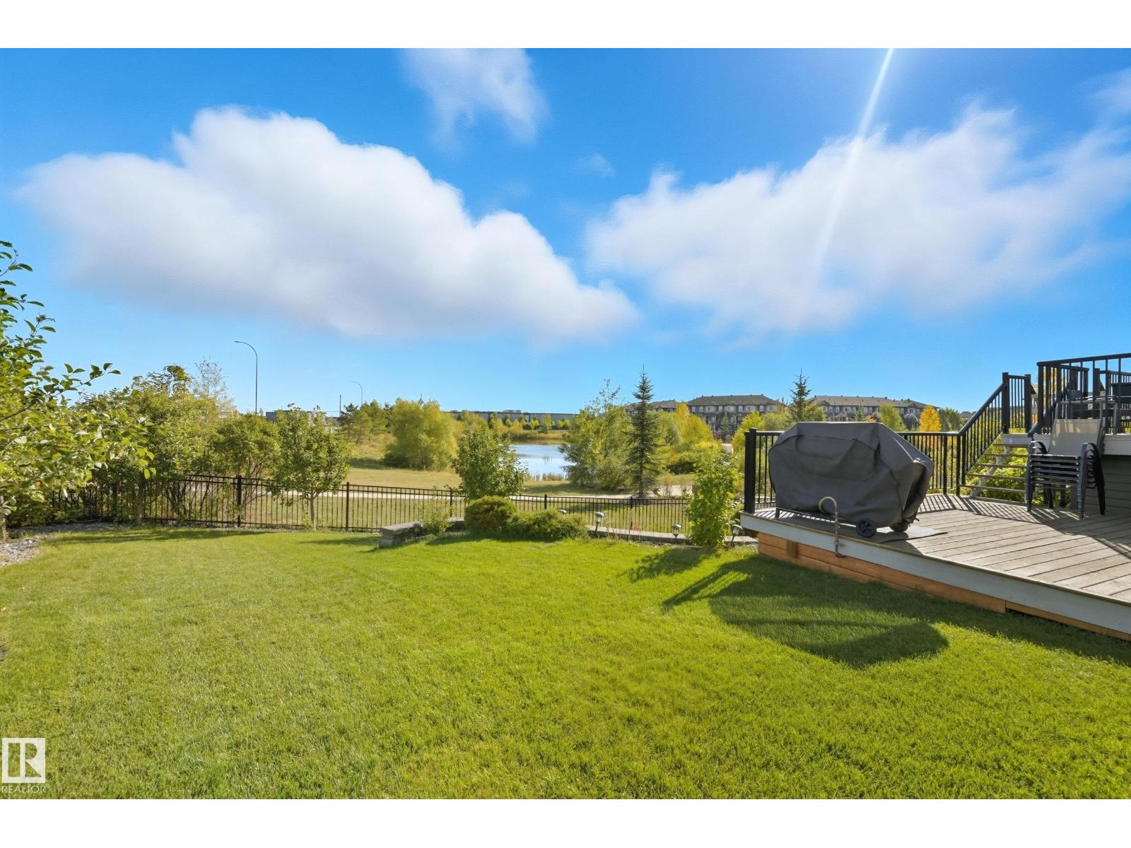 Welcome to this stunning custom-built property offering over 2,700 sqft of beautifully finished living space on a wide lot. From the moment you step inside, the spacious foyer sets the tone for this warm and inviting home. The open-concept main floor seamlessly connects the living room, dining area, and kitchen—flooded with natural light and framed by expansive lake views through thoughtfully added windows. Upstairs, a bright hallway leads to a large bonus room overlooking the pond, two spacious bedrooms, and a luxurious primary suite with a walk-in closet and a serene ensuite. The fully finished basement offers a generous rec room with a wet bar, full bath, and additional bedroom. Outside, enjoy your massive two-tiered deck—perfect for BBQs, gatherings, or simply relaxing with lakeside views. The landscaped yard features irrigation, a retaining wall, and direct access to walking trails. An oversized garage and access to Chapelle’s recreation center complete this perfect package. (id:63190)