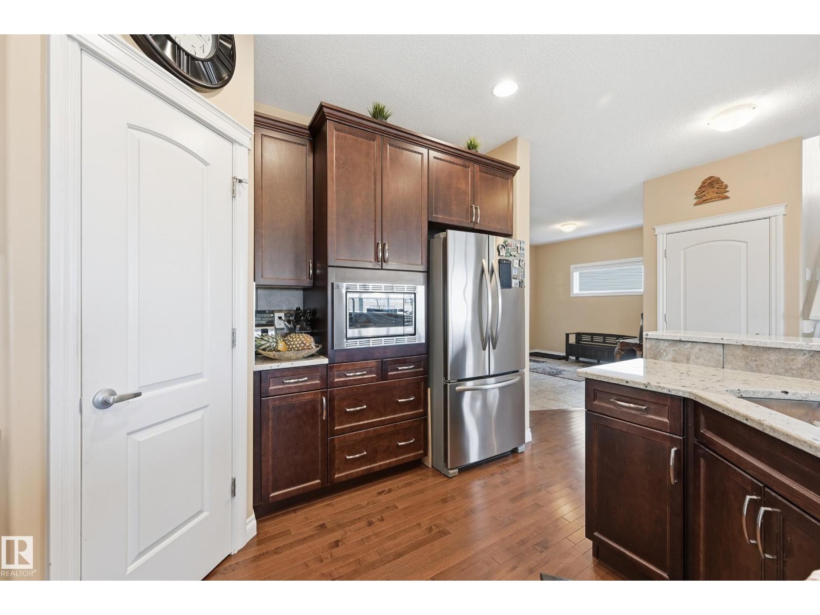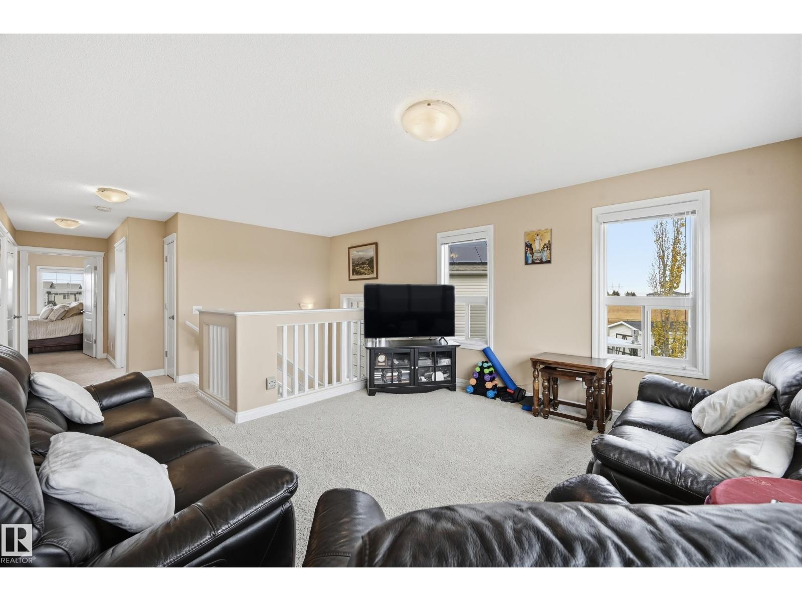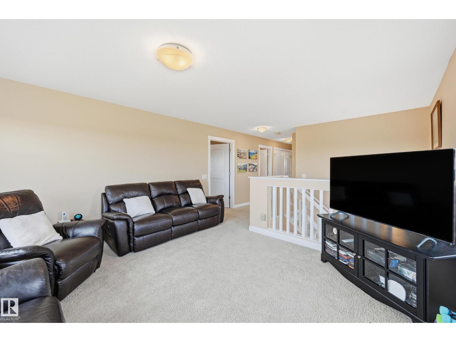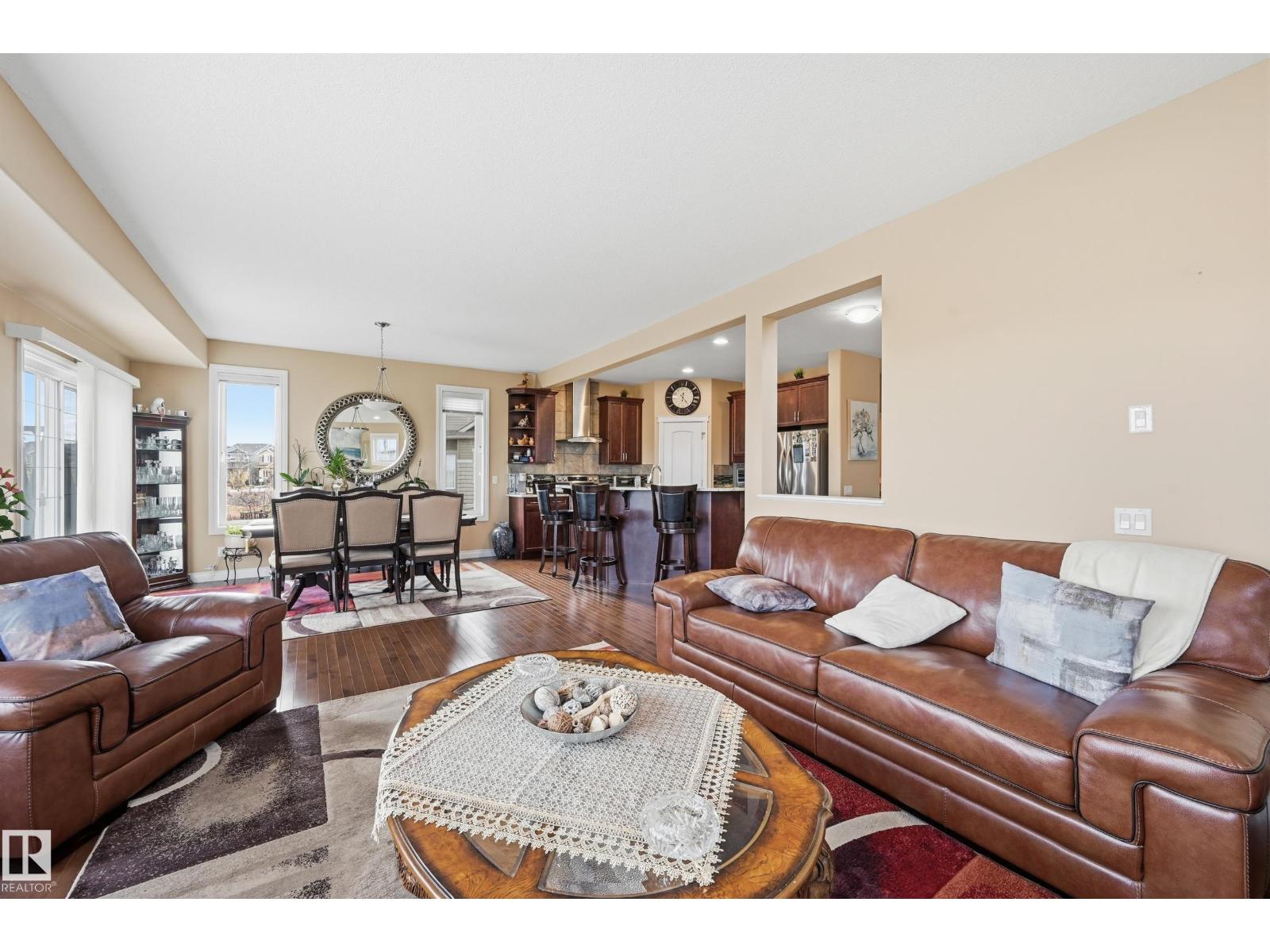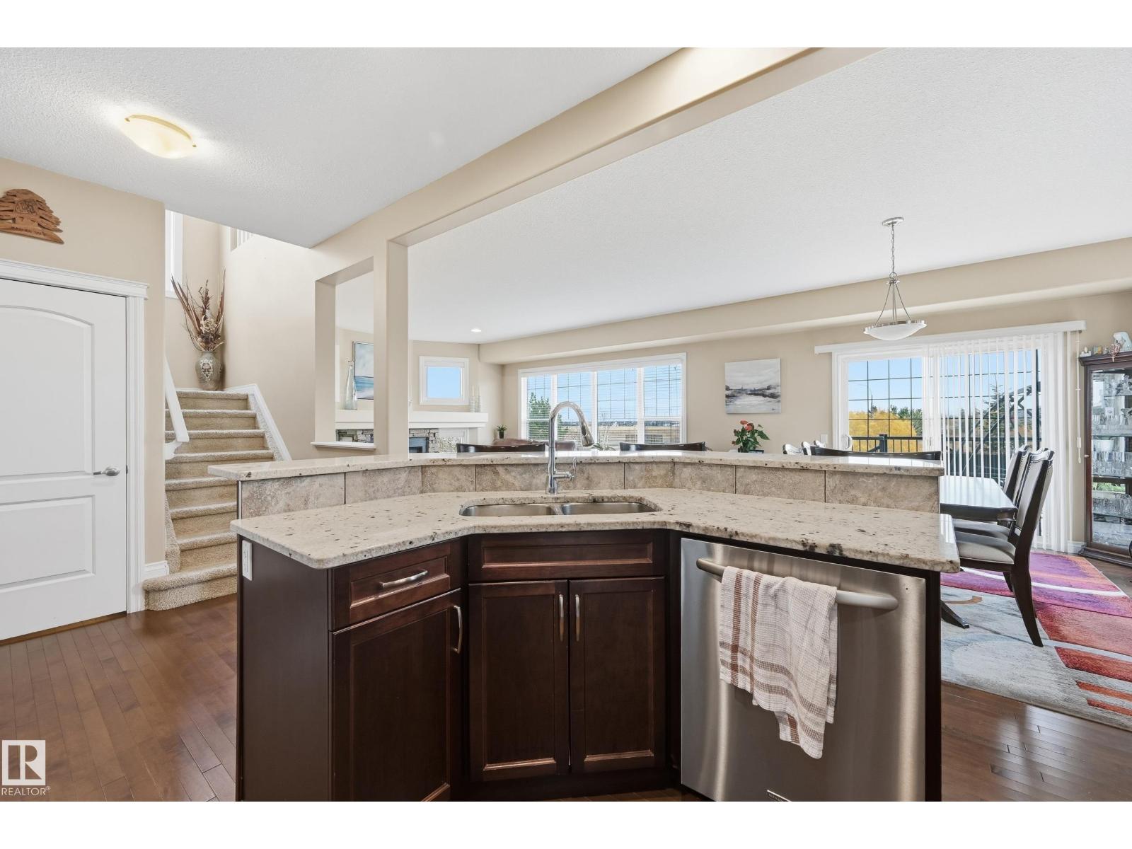 Welcome to this stunning custom-built property offering over 2,700 sqft of beautifully finished living space on a wide lot. From the moment you step inside, the spacious foyer sets the tone for this warm and inviting home. The open-concept main floor seamlessly connects the living room, dining area, and kitchen—flooded with natural light and framed by expansive lake views through thoughtfully added windows. Upstairs, a bright hallway leads to a large bonus room overlooking the pond, two spacious bedrooms, and a luxurious primary suite with a walk-in closet and a serene ensuite. The fully finished basement offers a generous rec room with a wet bar, full bath, and additional bedroom. Outside, enjoy your massive two-tiered deck—perfect for BBQs, gatherings, or simply relaxing with lakeside views. The landscaped yard features irrigation, a retaining wall, and direct access to walking trails. An oversized garage and access to Chapelle’s recreation center complete this perfect package. (id:63190)