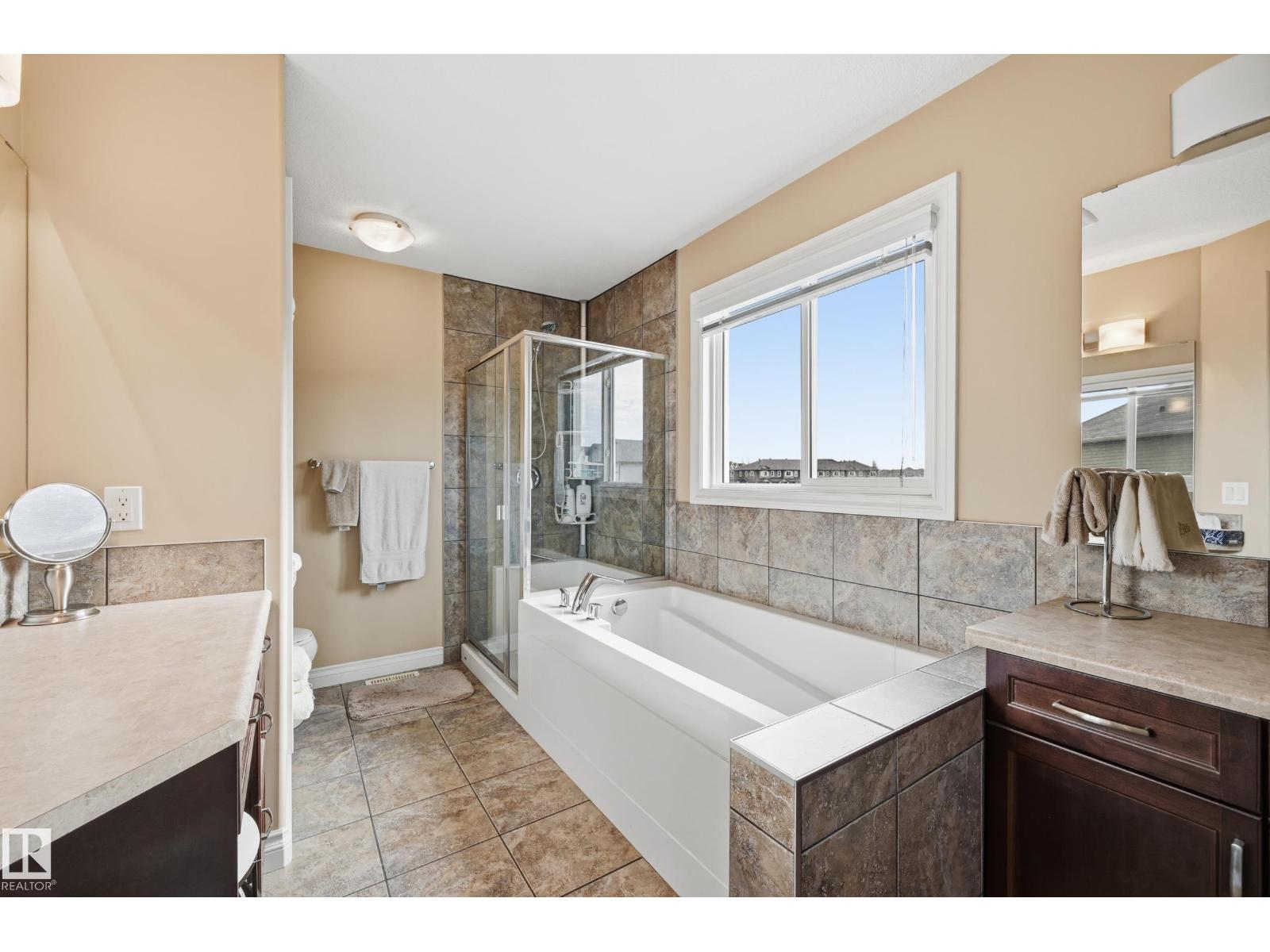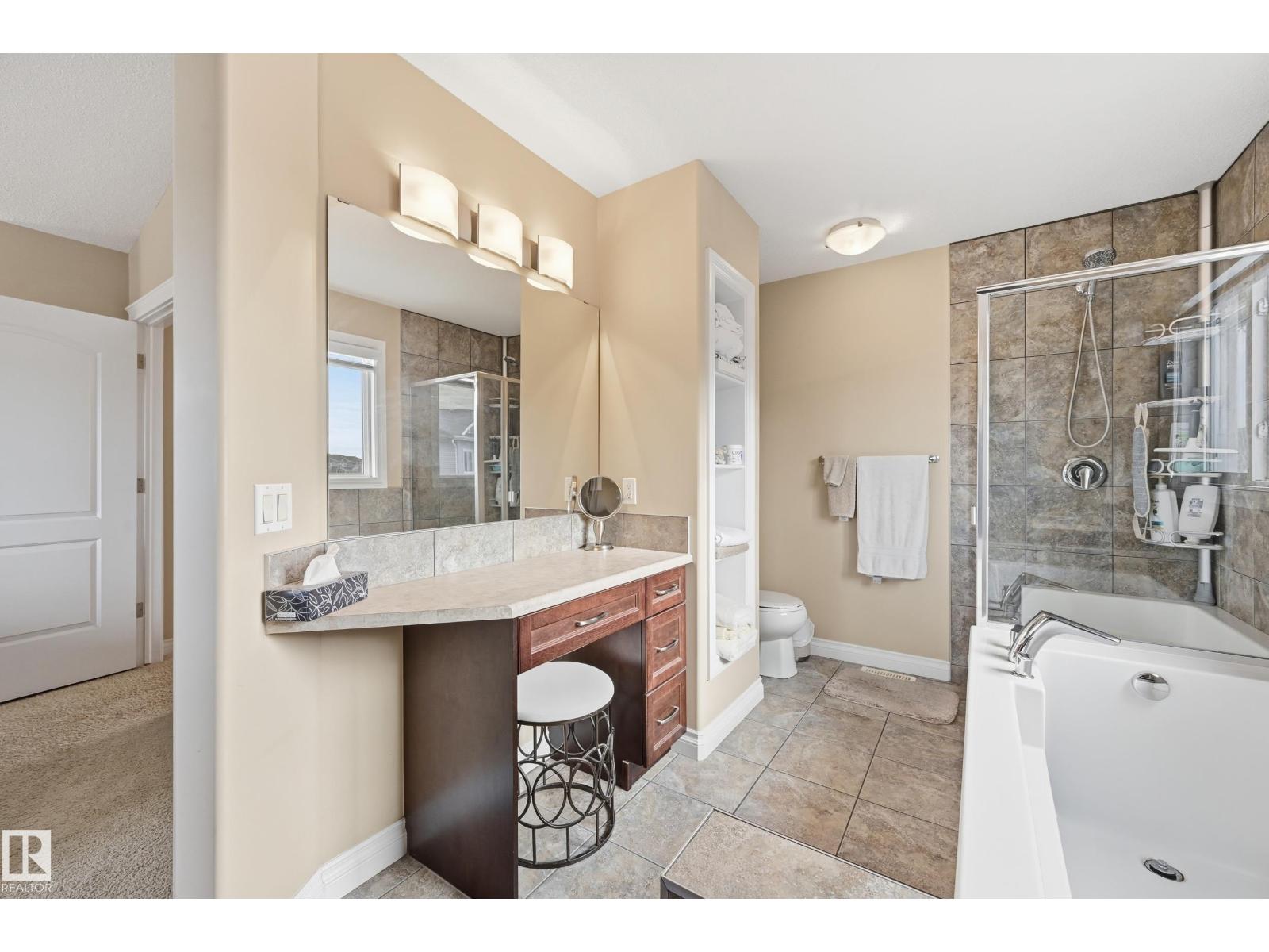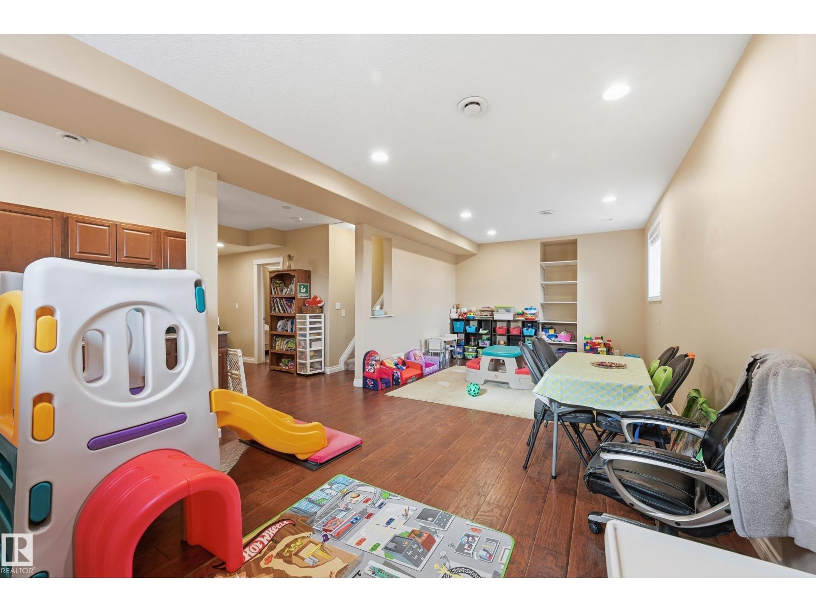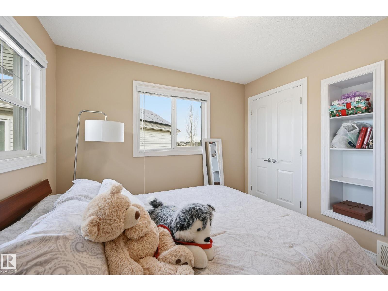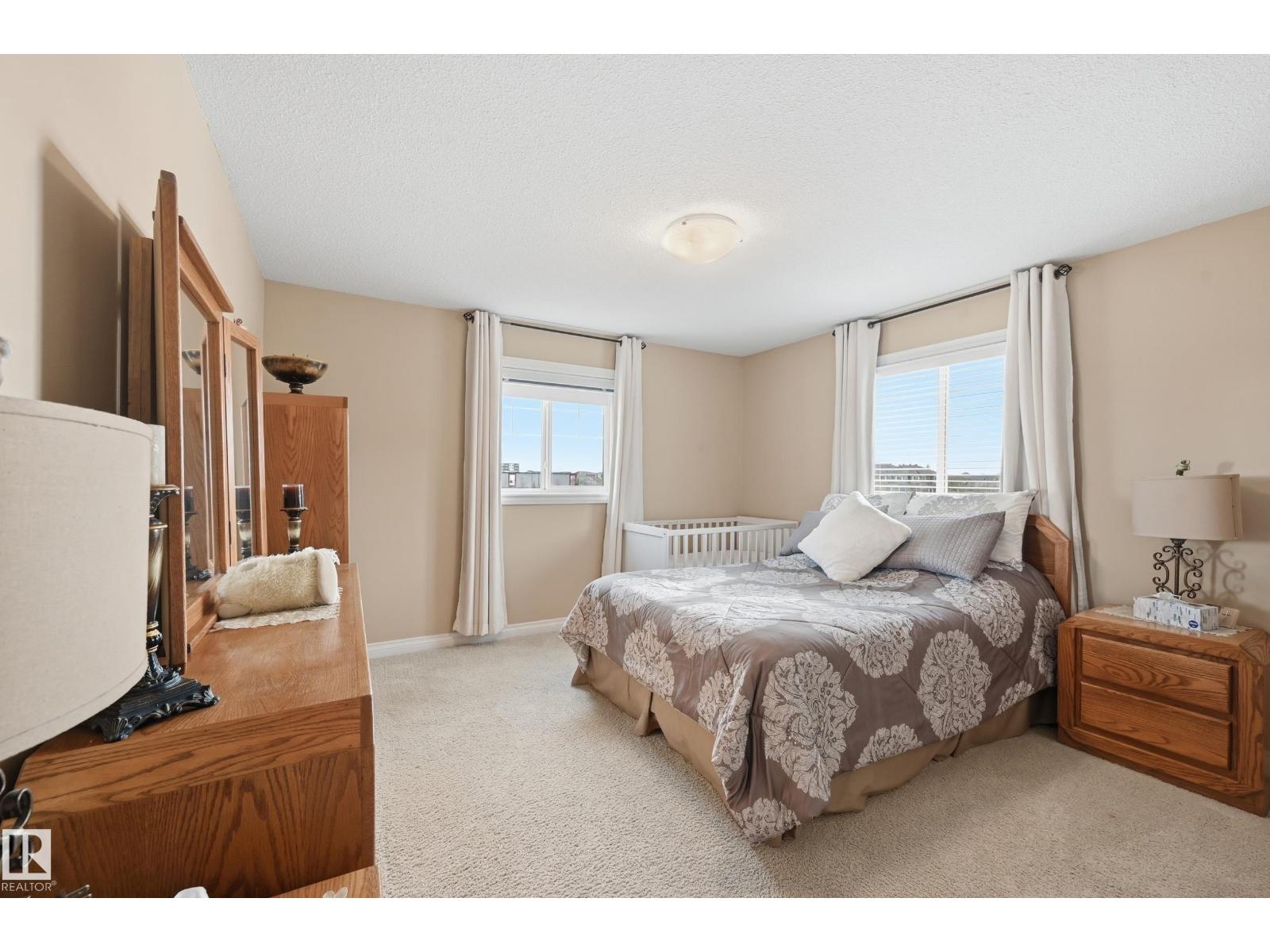 Welcome to this stunning custom-built property offering over 2,700 sqft of beautifully finished living space on a wide lot. From the moment you step inside, the spacious foyer sets the tone for this warm and inviting home. The open-concept main floor seamlessly connects the living room, dining area, and kitchen—flooded with natural light and framed by expansive lake views through thoughtfully added windows. Upstairs, a bright hallway leads to a large bonus room overlooking the pond, two spacious bedrooms, and a luxurious primary suite with a walk-in closet and a serene ensuite. The fully finished basement offers a generous rec room with a wet bar, full bath, and additional bedroom. Outside, enjoy your massive two-tiered deck—perfect for BBQs, gatherings, or simply relaxing with lakeside views. The landscaped yard features irrigation, a retaining wall, and direct access to walking trails. An oversized garage and access to Chapelle’s recreation center complete this perfect package. (id:63190)