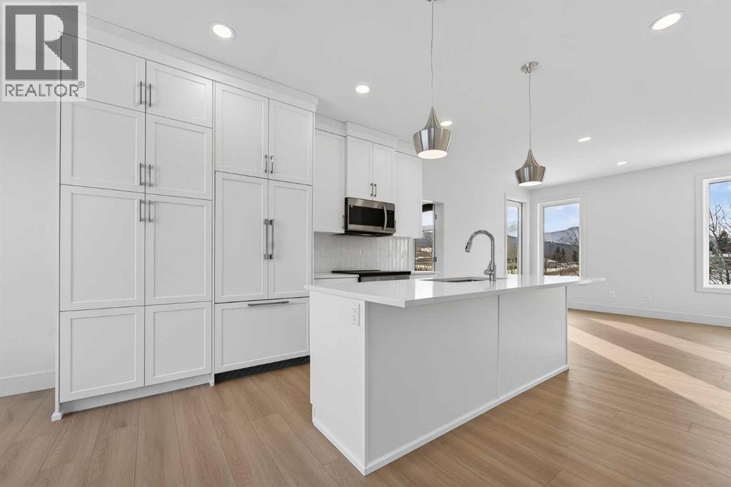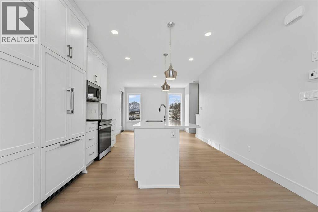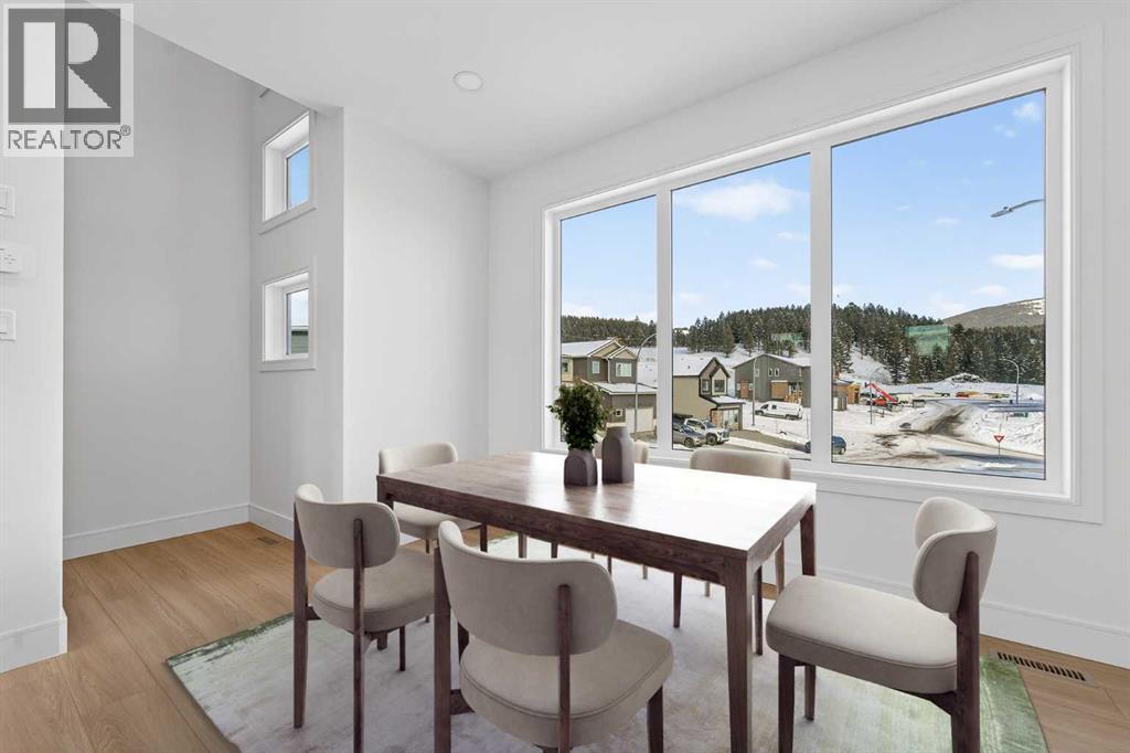 Welcome to the Aspen model by Stranville Living Master Builder, a brand new, thoughtfully designed home located in the heart of the Rocky Mountains in beautiful Coleman, Alberta. This is not your typical floor plan—it’s a mountain-inspired design that fully embraces its surroundings and delivers a layout that feels both functional and genuinely unique.One of the standout features of this home is the main-floor bedroom complete with a private balcony, offering peaceful and picturesque Rocky Mountain views that feel tucked away yet always within sight. Also on the main level is the oversized double attached garage, which opens out to its own private patio—perfect for hosting, relaxing, or turning garage nights into full-blown gatherings.The second level serves as the primary living space and is bright, open, and designed to impress. Tall ceilings and oversized windows flood the space with natural light while framing the mountain backdrop. The kitchen sits perfectly between the living room and dining area, creating a natural separation without sacrificing openness. Finished with quartz countertops, an induction cooktop, and Stranville’s signature panelled Fisher & Paykel fridge and dishwasher, the kitchen blends high-end style with everyday practicality.Just off the living room is the primary bedroom, featuring vaulted ceilings and a striking window that captures the mountain views beautifully. The walk-in closet connects directly to the ensuite and also houses the main-floor laundry for added convenience. The ensuite itself is finished with dual vanities, a walk-in shower, and an upgraded wall-mounted toilet, delivering a clean, modern feel.The upper level completes the home with two additional bedrooms, one offering a walk-in closet and the other a spacious layout with large windows. A centrally located four-piece bathroom serves this level, making it ideal for family, guests, or flexible living arrangements.This is mountain living done right—modern design, elevated finishes, and a layout that truly takes advantage of its Rocky Mountain setting. GST IS INCLUDED IN THE LIST PRICE, As well as a 10 year new home warranty. Photos are virtually staged. (id:63190)