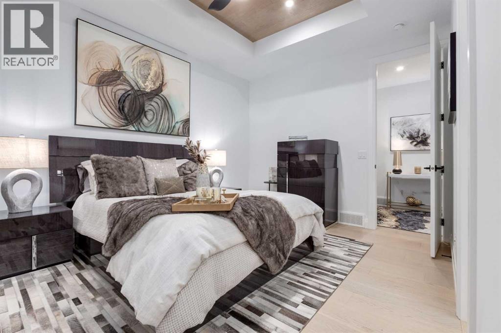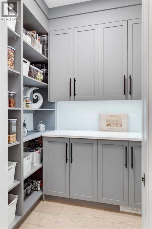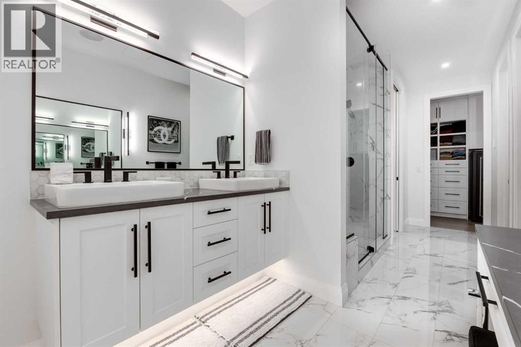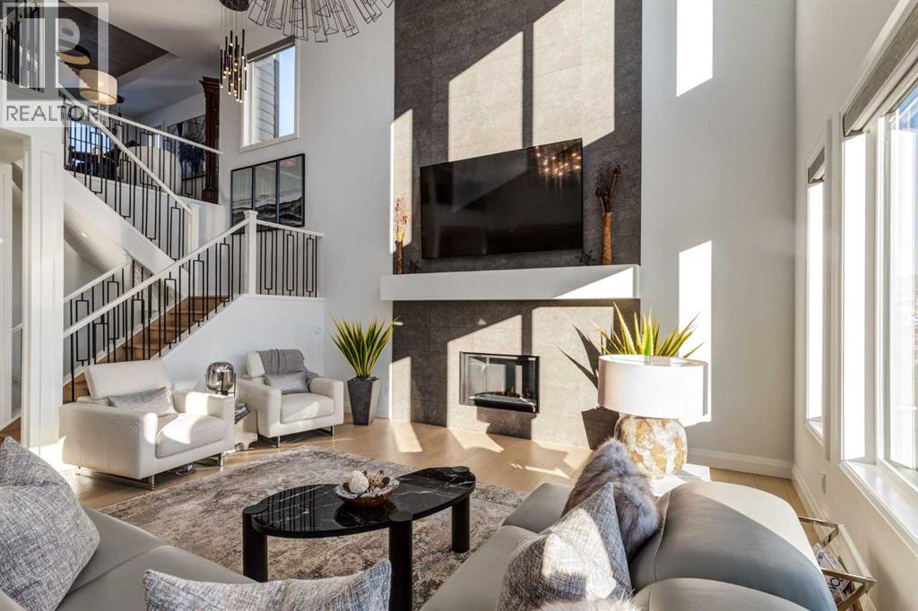 OPEN HOUSE SUNDAY APRIL 26TH, FROM 2PM TO 4PM. Located in the heart of Springbank Hill, this beautifully appointed home backs onto a picturesque ravine and boasts views of the rolling hills and city to the South. Designed for low-maintenance living, this home features Hardie Board siding, aluminum composite fencing, an artificial turf lawn with a backyard putting green and artificial shrubs, ideal for snowbirds or busy families. Every inch of the nearly 4,500SF of living space was meticulously designed and decorated with intention, creating a true sanctuary that feels like a work of art. Soaring ceilings, white oak engineered hardwood floors, hardwood coffered ceiling details and the most spectacular designer lighting are only a few features that make this home so spectacular. The ‘chef’s kitchen’ features top-of-the-line Thermadore appliances including a multi-function built-in coffee and espresso machine and a dual zone beverage cooler. Custom features such as internal cabinet drawers, spice pullouts and a fabulous walk-through butler’s pantry leave nothing to be desired. A vaulted ceiling in the great room boasts a stunning floor-to-ceiling fireplace and a ‘showpiece’ staircase and masterfully displays the amazing Southerly view. A spacious dining area, a private home office and a mudroom outfitted with lots of custom storage combine beautiful design with perfect functionality. The upper level features a bright and open bonus room, two additional bedrooms, each with a walk-in closet and an ensuite bathroom and a spa-like primary suite with his-and-hers closets, one of which is connected to the incredible laundry room. The fully finished lower level boasts a fourth bedroom and bathroom, a ‘professional’ home gym, a games room and a media room with a fireplace and a wet bar. The heated triple attached garage, outfitted with epoxy flooring, custom storage, a work bench and cabinets, is every hobbyist’s dream. A six-person hot tub sits on an aggregate covered rear p atio, an upper balcony with glass railing overlooks the views, a twelve-burner plus griddle BBQ station and a plumbed in natural gas fire table are all located in places to relax outside and admire the breathtaking view. Heated floors in all the bathrooms, Hunter Douglas programmable motorized solar shades and a high-end Elan smart home system that encompasses everything from security to lights to music and televisions, set this home apart from any other. This home offers something special for every stage in life. Note: 24 hours notice required for all showings. (id:63190)