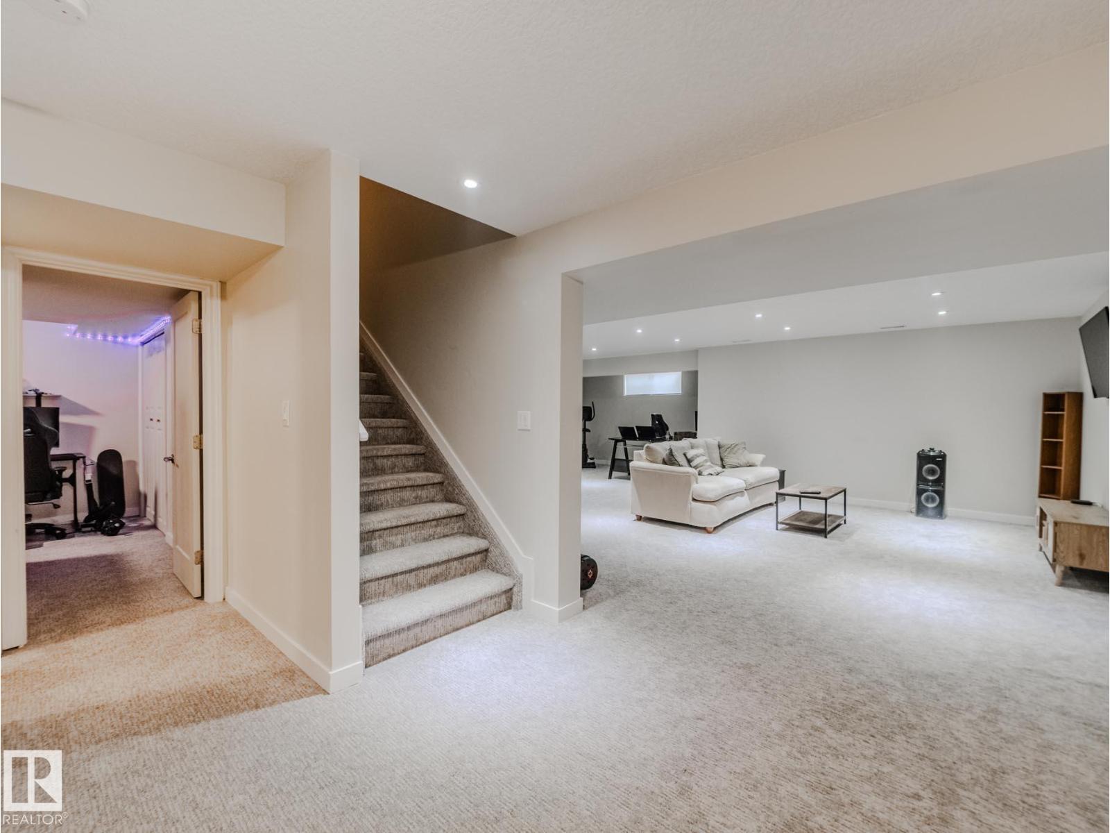 Fully fenced & landscaped! Ready to move in! Boasting over 3300 ft.² of living space this 4 bedroom 4 bath home is ideal for families. Have a big truck? Park it inside easily in the HEATED 24 x 24 attached garage! Step in & you are greeted by soaring 18 foot ceilings & an open concept. A convenient home office is located just off the front door & has a window to the front entry. Floor to ceiling windows, stream in light looking out onto the fully landscaped yard. The high-end kitchen features quartz & stainless appliances. The upper level, has 3 bedrooms, including a huge primary with 100 square-foot walk-in closet & 6 piece luxurious ensuite. The laundry room is conveniently located on the second floor--2 more bedrooms & a full 4 piece bath complete this level. The lower level is ideal for teens with another bedroom, full bathroom and a huge family & games room. The backyard Oasis has a private tiered deck & huge stone aggregate patio with fire pit. A/C & high efficiency mechanicals complete the package! (id:63190)