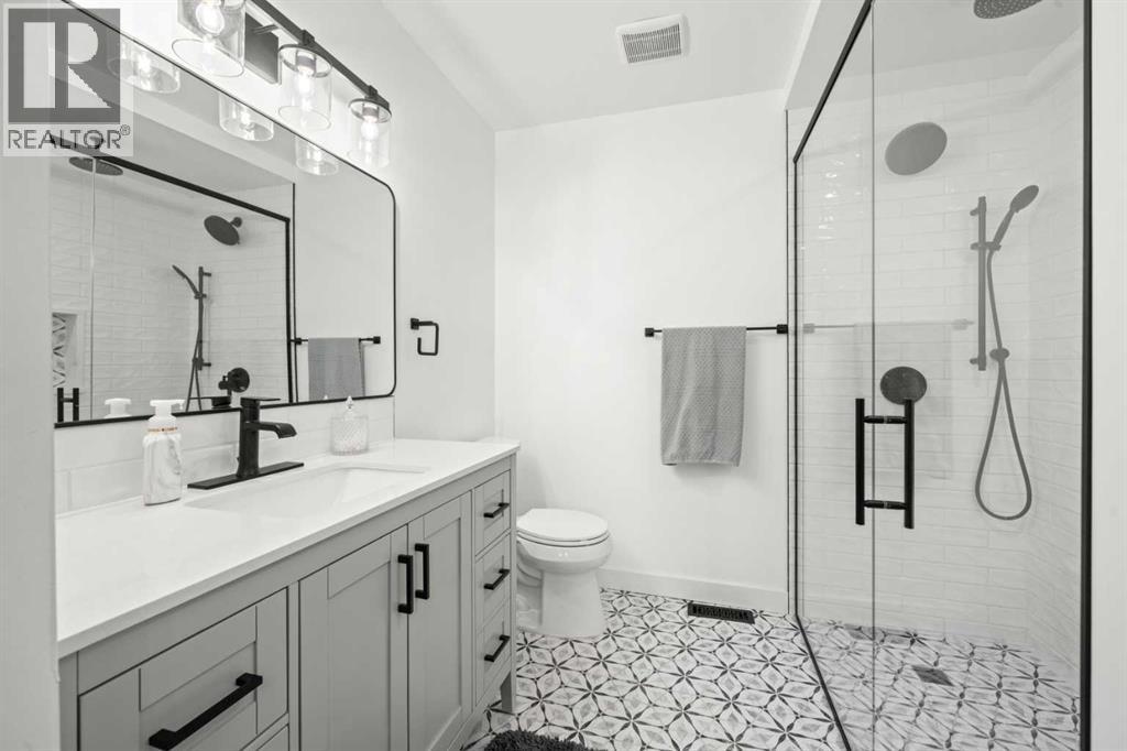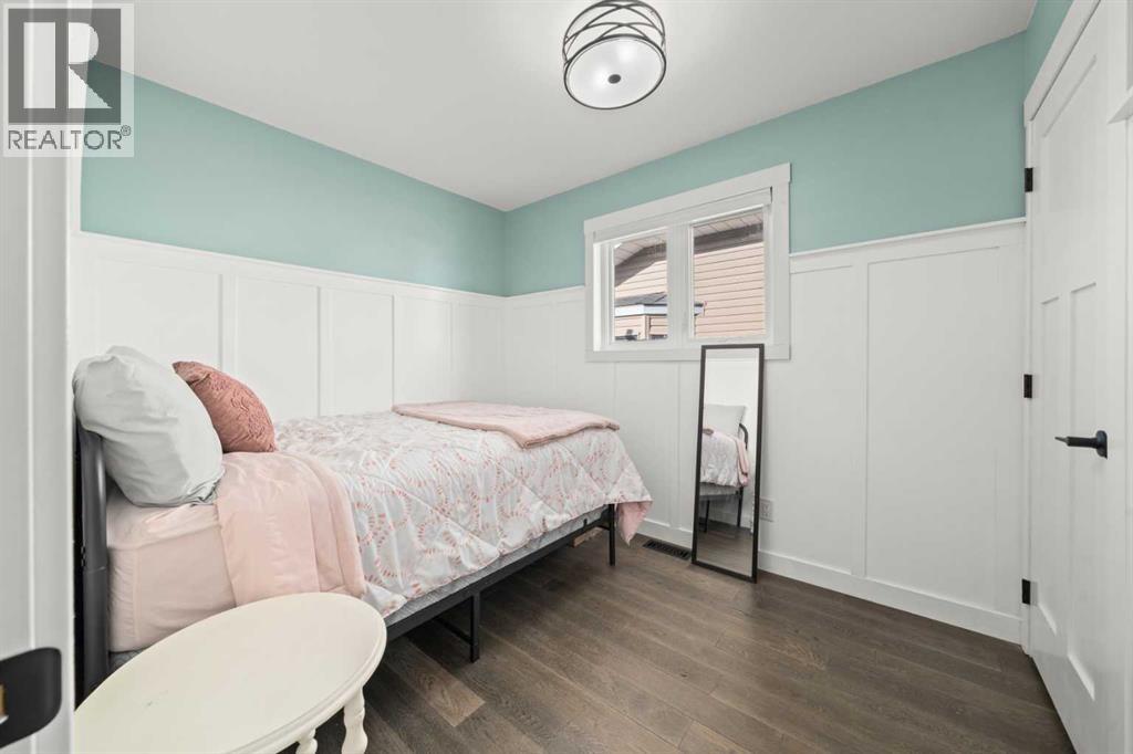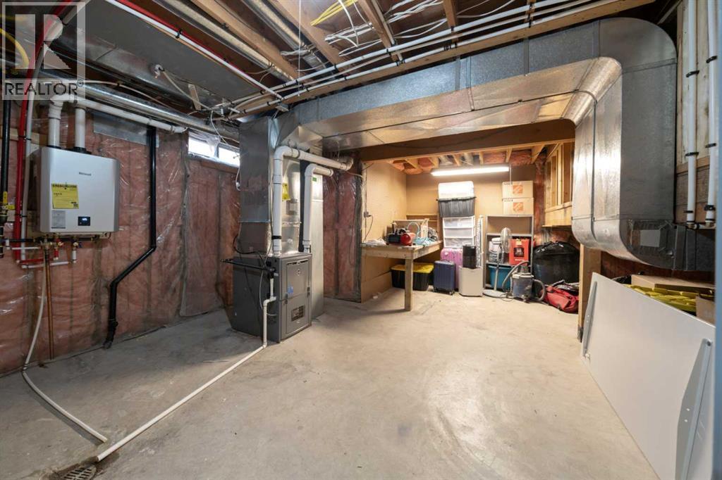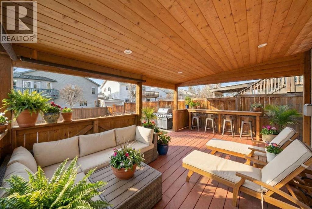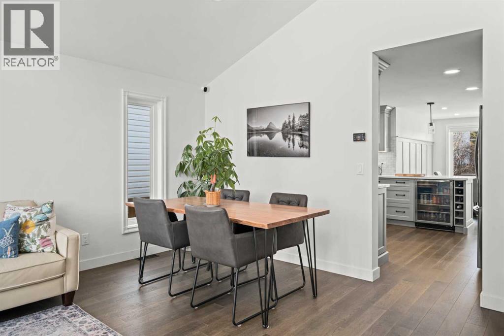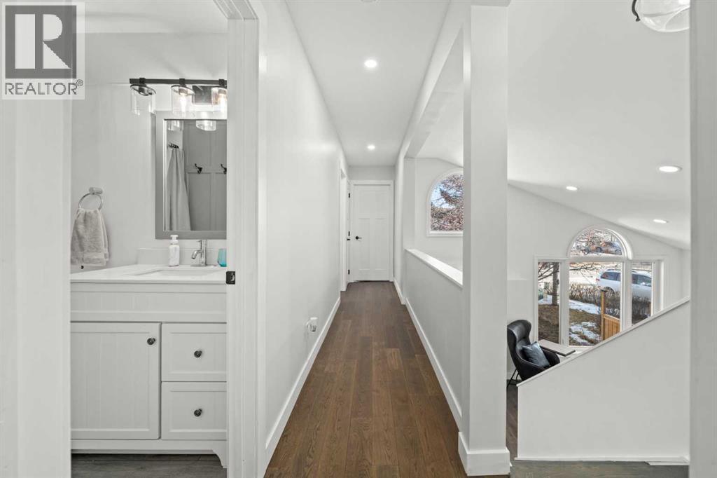 Welcome to this extensively upgraded home in a highly desirable location just steps from the Sheep River and its scenic walking paths, with schools, shopping, and parks nearby. Offering peace of mind and exceptional quality, this home has benefited from over $140,000 in recent renovations, including all-new wiring, PEX plumbing (no Poly B), triple-glazed windows, solid-core doors, new flooring, and updated trim throughout. The custom kitchen is the heart of the home, featuring a $45,000 upgrade with quartz countertops, farmhouse sink, soft-close cabinetry, pull-out pantry drawers, built-in microwave, beverage fridge, and a smart KitchenAid 6-burner gas range with designer hood fan. Under-cabinet lighting, pot lights, flat ceilings, and a breakfast bar create a bright, functional space that flows into a sunny nook. The family/dining room showcases vaulted ceilings, engineered hardwood flooring, and abundant natural light. The walkout living room offers a cozy gas fireplace and access to outdoor living. Enjoy a huge covered deck and generous west facing yard with planter boxes, Saskatoon bushes, and raspberries—ideal for relaxing or entertaining. This level also includes a tiled laundry room with half bath (front-load washer and dryer included) and a mudroom with built-in lockers. Upstairs, the primary suite features a walk-in closet with custom built-ins and a spa-inspired ensuite with heated tile floors, curbless oversized shower, rain head plus dual shower heads, and black accents. Two additional bedrooms feature wainscoting, including one with a window seat, along with a 4-piece bathroom with LVP flooring and quartz countertops. The fully developed lower level offers a spacious games/family room. Additional features include hardwood stairs, all-new blinds, high-efficiency furnace, tankless hot water system, crawl-space storage, camera system, and oversized single garage with side man door. A beautifully updated home offering exceptional location and lifestyle. Vie w Multi Media/3D/Virtual Tour. (id:63190)