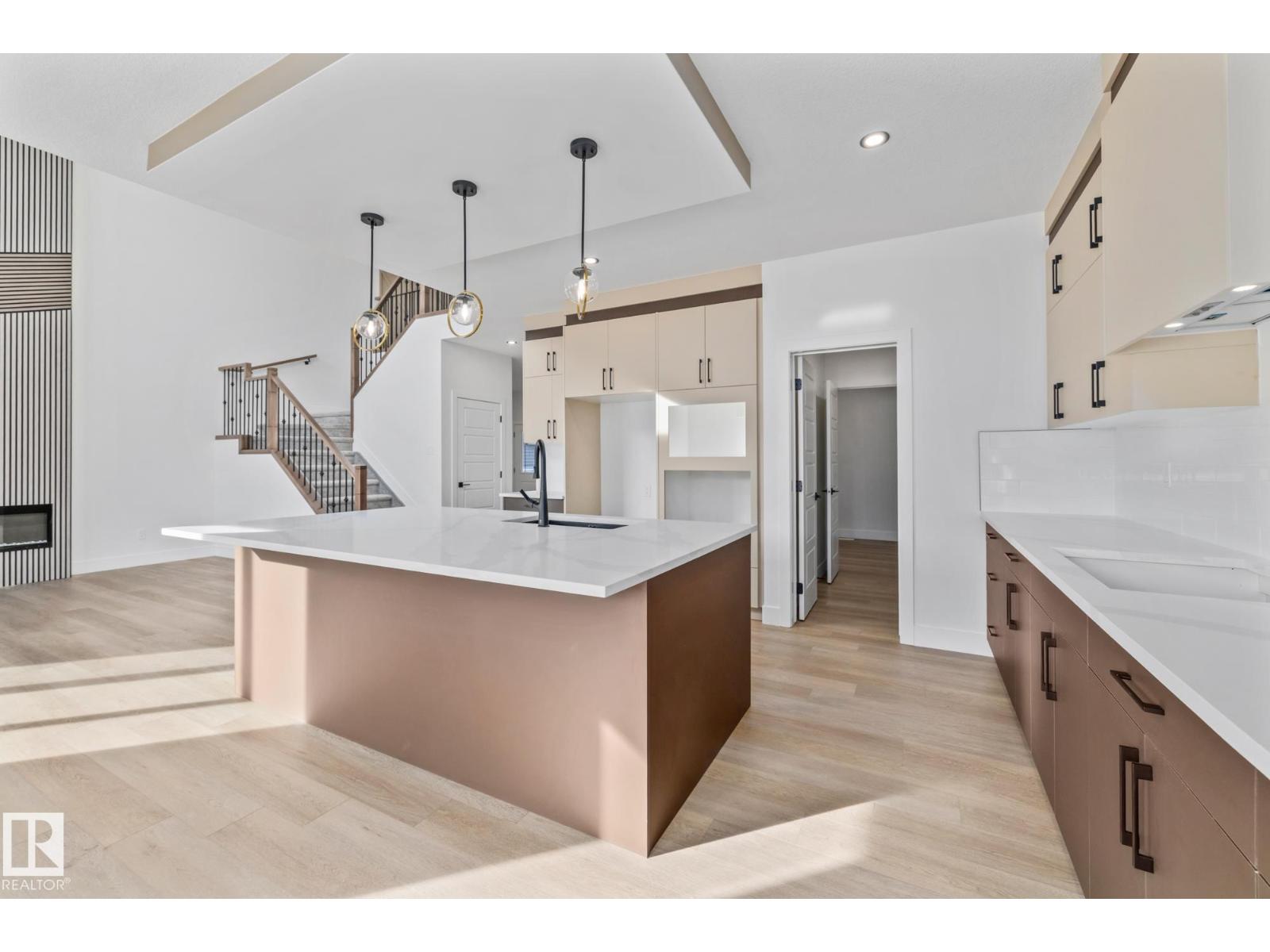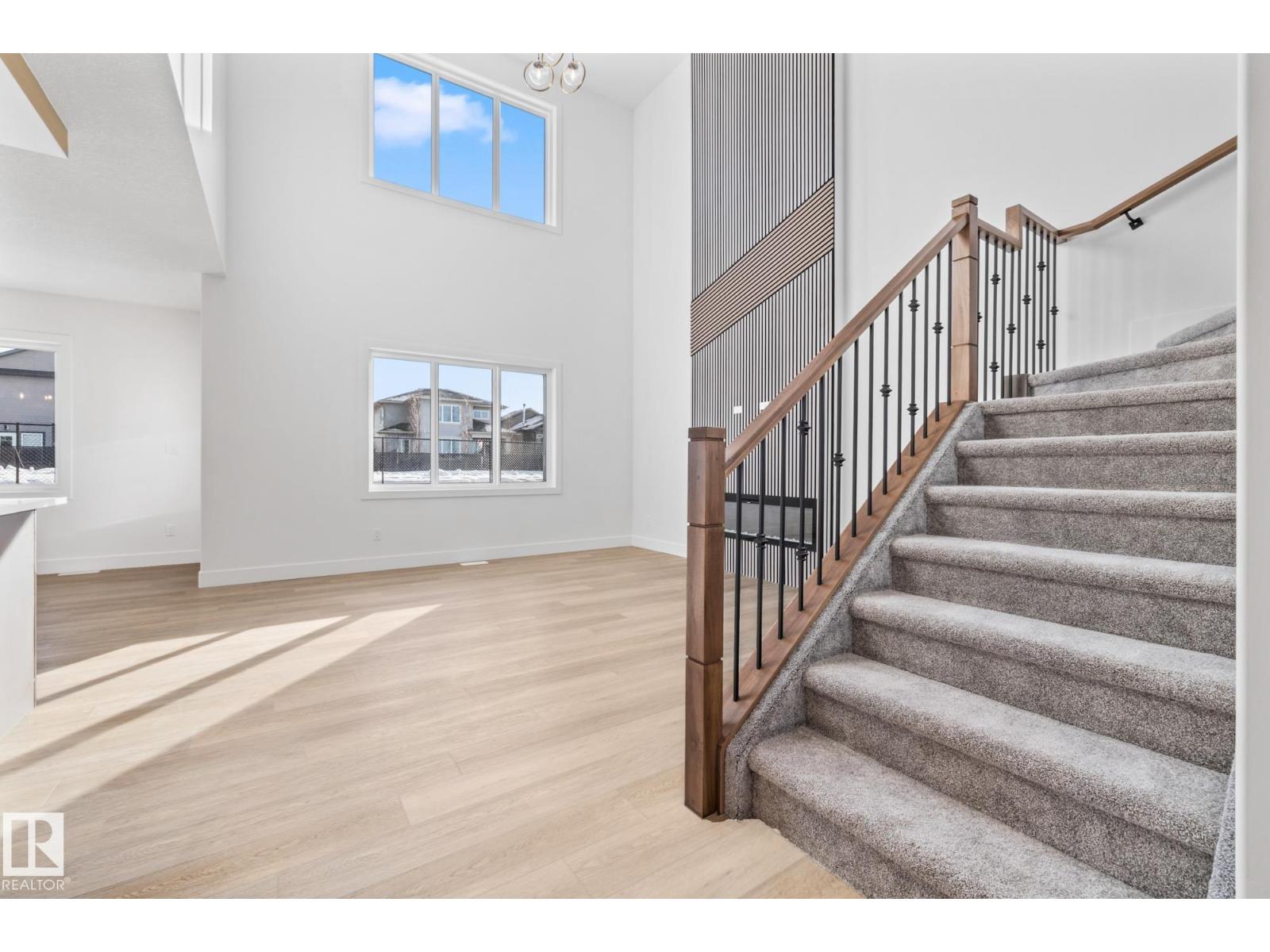 Welcome to a home where thoughtful design and everyday functionality come together beautifully. Enter directly from the garage into a well-appointed mudroom featuring built-in shelving for effortless organization. The walk-through pantry leads to an impressive chef’s kitchen with ample cabinetry and counter space, perfectly positioned to overlook the dining area and the breathtaking living room with 18’ ceilings and a stylish mantel complete with an electric fireplace. To the left on the upper level offers a spacious bonus room, two bedrooms, a shared bathroom with convenient access from both the bonus room and one bedroom, and an upstairs laundry area. Tucked away on the opposite side is the serene primary suite, complete with a private ensuite and a large closet featuring custom built-in shelving. Adding to the appeal is a side entrance and an attached triple-car garage with an RV bay. Located in Fort Saskatchewan, this property is just minutes from many amenities! (id:63190)