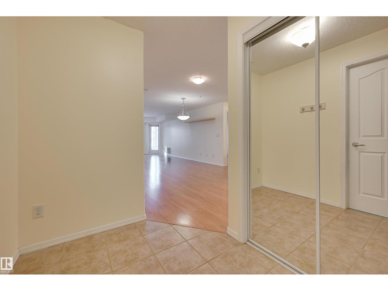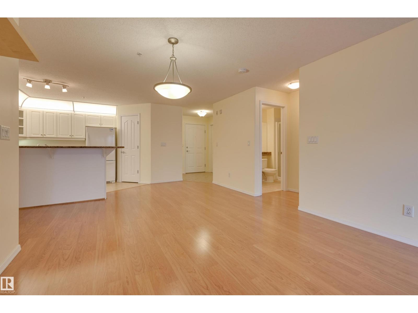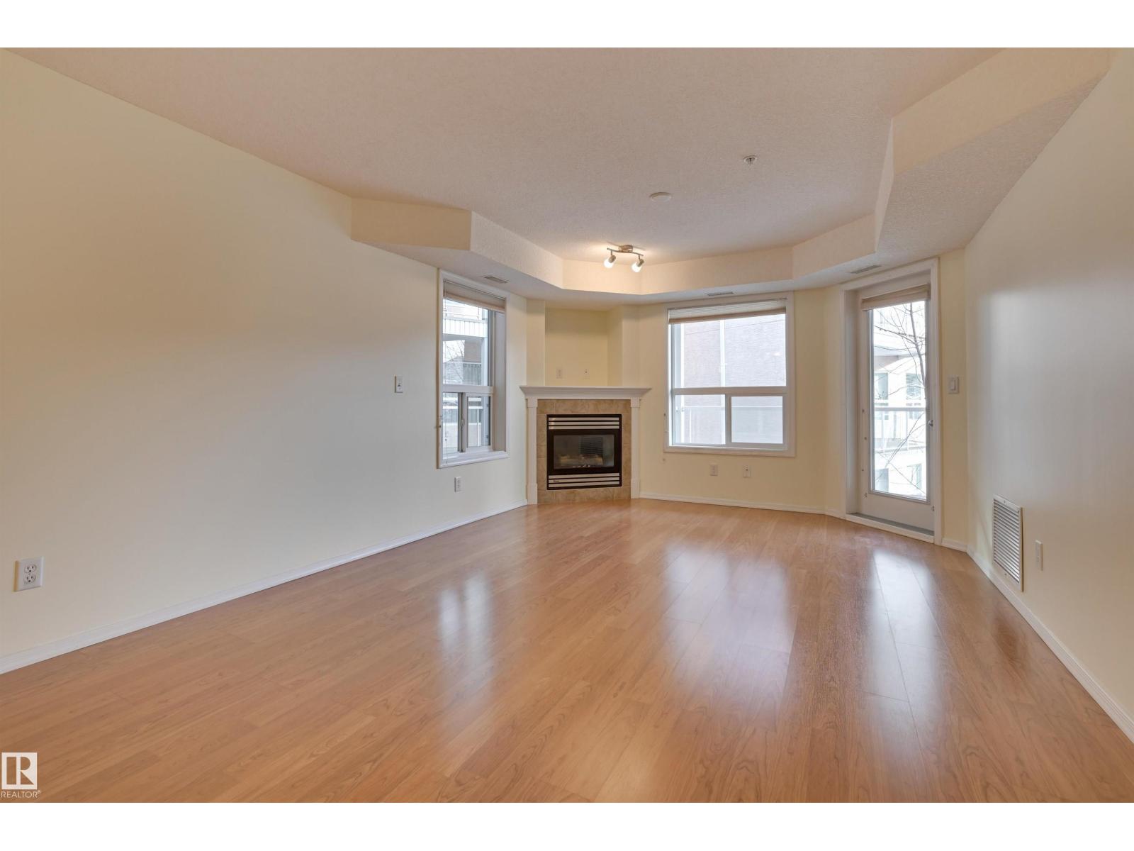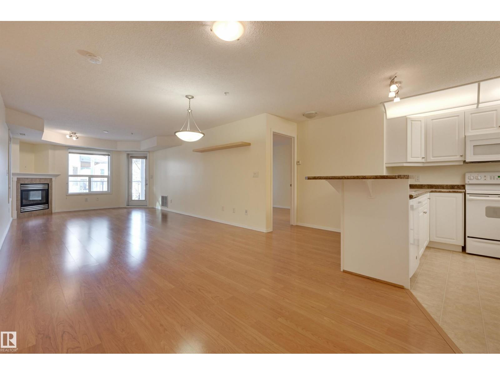 COURTYARD VIEWS from this IMMACULATE 2 bedroom 2 bathroom condo in the desirable RIVER GRANDE conveniently located with the river valley trails & transportation at your doorstep, minutes to Downtown & quick access to the U of A. This unit has an open concept layout with the bedrooms at opposite ends of the living area. The kitchen features white cabinetry, a raised eating bar & a pantry. Cozy gas f/p in the living room. Enjoy access to the southeast balcony with a gas BBQ outlet from the living room & primary bedroom. The primary bedroom has a walk through closet to the 4 piece ensuite & the 2nd bedroom is across from the 3 piece bathroom. The laundry room has storage. Included: stove, built-in microwave, fridge, dishwasher, INSUITE WASHER & DRYER, A/C, U/G PARKING & storage locker. Well managed, pet friendly building offering a fitness room, games room, social room, guest suite, car wash & visitor parking. Adjacent well maintained park with community amenities. Beautifully maintained home! (id:63190)