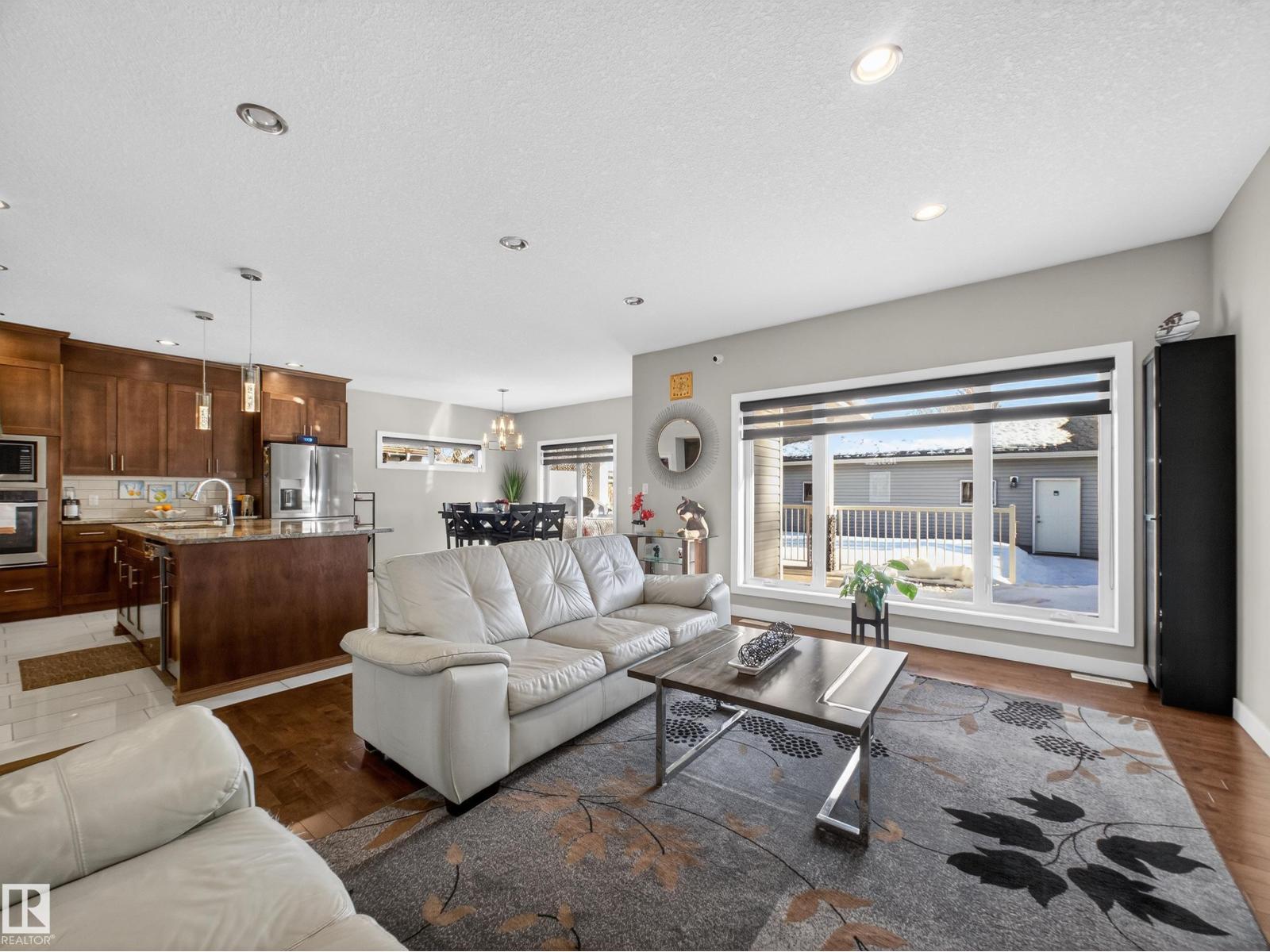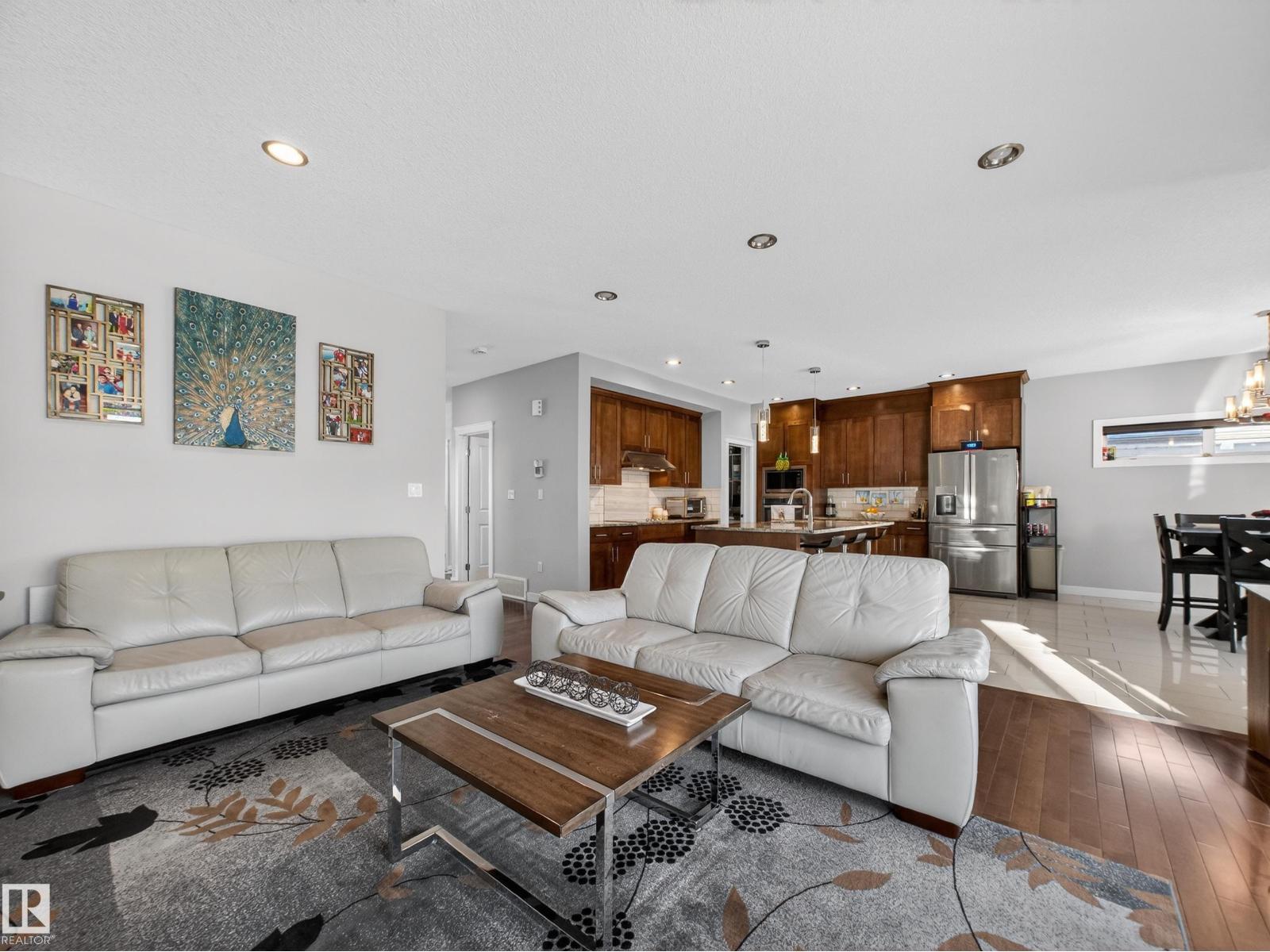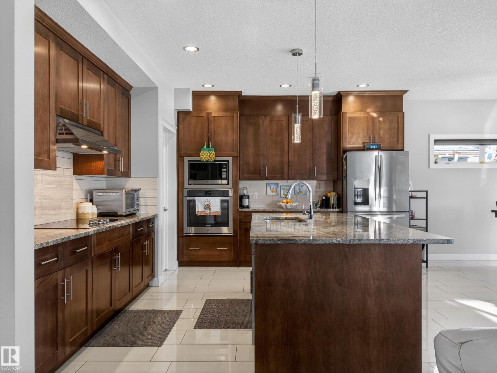 SHOWSTOPPER This custom centrally located home offers space, style, and income potential. Featuring 5 bedrooms, 5 bathrooms, plus a 1-bedroom legal suite, this property also boasts a triple detached garage and a truly luxurious main floor. Enjoy charming curb appeal with a welcoming front veranda, a flexible front living/flex room, and a main-floor bedroom with direct access to a full bath—ideal for guests or multigenerational living. The open-concept layout showcases a bright great room with backyard views, a cozy family room with gas fireplace, and an exceptional kitchen complete with breakfast bar, pantry, quality appliances, granite countertops, and maple cabinetry. Large windows, hardwood and tile flooring, and air conditioning add comfort throughout. Upstairs offers 4 bedrooms, laundry, and a spacious primary suite with a 5-piece ensuite featuring dual sinks, glass shower, and whirlpool tub. The fully developed basement includes a large family room with wet bar, 2-piece bath, and a separate suite (id:63190)