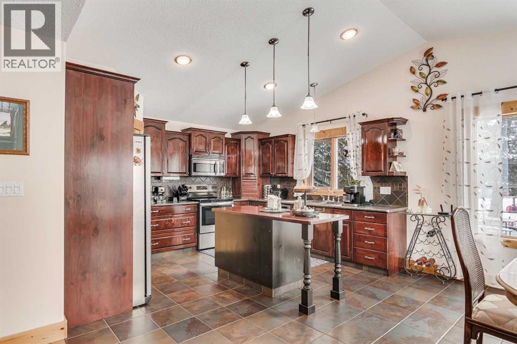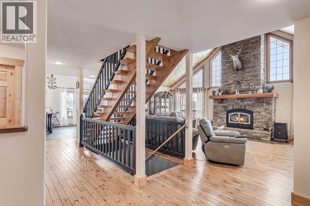 A farm of 153.74 acre that offers a unique blend of rural charm and income-generating opportunities. With three distinct sources generating income with leased land, an oil lease, and rental income from the extensively renovated two-bedroom original homestead. A standout feature of the farm is the newly meticulous built 40 x 60 metal shop designed with extended shelters outside of either side providing ample space for large outdoor equipment storage. Interior of the shop was planned for the creation of a 4th stream of income with a walk in cooler, large working enclosed area designed with electrical and access to water. This versatile farm is the perfect combination of the comfort of a custom home, income potential and impressive infrastructure with separate services and access for each home ensuring privacy and convenience. The main 1.5 story home was constructed in 2006 and built with 3815.09 sq ft of living space. A grand floor to ceiling 2 story field stone fire place with windows that flank each side provides you with a mountain view and is a main feature to be enjoyed on 2 levels. On the second level the loft is currently used as the primary bedroom with two closets and a 5 pc bathroom. A new wall to wall folding door installed to provide privacy while still allowing natural light to filter through the loft primary bedroom will also allow for the loft area to be converted to additional living space for any family. The open dinning and kitchen area is a delight for any chef to enjoy while entertaining guest year round. Garden doors lead from the dinning area to the back deck and allows for the ease of outdoor dinning and barbecuing. The layout of the kitchen offers a pantry for extra storage and the large island giving easy flow for prep time. All the bedrooms are extra large in size with double closet space and windows that allow for not only plenty of natural light but a view. 123 acres are cultivated. Seeded in 2025 barley, remainder of the land is pastur e, treed with the bonus of a year round creek . Brand new boiler heating system valued over $20,000.00 installed April of 2025. Opportunity to subdivide is subject to the approval of the Clearwater County. Location to the Town of Rocky Mtn. House and all the amenities is a smooth 11 km drive with pavement all the way. (id:63190)