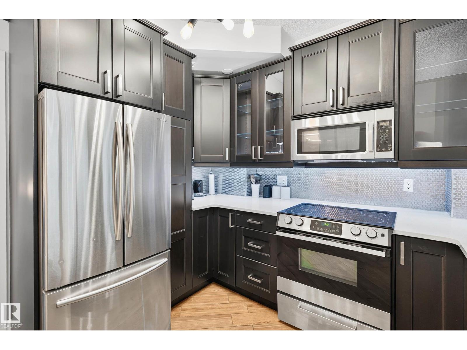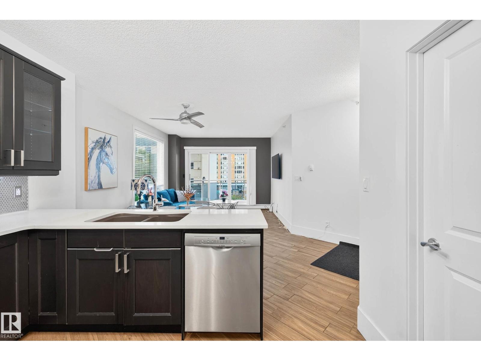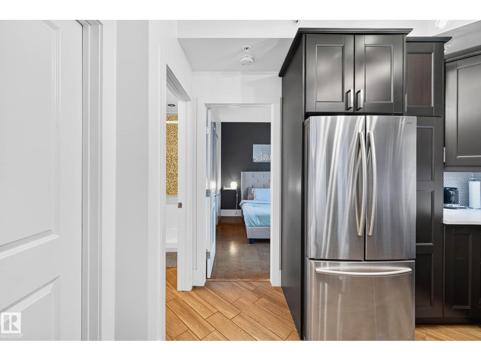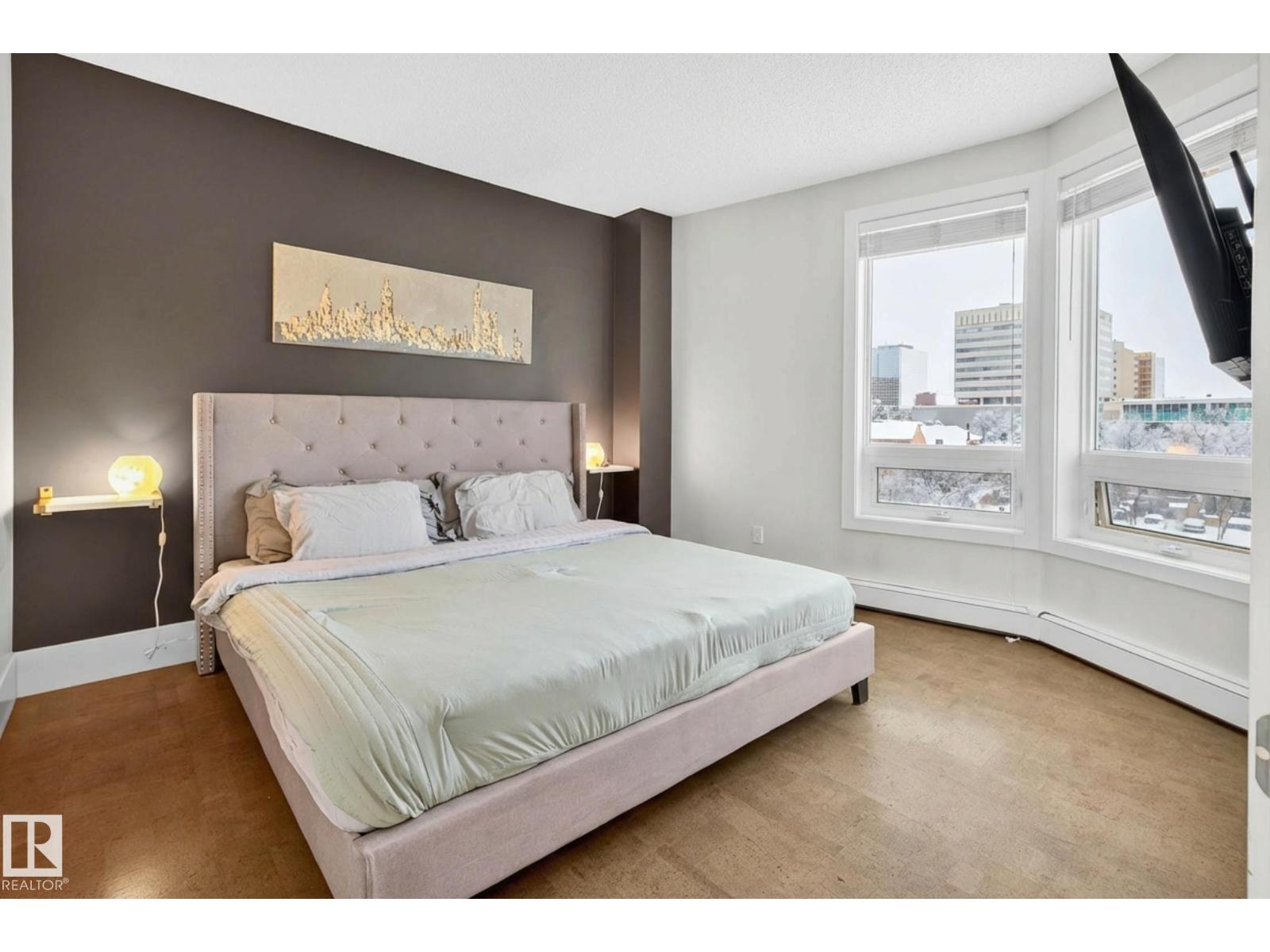 Welcome to The Omega, ideally located in the heart of downtown Edmonton. This renovated condo offers stylish living with a thoughtful layout and abundant natural light. The modern kitchen has sleek cabinetry, quartz countertops, stainless steel appliances, and ample storage. The open-concept living and dining area is bright and airy, leading onto a south-facing balcony with city views, the perfect spot for morning coffee or evening unwinding. The spacious bedroom features warm cork flooring and large windows, while the renovated bathroom adds a fresh, contemporary feel. Additional highlights include in-suite laundry, generous storage, and a titled underground heated parking stall. Residents of The Omega enjoy access to a fitness centre, secure key fob entry, and a pet-friendly community. Condo fees conveniently include heat and water. With Rogers Place, the River Valley, and some of Edmonton’s best restaurants and cafés steps away, this home blends lifestyle and location seamlessly. (id:63190)