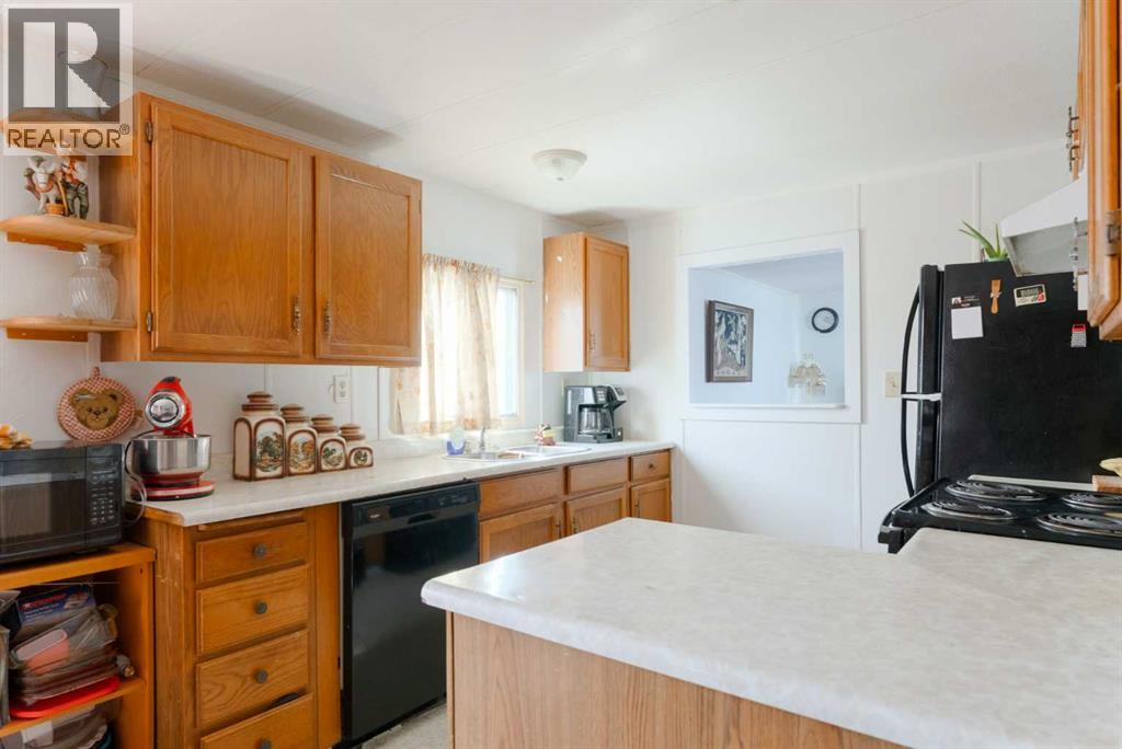 Affordable living without sharing walls! This 2 bedroom, 1 bath unit is located in a quiet street within the park. Your living room is the perfect spot to relax and enjoy the sunlight that floods in. The kitchen has plenty of storage with a large peninsula, complete with a lazy Susan in the corner cabinet, which makes it a breeze to cook in. While the adjacent dining room allows for a large table plus it has built in cabinets. The bathroom, has an easy access, low step oversized tub/shower combo. Both the primary and secondary bedrooms are large and bright. Plus there is a flex room that was once used as an office, and now is a large storage room but could also be used as a hobby room! With a large covered deck you're able to enjoy the outdoors regardless of the weather. The large yard is fully fenced and boosts beautiful grass in the summer- perfect for your children or pets! The clubhouse offers a modern fitness room, a community kitchen, a games room with 8-ball pool table, a playground, and an outdoor BBQ area- available for all residents to use! All of this for a monthly pad rent of $1,348 which also includes access to the clubhouse amenities, water, sewer and garbage removal! Calgary Village is a quiet, family-friendly community, close to schools and shopping. Opportunity awaits for you to make this home your own! (id:63190)