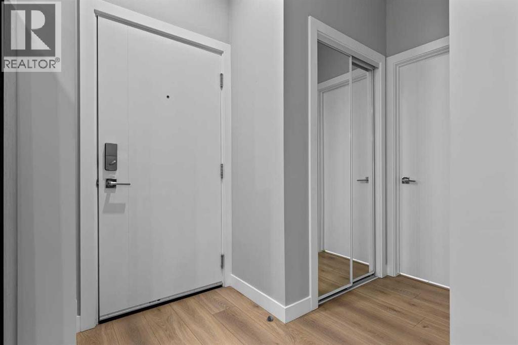 Open house Saturday April 11: 12-3pm. Enjoy maintenance-free living in this spacious one-bedroom condo in the sought-after 55+ Maple building, ideally located in Calgary’s vibrant University District. Built by Truman Homes, Maple offers a secure, social community with luxury finishes, perfect for those ready to simplify life without sacrificing lifestyle.Unit 107 is a convenient main-floor condo with direct access to the covered patio and walking paths; ideal for easy comings and goings or running a quick errand. This 728 sq ft home features an open-concept floorplan with 9-foot ceilings, engineered hardwood flooring, and large triple pane picturesque windows. The modern kitchen includes quartz countertops, stylish cabinetry, a designer backsplash, and stainless steel appliances. The large island is perfect for casual meals or prepping a beautiful dinner at home. The dining area is spacious and also great for hosting family visits or playing cards with the grandchildren. The kitchen and dining area open to the living room, creating a comfortable space to relax at the end of the day. The generously sized bedroom includes a walk-through closet and a spacious 4-piece ensuite. A second full bathroom adds extra convenience for any guests. This unit also includes in-suite laundry and your own titled, heated underground parking stall.The Maple building includes a heated underground parkade, plenty of visitor parking, elevators, and thoughtful “aging in place” features such as wide hallways, accessible entrances, and automated doors. Residents will also enjoy a beautifully landscaped courtyard with inviting seating areas.Living in the University District makes everyday life incredibly convenient. From groceries and banking to coffee dates and evening movies, everything is close by. Save-On-Foods, Staples, Shoppers Drug Mart, Cineplex, COBS Bread, Monogram Coffee, Market Mall, and a variety of cafés, restaurants, and shops along Main Street are all within easy walking dis tance. With more amenities opening all the time, the University District continues to stand out as one of Calgary’s most vibrant and walkable communities.Next door is Cambridge Manor, a neighbouring residence offering independent and supportive living services. Maple residents are able to access select lifestyle and recreation amenities at Cambridge, including a bistro café, fitness centre, and a variety of fitness classes. A hair salon is also available, along with organized social activities such as coffee club, card games, crib club, drum circles, concerts, movies and documentaries, and special holiday meals.Whether you’re looking for a lock-and-leave lifestyle or a welcoming community to enjoy year-round, Unit 107 at Maple is an outstanding opportunity in one of Calgary’s best urban neighbourhoods. (id:63190)