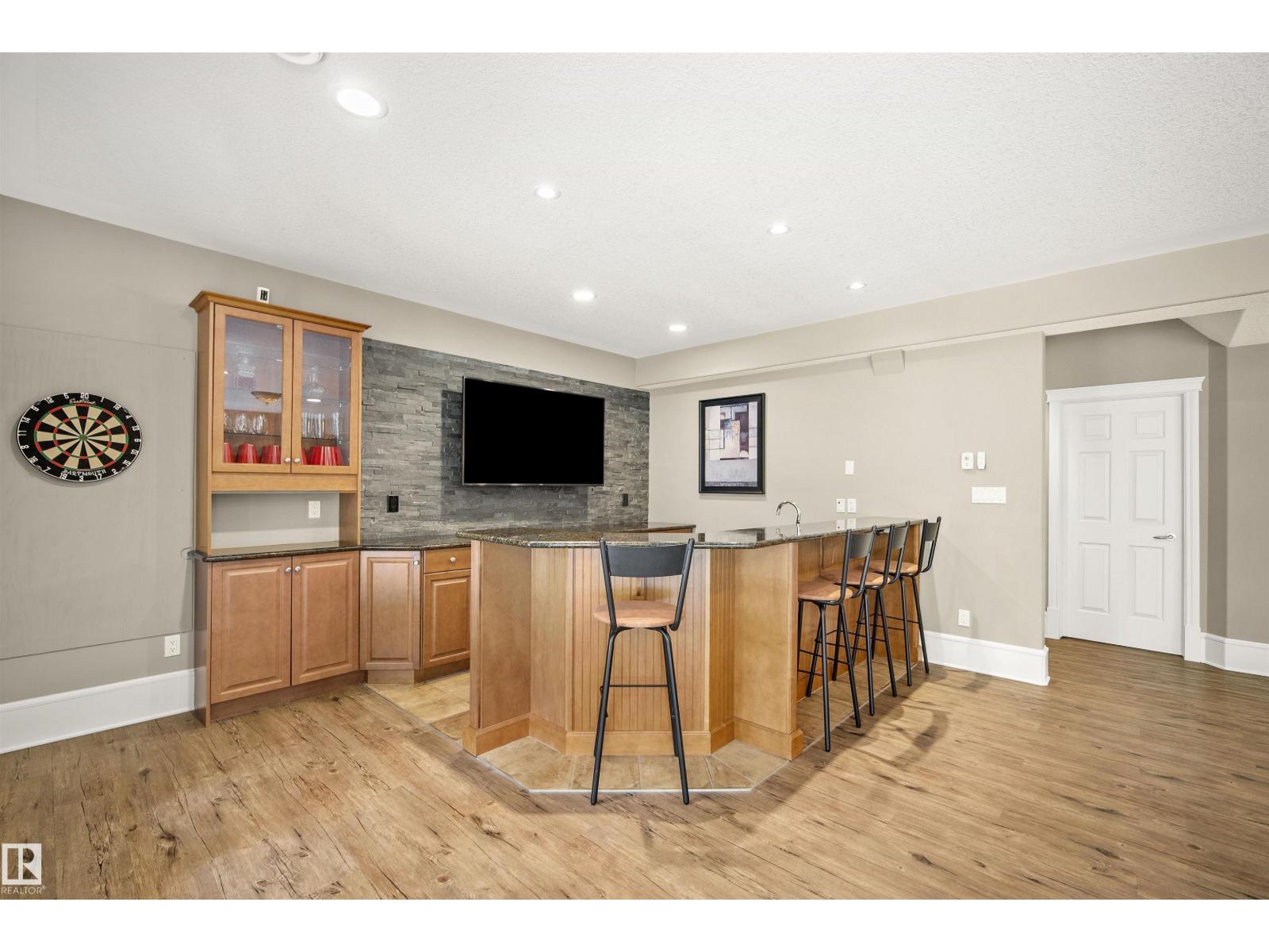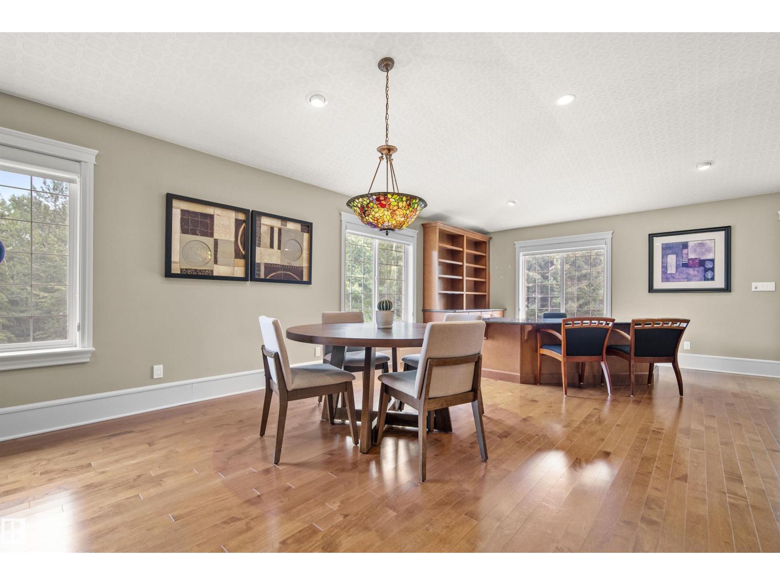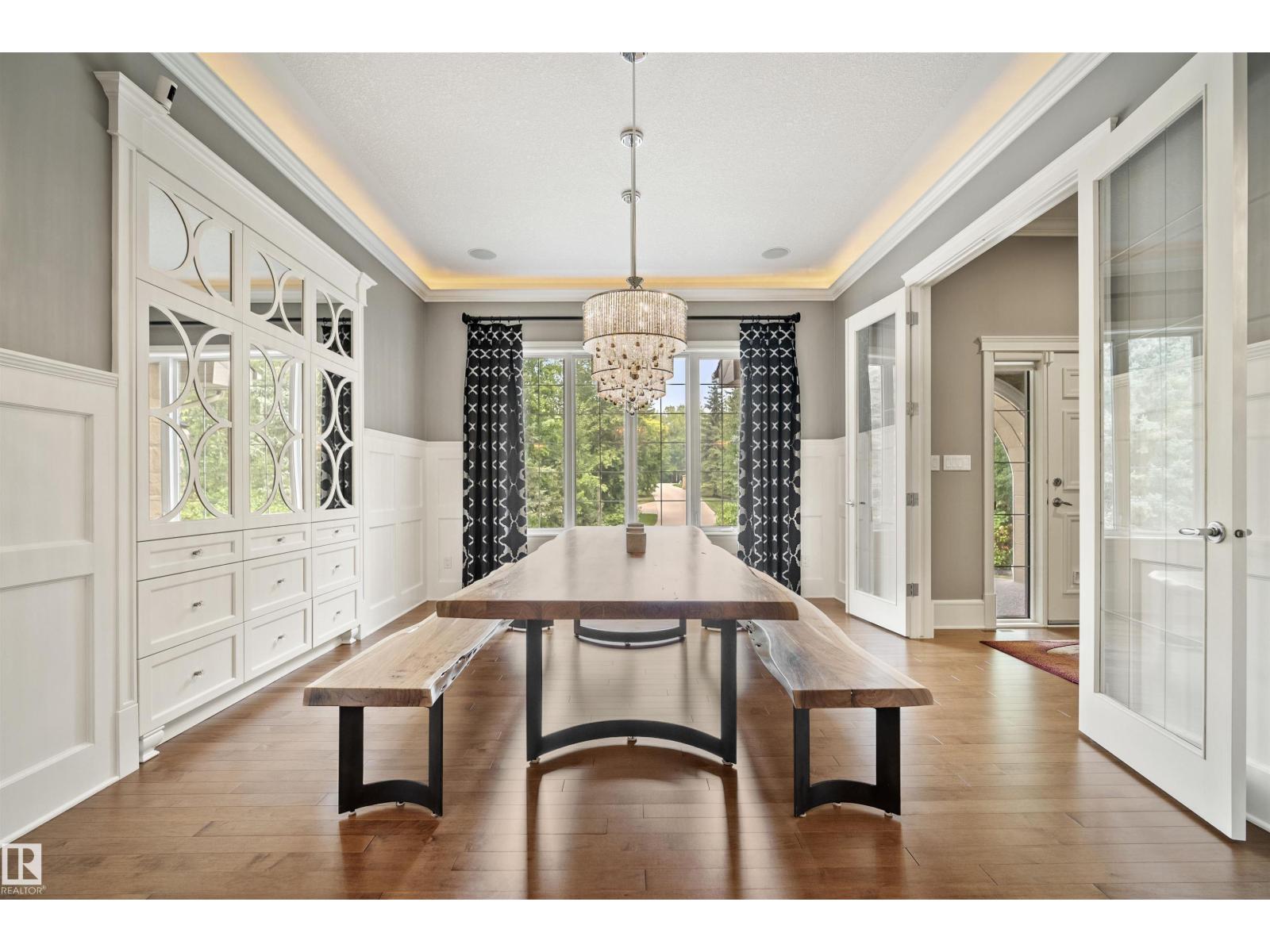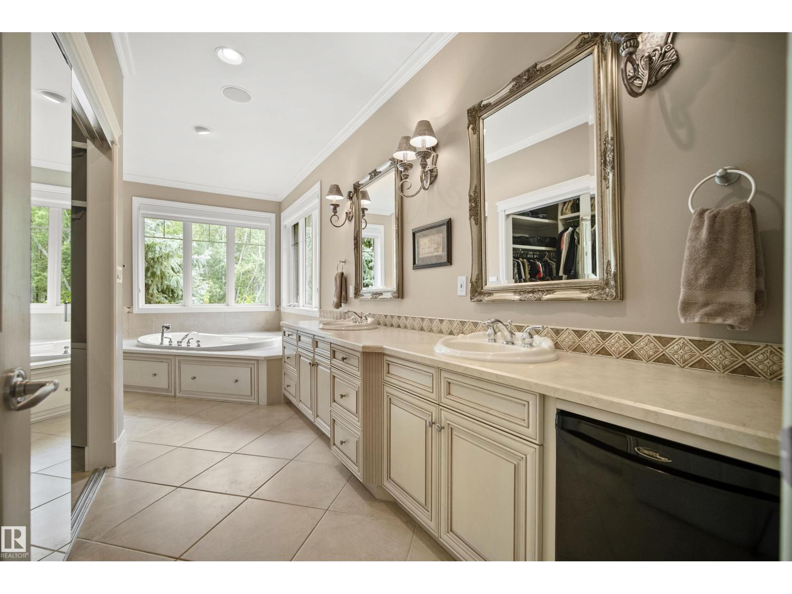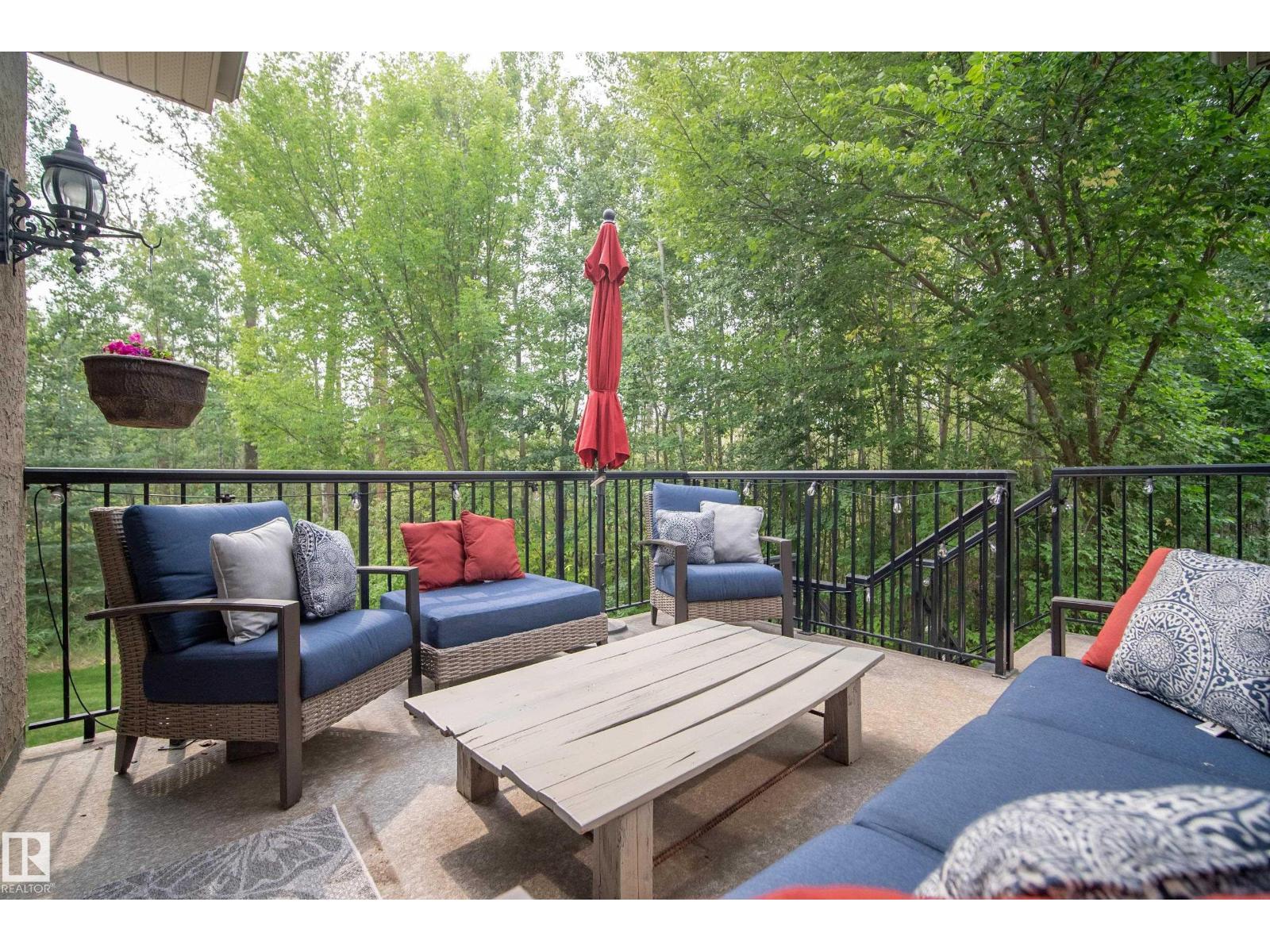 Welcome to this exceptional family estate where timeless design meets everyday luxury. Tucked away on 2 private acres in a quiet cul-de-sac, this home is a short walk to SWP Natural Area & Deermound Dog Park (via neighbourhood pathway). Offering 5860+ sf of beautifully finished living space across 3 levels, this home blends elegance & functionality. The upper level features 4 generous bedrooms, each with its own ensuite. The main floor impresses with two wood-burning fireplaces and a chef-inspired kitchen. The walkout basement is built for entertaining with a full bar, rec room, theatre, & gym. There is a complementary 1400+ sf detached carriage suite. Thoughtful extras include AC, in-floor heat, laundry chute, central vac, built-in speakers, cold storage, gas BBQ hookups, RV parking (30-amp), aggregate driveway, epoxy garage floors, dog wash, dog run, & playhouse. 2 triple garages (5 vehicles + workshop). City water. Just minutes to SWP and EDM, this is refined acreage living in Waterton Estates. (id:63190)