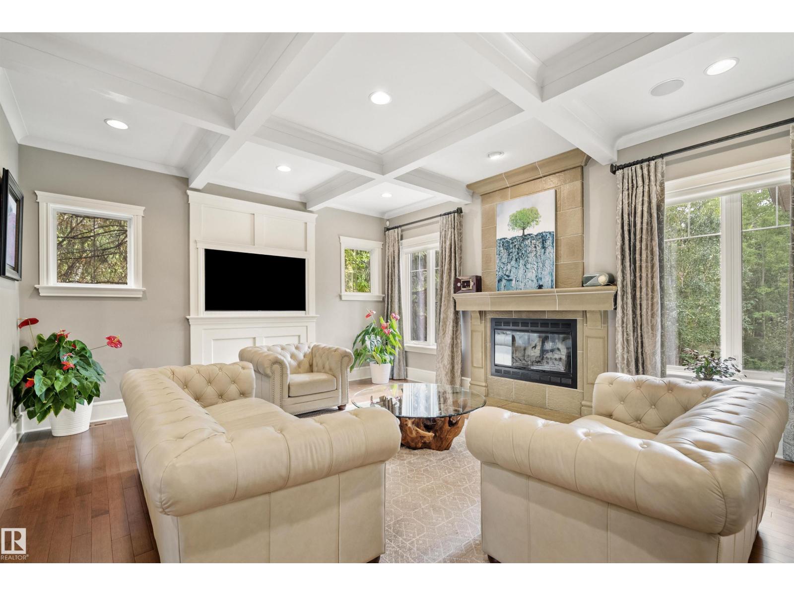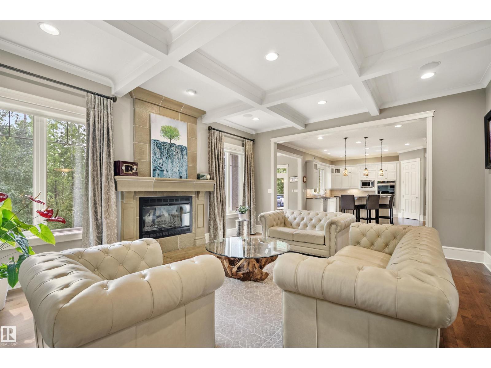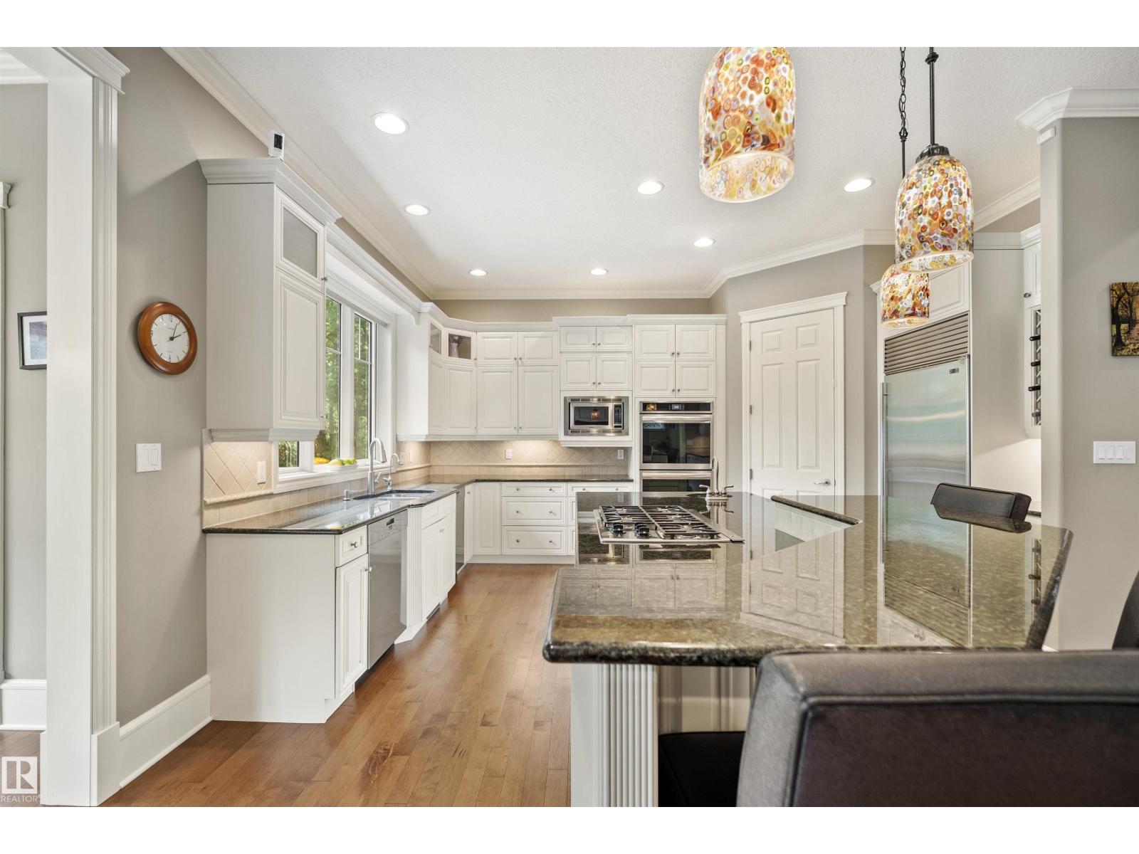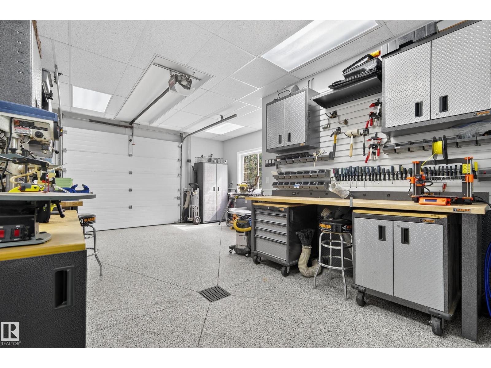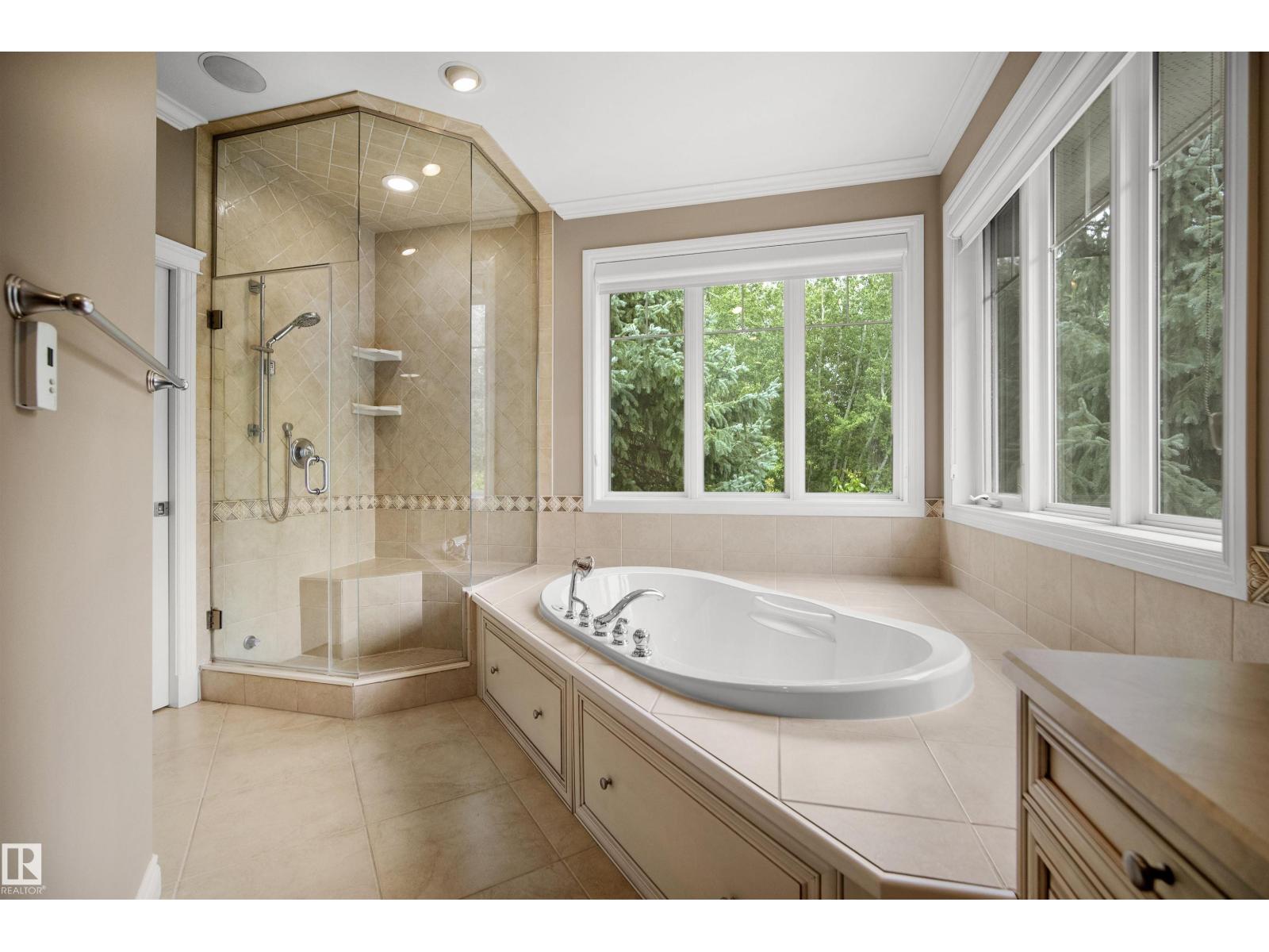 Welcome to this exceptional family estate where timeless design meets everyday luxury. Tucked away on 2 private acres in a quiet cul-de-sac, this home is a short walk to SWP Natural Area & Deermound Dog Park (via neighbourhood pathway). Offering 5860+ sf of beautifully finished living space across 3 levels, this home blends elegance & functionality. The upper level features 4 generous bedrooms, each with its own ensuite. The main floor impresses with two wood-burning fireplaces and a chef-inspired kitchen. The walkout basement is built for entertaining with a full bar, rec room, theatre, & gym. There is a complementary 1400+ sf detached carriage suite. Thoughtful extras include AC, in-floor heat, laundry chute, central vac, built-in speakers, cold storage, gas BBQ hookups, RV parking (30-amp), aggregate driveway, epoxy garage floors, dog wash, dog run, & playhouse. 2 triple garages (5 vehicles + workshop). City water. Just minutes to SWP and EDM, this is refined acreage living in Waterton Estates. (id:63190)