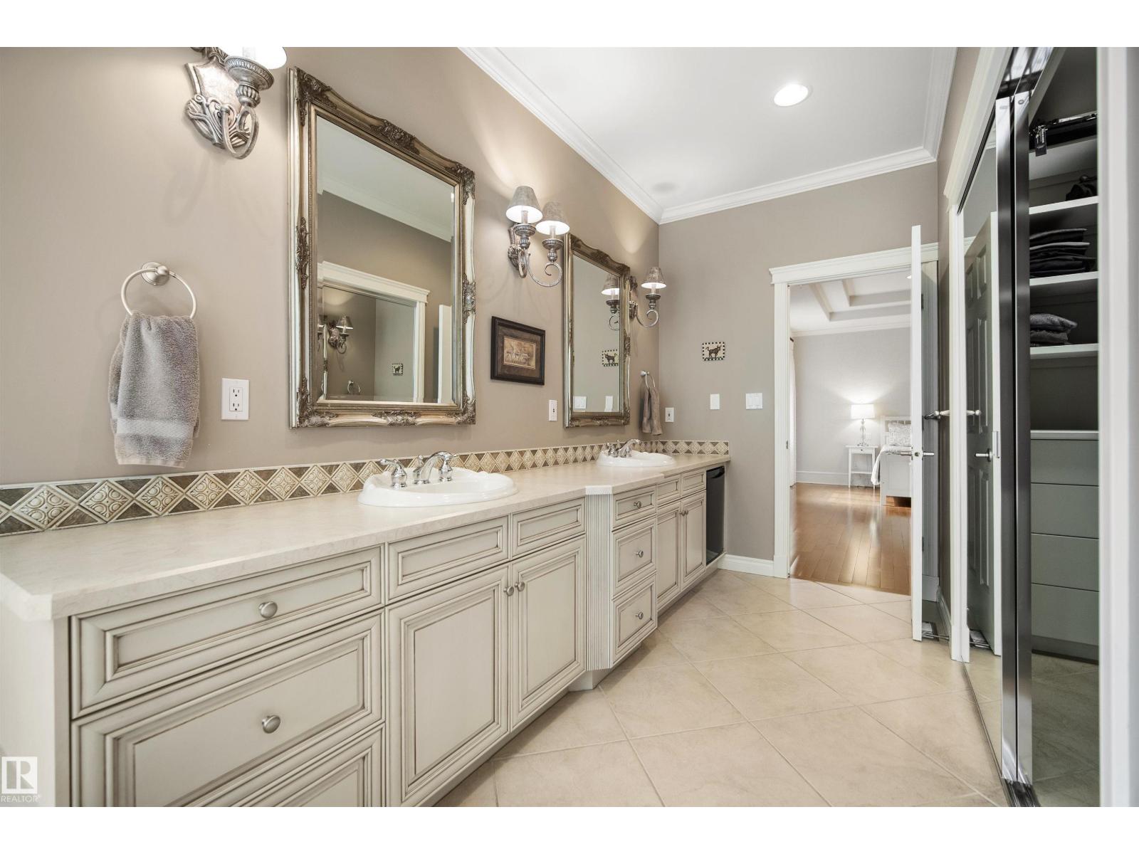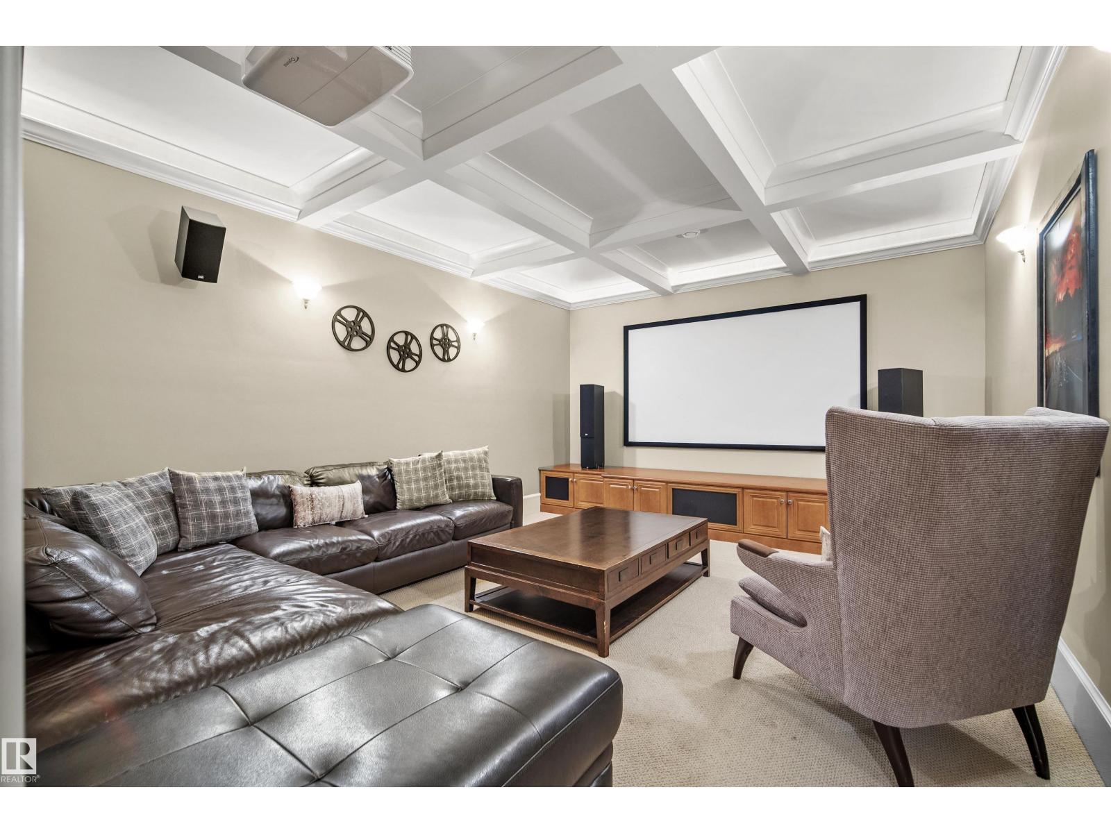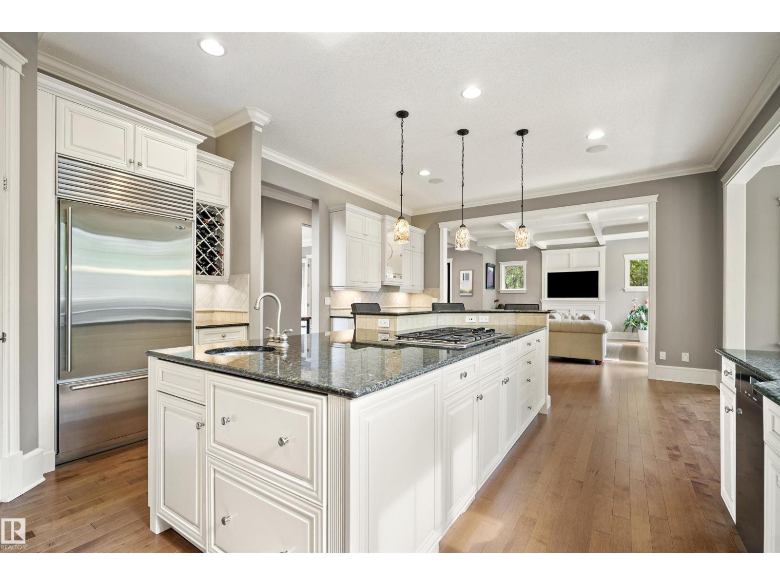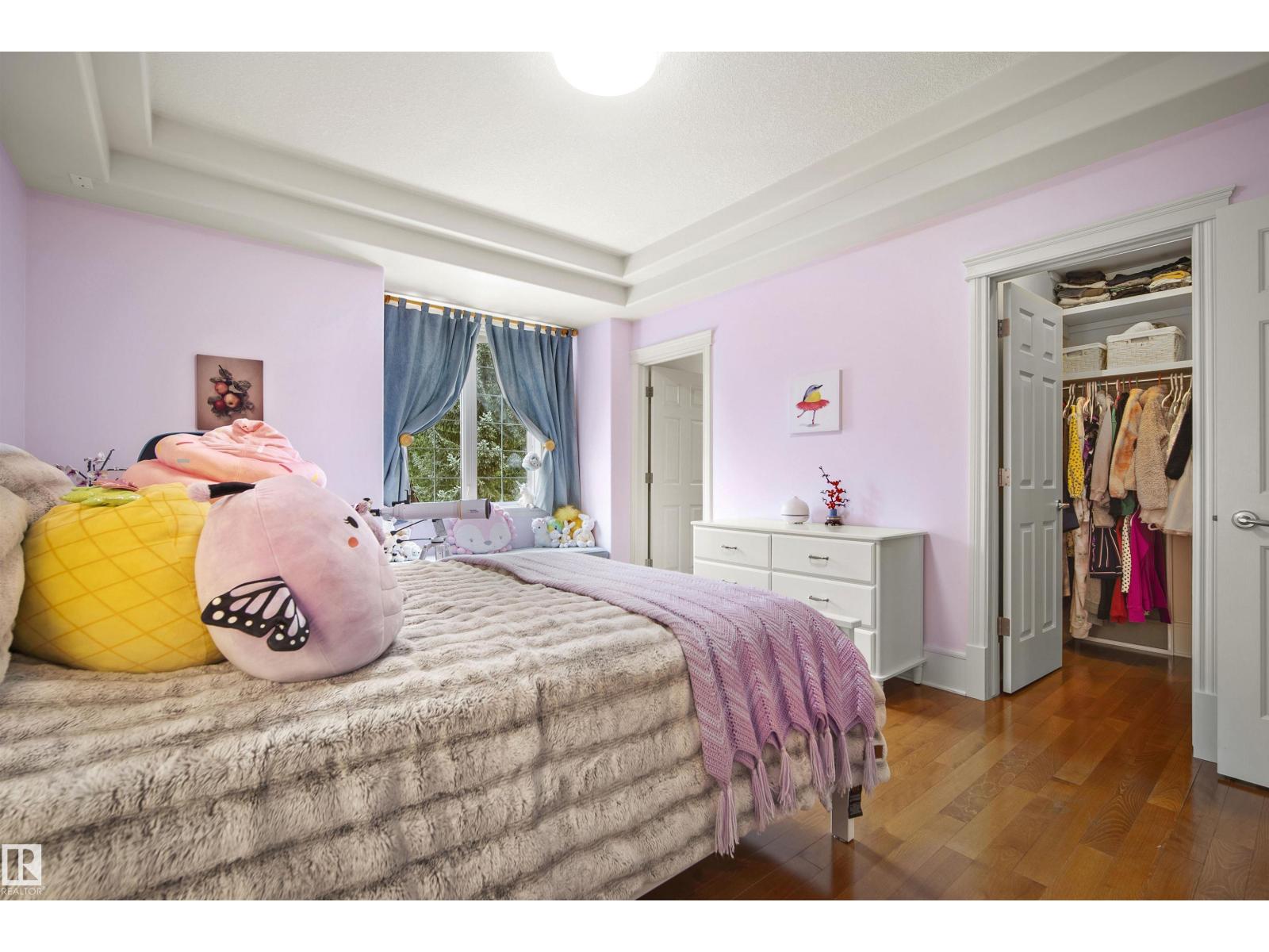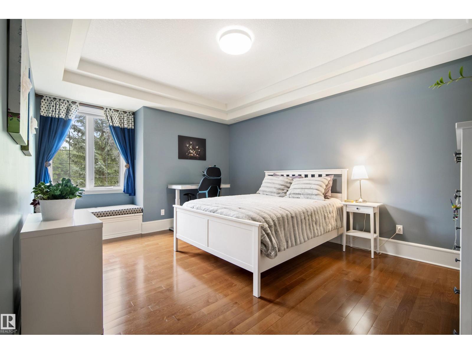 Welcome to this exceptional family estate where timeless design meets everyday luxury. Tucked away on 2 private acres in a quiet cul-de-sac, this home is a short walk to SWP Natural Area & Deermound Dog Park (via neighbourhood pathway). Offering 5860+ sf of beautifully finished living space across 3 levels, this home blends elegance & functionality. The upper level features 4 generous bedrooms, each with its own ensuite. The main floor impresses with two wood-burning fireplaces and a chef-inspired kitchen. The walkout basement is built for entertaining with a full bar, rec room, theatre, & gym. There is a complementary 1400+ sf detached carriage suite. Thoughtful extras include AC, in-floor heat, laundry chute, central vac, built-in speakers, cold storage, gas BBQ hookups, RV parking (30-amp), aggregate driveway, epoxy garage floors, dog wash, dog run, & playhouse. 2 triple garages (5 vehicles + workshop). City water. Just minutes to SWP and EDM, this is refined acreage living in Waterton Estates. (id:63190)