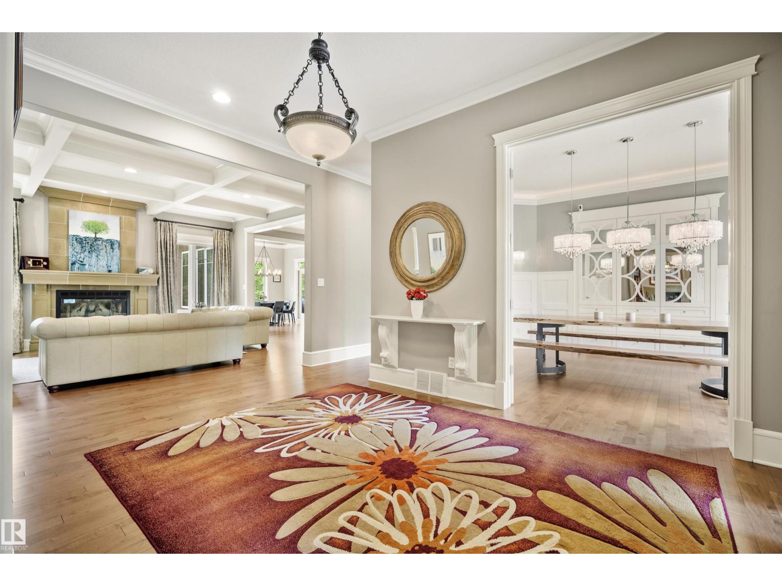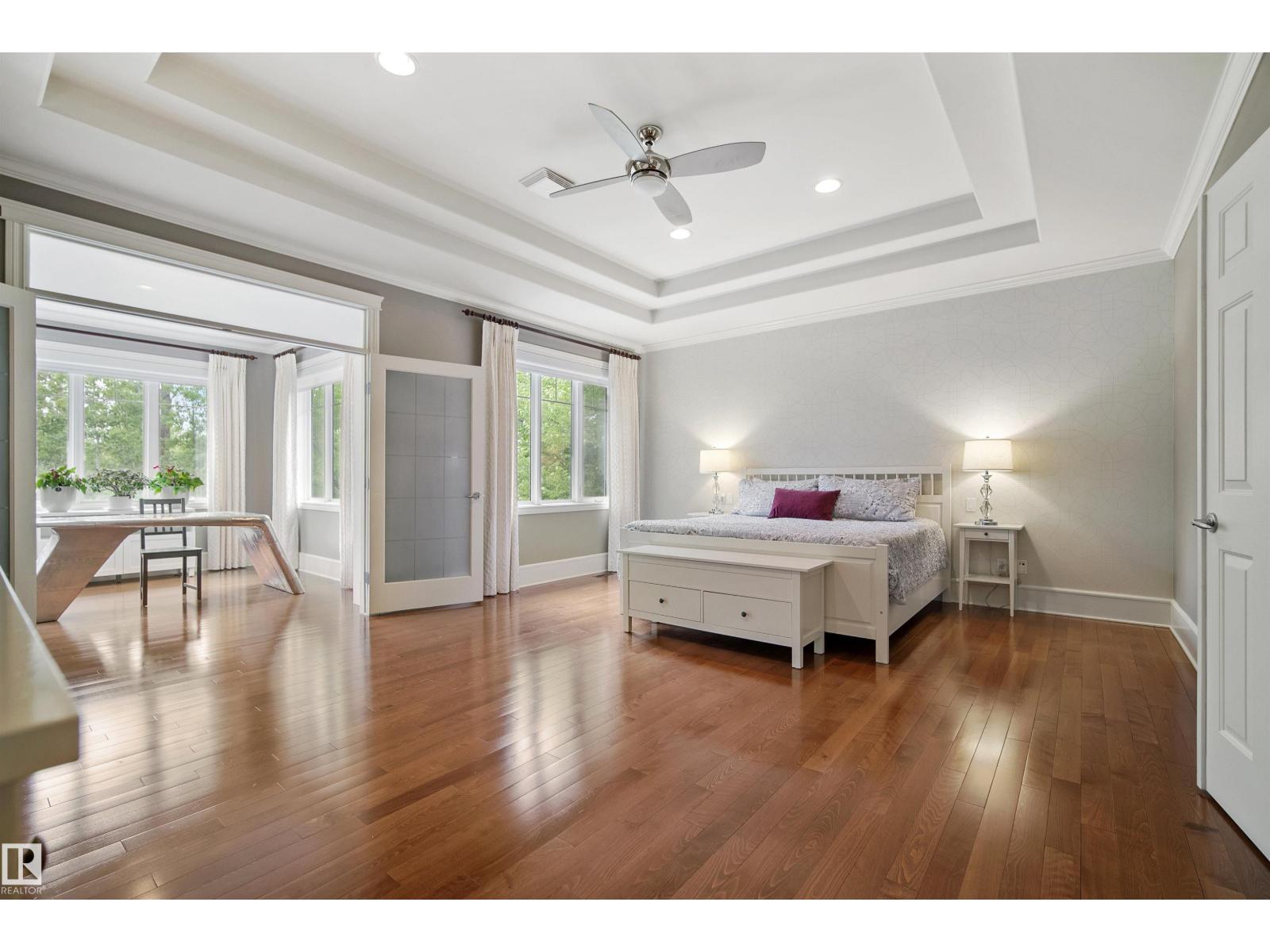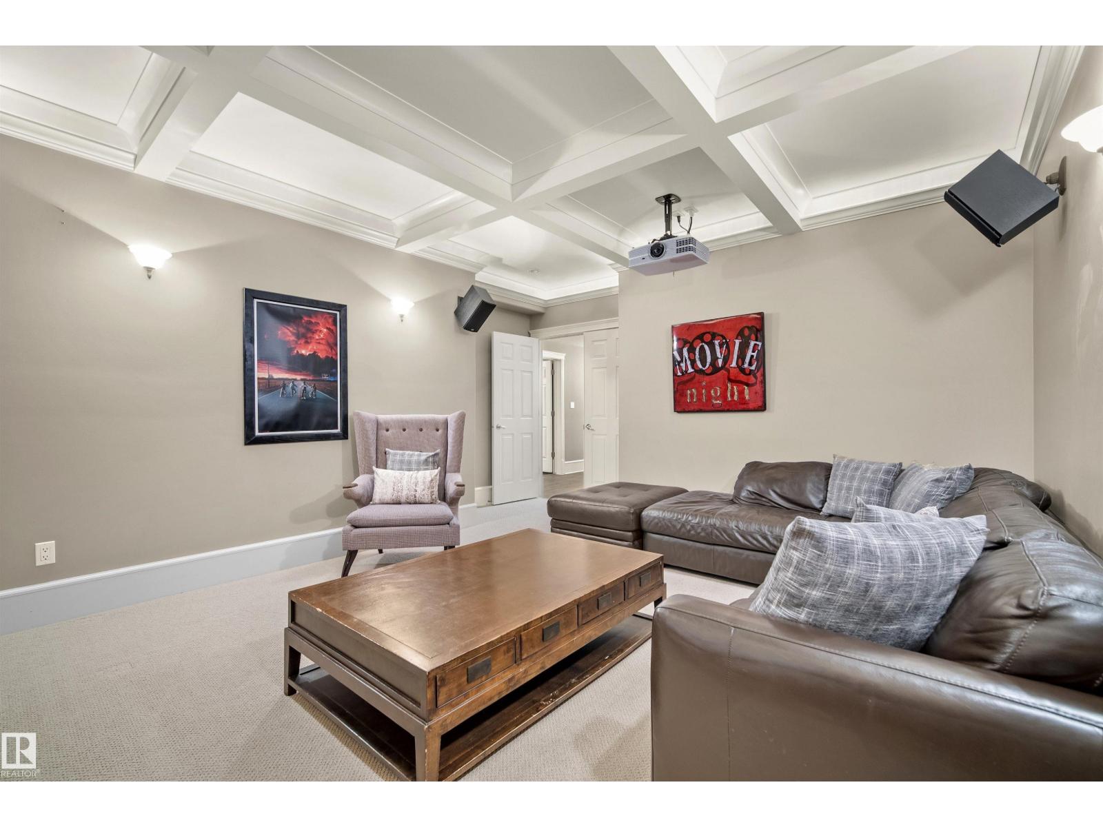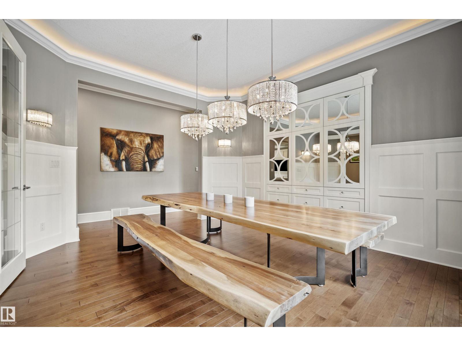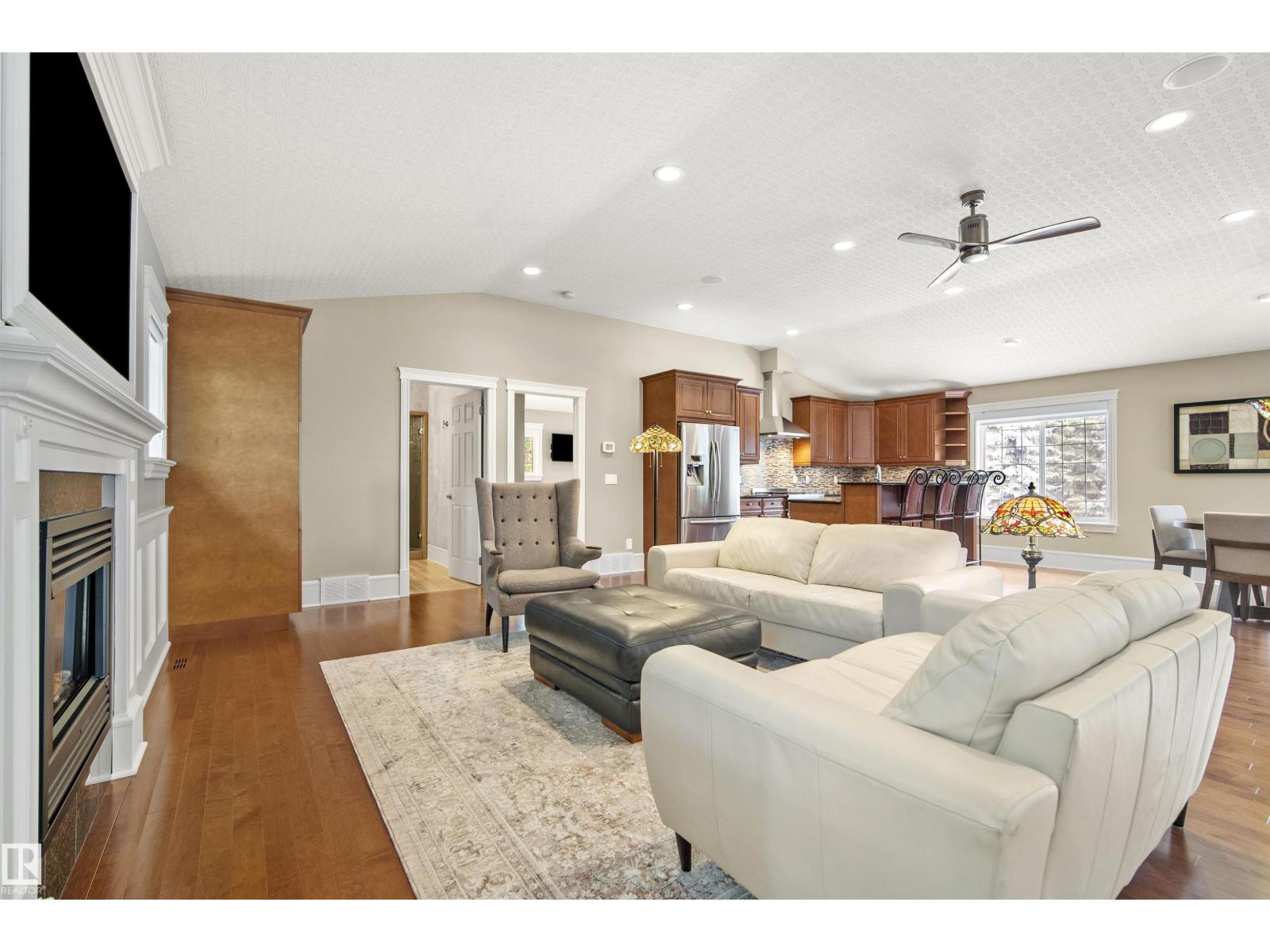 Welcome to this exceptional family estate where timeless design meets everyday luxury. Tucked away on 2 private acres in a quiet cul-de-sac, this home is a short walk to SWP Natural Area & Deermound Dog Park (via neighbourhood pathway). Offering 5860+ sf of beautifully finished living space across 3 levels, this home blends elegance & functionality. The upper level features 4 generous bedrooms, each with its own ensuite. The main floor impresses with two wood-burning fireplaces and a chef-inspired kitchen. The walkout basement is built for entertaining with a full bar, rec room, theatre, & gym. There is a complementary 1400+ sf detached carriage suite. Thoughtful extras include AC, in-floor heat, laundry chute, central vac, built-in speakers, cold storage, gas BBQ hookups, RV parking (30-amp), aggregate driveway, epoxy garage floors, dog wash, dog run, & playhouse. 2 triple garages (5 vehicles + workshop). City water. Just minutes to SWP and EDM, this is refined acreage living in Waterton Estates. (id:63190)