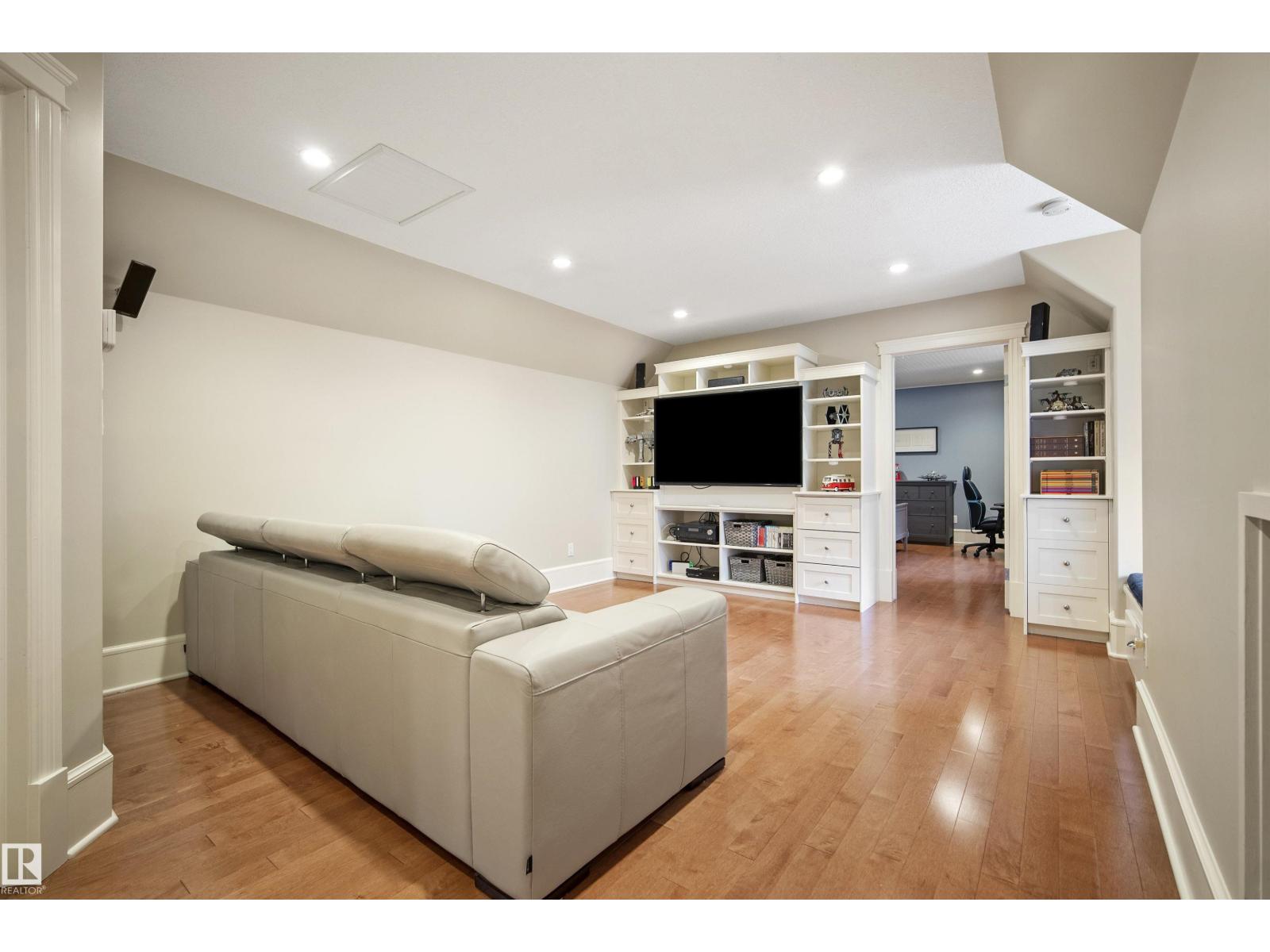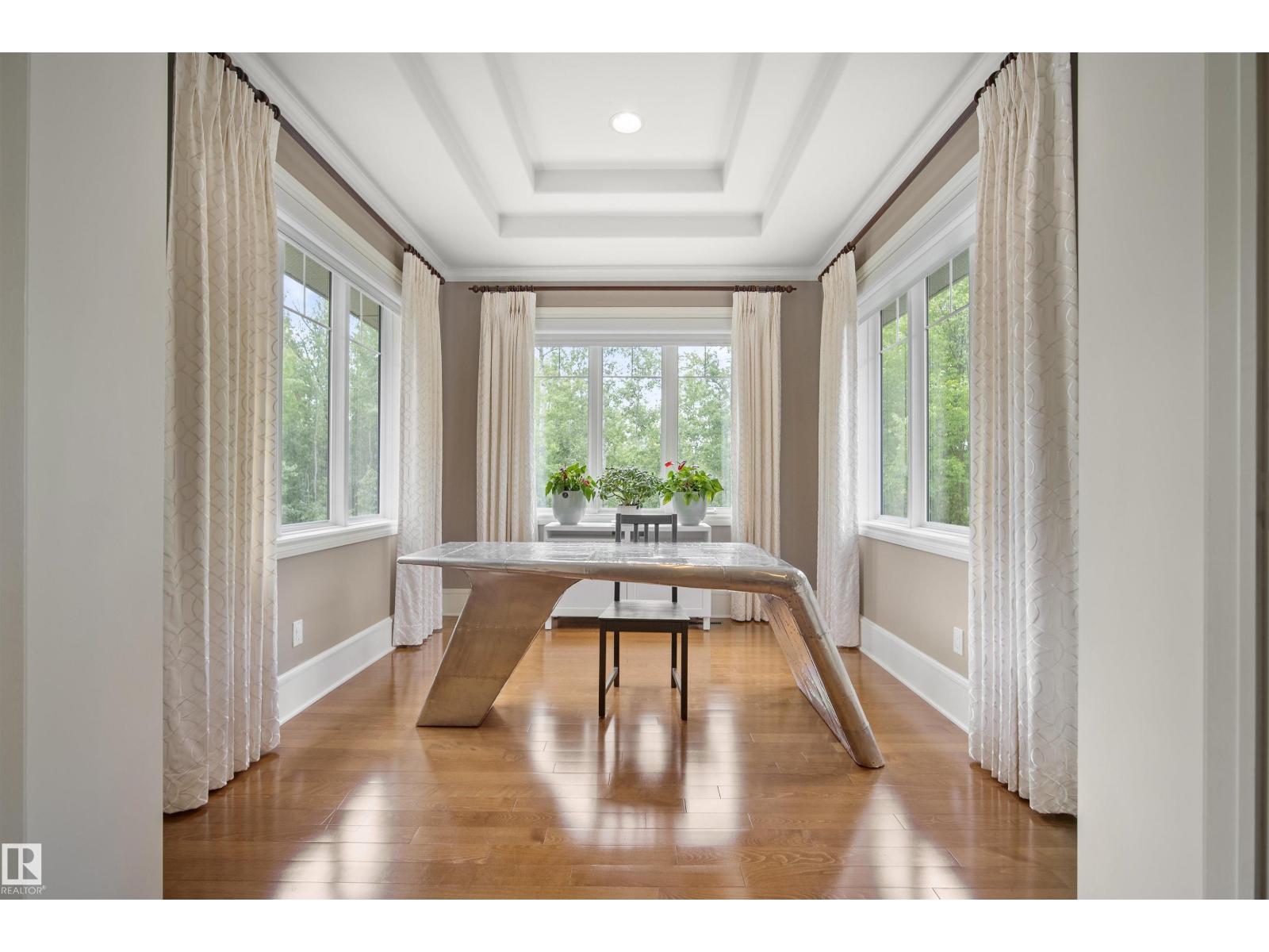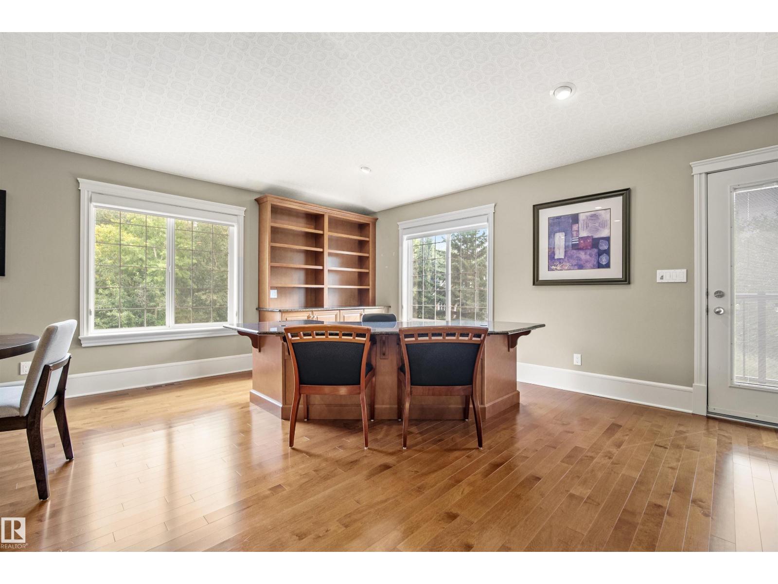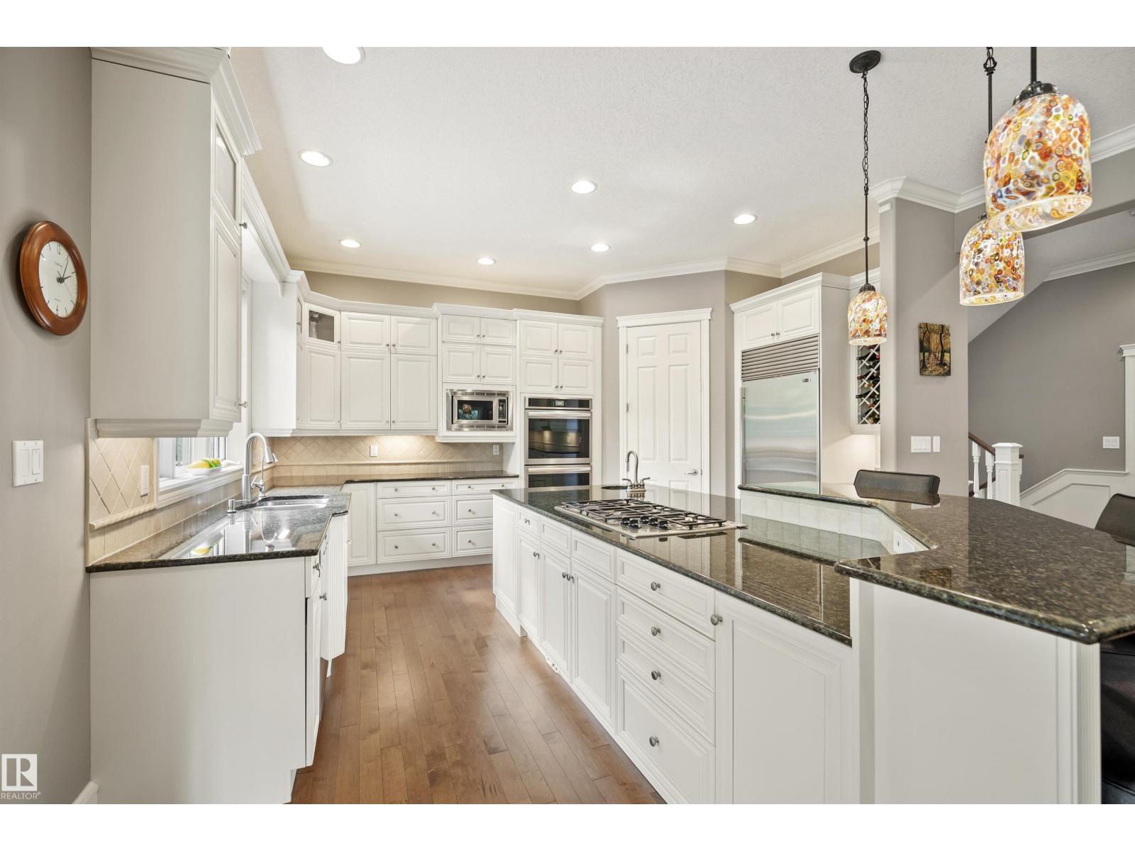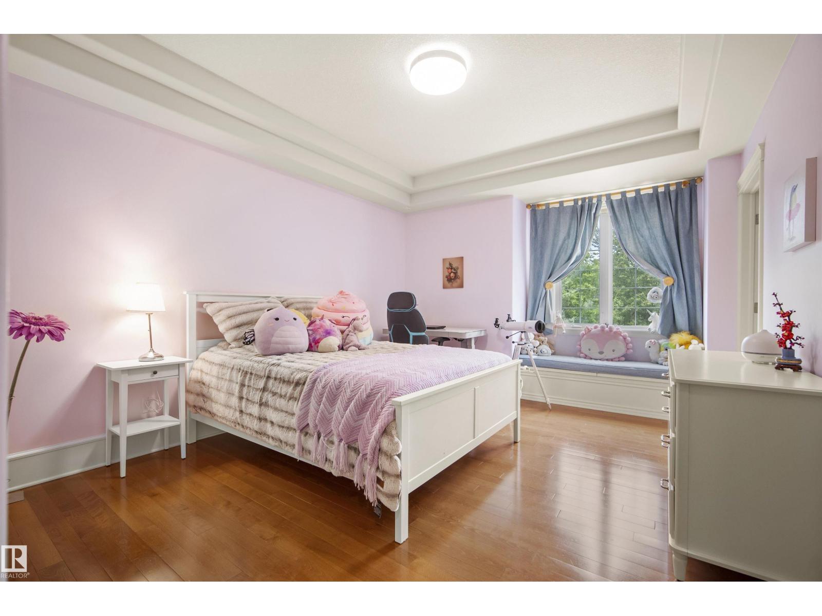 Welcome to this exceptional family estate where timeless design meets everyday luxury. Tucked away on 2 private acres in a quiet cul-de-sac, this home is a short walk to SWP Natural Area & Deermound Dog Park (via neighbourhood pathway). Offering 5860+ sf of beautifully finished living space across 3 levels, this home blends elegance & functionality. The upper level features 4 generous bedrooms, each with its own ensuite. The main floor impresses with two wood-burning fireplaces and a chef-inspired kitchen. The walkout basement is built for entertaining with a full bar, rec room, theatre, & gym. There is a complementary 1400+ sf detached carriage suite. Thoughtful extras include AC, in-floor heat, laundry chute, central vac, built-in speakers, cold storage, gas BBQ hookups, RV parking (30-amp), aggregate driveway, epoxy garage floors, dog wash, dog run, & playhouse. 2 triple garages (5 vehicles + workshop). City water. Just minutes to SWP and EDM, this is refined acreage living in Waterton Estates. (id:63190)