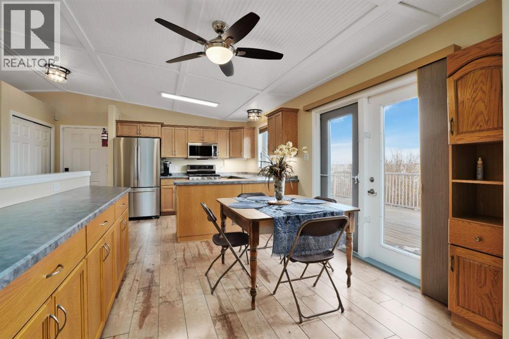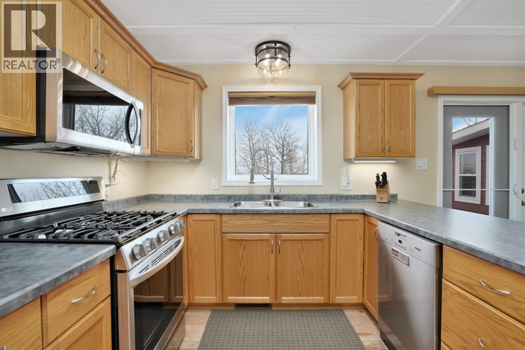 This beautifully designed 4-bedroom, 3-bathroom walkout bungalow offers the perfect balance of privacy, comfort, and lake-focused living. With over 2,000 sq ft of finished living space, the home is well suited for year-round use or as a seasonal retreat to enjoy in every season. The open-concept main floor is bright and inviting, featuring a modern kitchen with updated appliances including a gas stove, and seamless flow into the dining and living areas. The spacious primary bedroom includes a private 3-piece ensuite, while a second bedroom, full bathroom with jetted tub, and main floor laundry add everyday convenience. A standout feature of the home is the 3-season room added in 2017, offering a comfortable space to relax or entertain while staying protected from the elements. From here, step out onto the large deck ideal for outdoor dining, complete with a natural gas BBQ hookup and peaceful views of the surrounding landscape. The fully finished walkout basement completed in 2014 provides excellent guest accommodation with two additional bedrooms, a 3-piece bathroom, and a spacious family room with patio doors leading to a lower outdoor living area. In-floor heating, recessed lighting, and durable epoxy flooring enhance both comfort and durability on this level. Additional highlights include central air conditioning, a double heated garage, and a 6,500-watt Generac generator for added peace of mind. Ideally located just steps from the water and across from the village centre, residents enjoy easy access to the playground, snack shack, basketball, tennis and pickleball courts, and the community hall. The marina and boat launch are only minutes away, making lake access simple and convenient year-round. The property is approximately 20 minutes from Stettler, one hour from Red Deer, and two hours from Calgary or Edmonton. With quick possession available, this is a turnkey opportunity to enjoy everything Buffalo Lake has to offer, from boating and swimming to fishing an d winter recreation. Whether you’re searching for a full-time residence, a family getaway, or a retirement retreat, this home delivers a relaxed lake lifestyle in a well-established community. (id:63190)