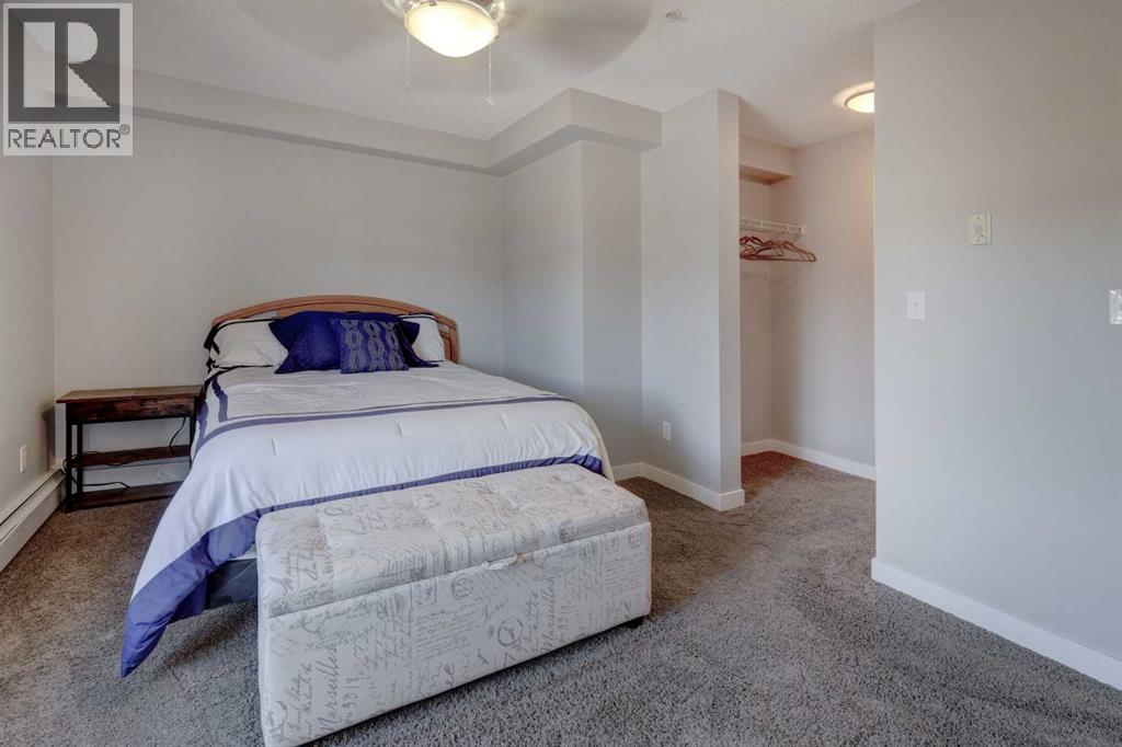 Gorgeous 3rd floor corner unit with 2 bedrooms & 2 full bathrooms! Conveniently located around the corner from the elevator for quick access in & out. Enter the spacious tiled foyer with plenty of room for a bench & offering a nice sized coat closet. You will be impressed with the open concept and amount of natural light that floods the apartment. Featuring modern grey carpet with grey paint & white baseboards. To the right side is a great space for a desk, tech nook or bookshelf. The living room boasts two large windows and the patio doors are off to the side. A large space for a dining table or flexible for various sized furniture. Note: Seller is offering Buyer's Choice of including Either the Kitchen Table set OR Couch included with purchase!!The kitchen showcases a breakfast bar with granite that flows through all the kitchen countertops. Double sinks with a pull-out tap are a must! Plenty of cabinets and check out the pull-outs smartly located between appliances. Apartment comes complete with stainless steel appliances package including a Newer fridge with bottom freezer-that includes ice maker which is ideal. Plus the upgraded stove is also only three years old and offers numerous options with the touch-screen menu! A highly desirable pantry is to the right of the stove. Head to the master suite which is a fabulous size, large enough for a California king sized bed and offers a west window for afternoon sunlight. There is a handy walk-through closet for all your things. The master ensuite is sure to please with a coveted walk-in shower with built in seat. A good size and very desirable! Granite countertop & cabinet with cupboard below are ideal. On the opposite side of the main living space find the main bath which offers an oversized tub/shower combo and the granite countertops & matching cabinetry are continued here. The second bedroom is a lovely size that easily fits a queen bed & includes a good sized closet & offers a south window for more natural ligh t. There is a portable air conditioner offered for year round enjoyment of this unit! The balcony is perfect for those who love the sun. Enjoy both the south & west afternoon sun from here. In-suite laundry is a must & is located behind the closet doors close to the foyer. The floor is tiled inside & with the stacked Front Load Washer & Dryer you will find plenty of storage space to the left side. On the third floor you can feel safe, yet be entertained by living in a vibrant area nestled between various shops & amenities that are only blocks away. Apartment comes with a titled underground parking stall perfectly positioned close to the main garage entrance-making coming and going a breeze. A long enough parking stall that it's possible to store some things in front of most vehicle sizes. Walking distance to grocery stores, pharmacies, restaurants & more. There are buses that run up & down 8th St for another option. Quick drive to major intersections as well. Step inside this unit-this one will impress!! (id:63190)
