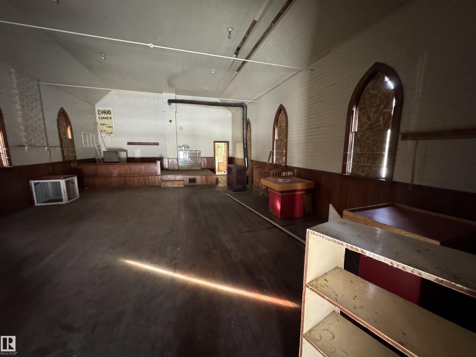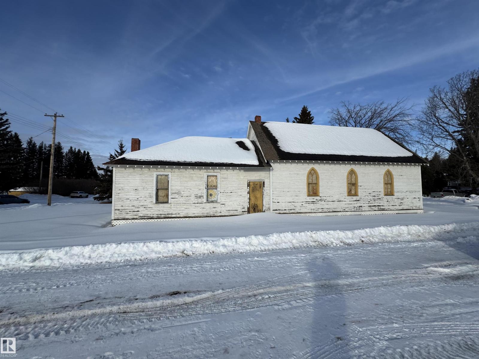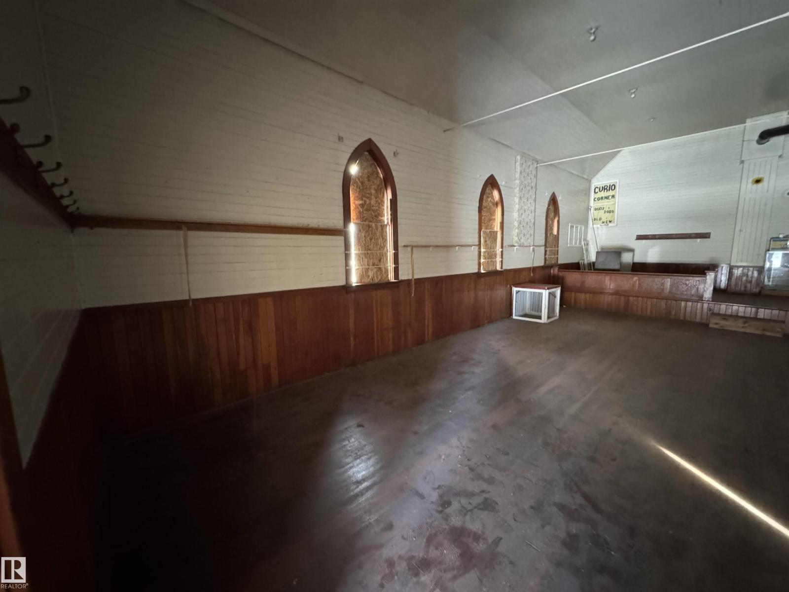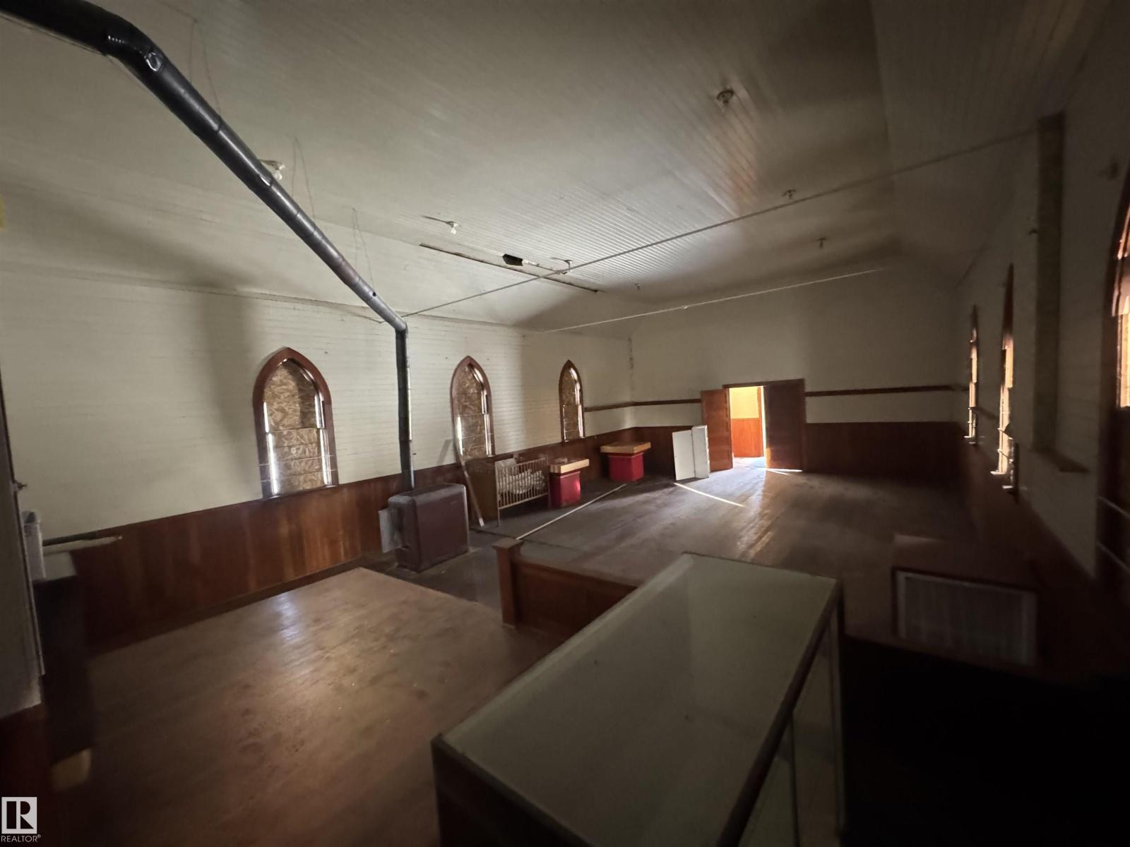 Built in 1929 originally as a school for girls, this building was later converted into a church in 1980 which also housed the Pastor with living quarters off the west side of the building. The church is located on a HUGE commercially zoned corner lot (used to be 2 lots, now 1 title) right on main street with proximity to the Village Office and the School. This is a great opportunity to build a home or business on a massive urban lot, OR renovate, use, and preserve this historic beauty! Plenty of room to build a garage or shop. A video tour of the interior is available. (id:63190)