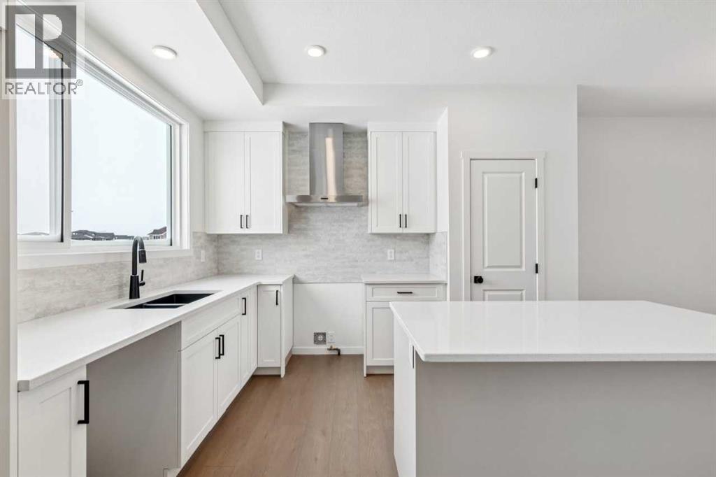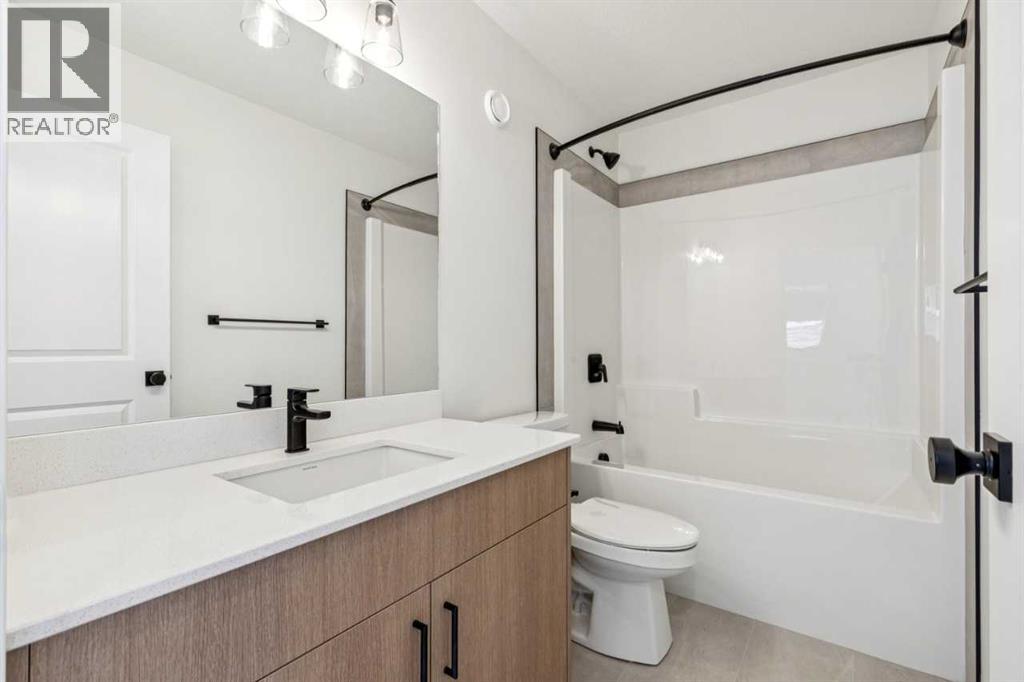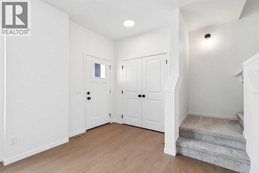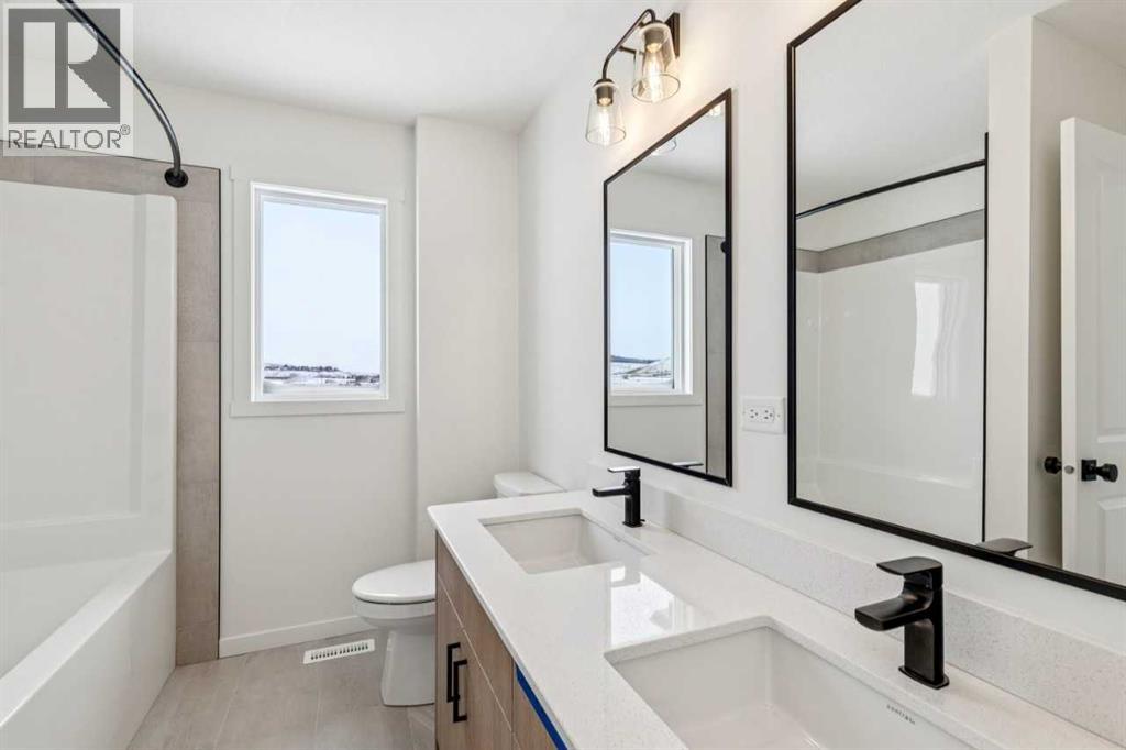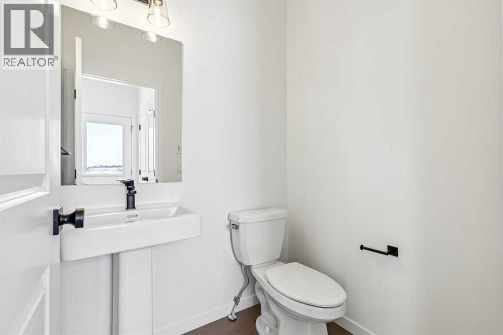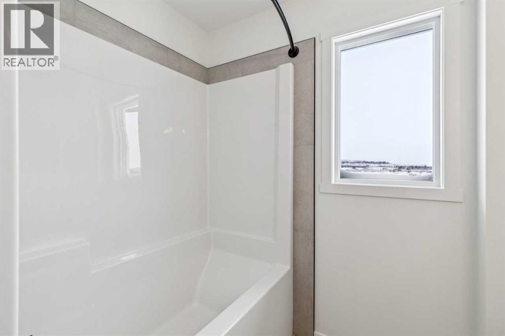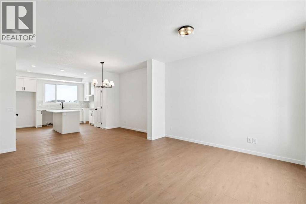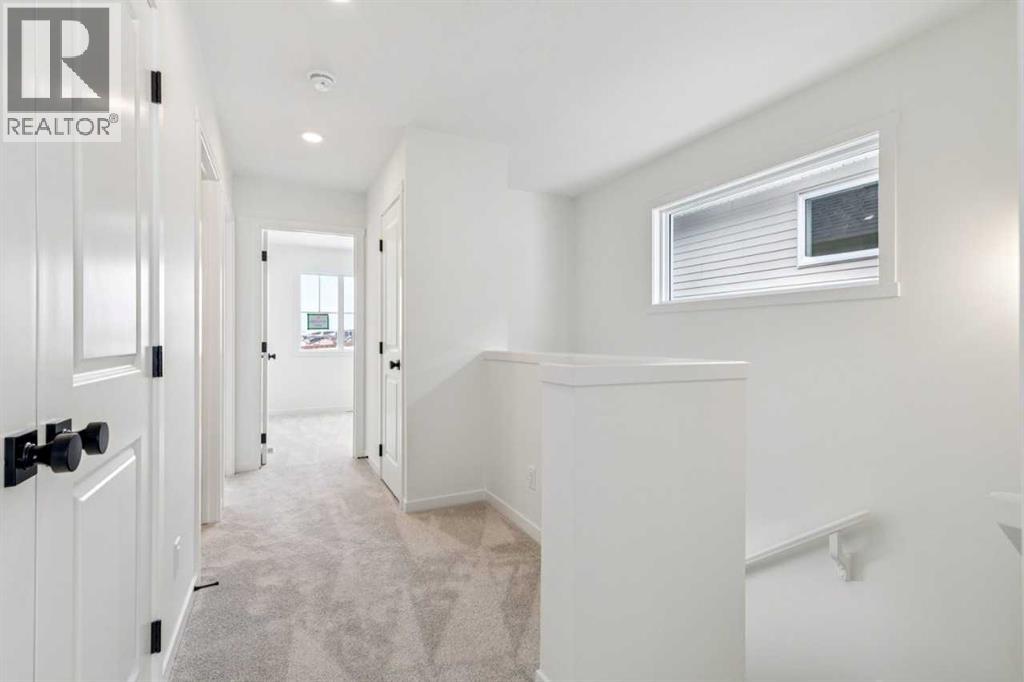 This duplex built by Daytona Homes features an open concept main floor with plenty of natural light. A rear kitchen with ample storage, along with a central island make this ideal for entertaining and home cooking. Upstairs are 3 nice sized bedrooms including a primary with ensuite, double vanity, and a walk in closet. A laundry closet with shelving completes the upper floor for added convenience. The basement is unfinished, but a side entry, 9' foundation, and bathroom rough in are all included for future needs. Plenty of backyard space, and a concrete parking pad backing onto the rear lane complete the back yard. Photos are representative. (id:63190)