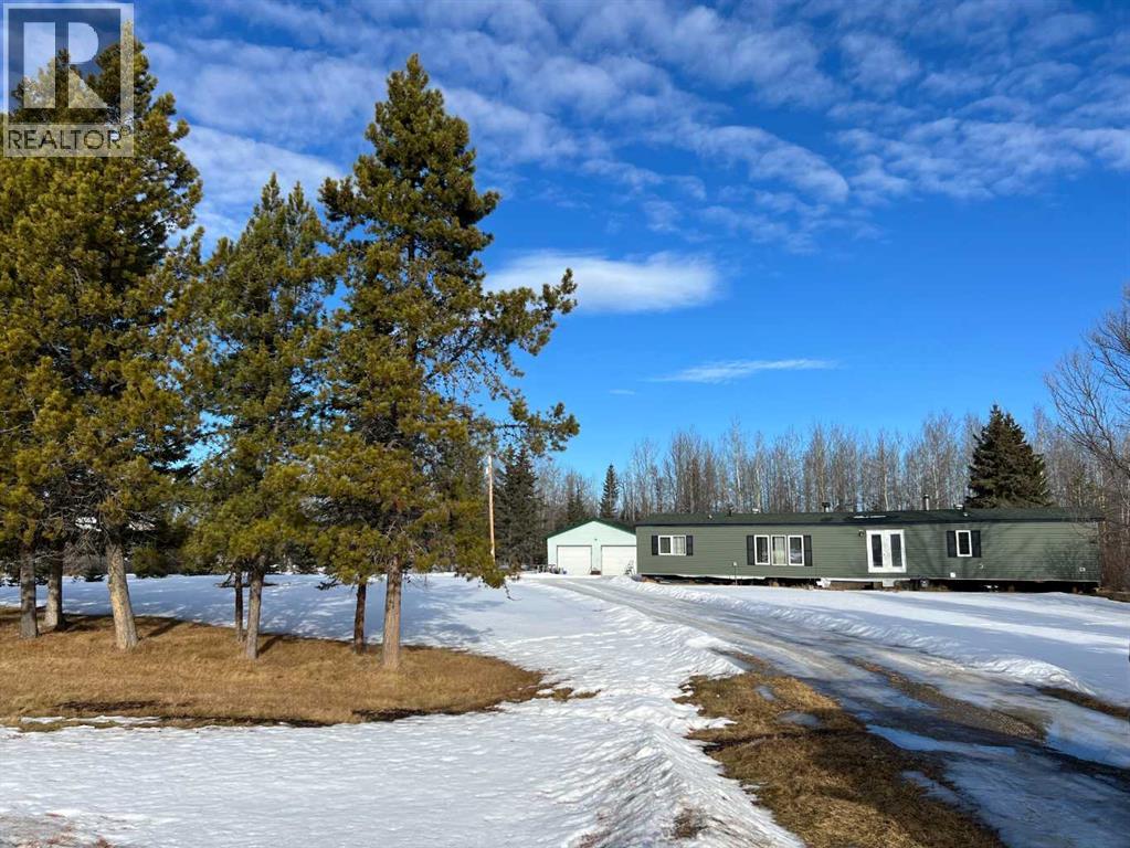 Country Living close to the Town. This 3-bedroom, 2-bathroom modular home is located on 2.99 acres in Pinedale Estates, approximately 15 minutes east of Edson. The home has seen updates to shingles, windows, and the hot water tank. The property includes a 27 ft x 27 ft heated double-detached garage with a concrete floor, two overhead doors and attached lean two for additional storage. The yard is nicely landscaped with lots of room for entertaining and the kids to play. "Property is being SOLD "as is/where is" with no Warrenties or Representations! (id:63190)