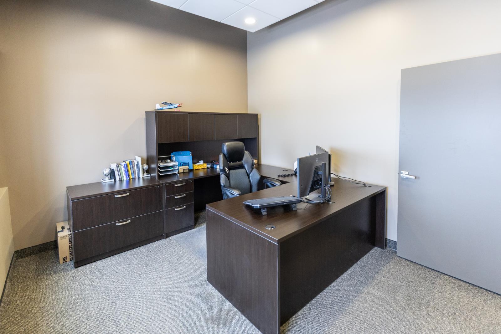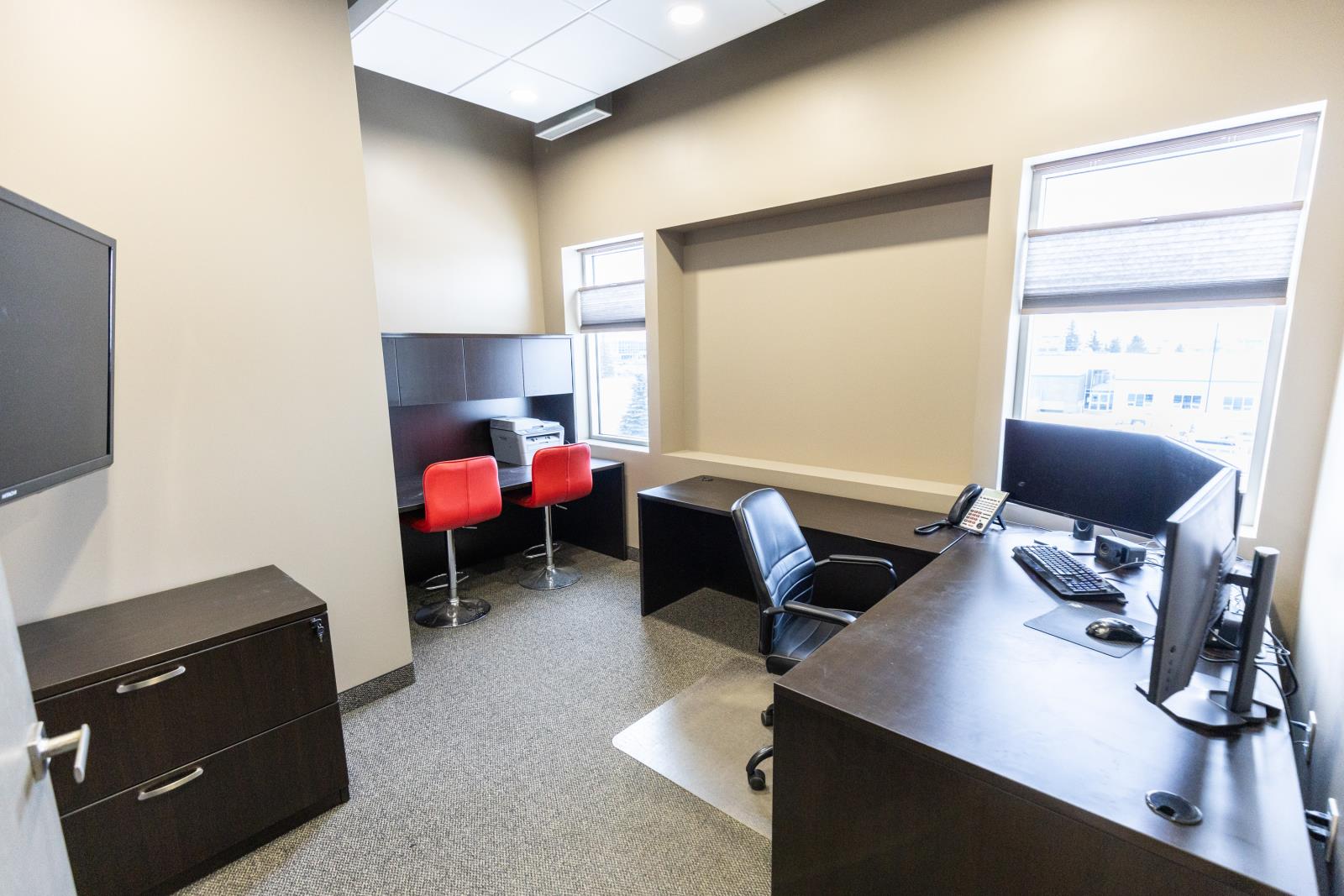 This versatile industrial building (zoned IM) offers an excellent combination of functional shop space and well-sized office areas, making it ideal for a variety of commercial or light industrial uses. The warehouse/shop measures 50’ x 30’ and features a durable, fully epoxy-finished floor and 2pc bathroom. Ceiling heights reach approximately 32’ at the peak and 20’ - 24’ at the low end, providing outstanding vertical clearance for equipment, racking, or storage. A 16’ x 14’ overhead door enhances accessibility, while a well-designed tool crib and mezzanine add valuable storage efficiency. Complementing the warehouse is a thoughtfully designed office component with both main-floor and mezzanine offices, each measuring 30’ x 30’. The main level includes two offices, an attractive reception area with built-in desk, granite countertops, filing and storage, plus a two-piece bath and kitchenette. The upper level features two additional offices, an executive boardroom, staff kitchen, two-piece bath, and eating area. A fenced rear yard measuring 30’ x 130’ is available for storage at $588 per month if required. Overall, this property presents an excellent opportunity for businesses seeking a clean, functional, and well-maintained industrial space with strong ceiling height and flexible office integration. (id:63190)