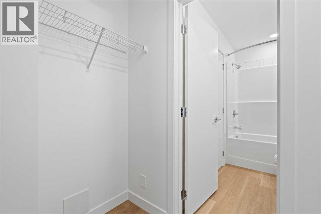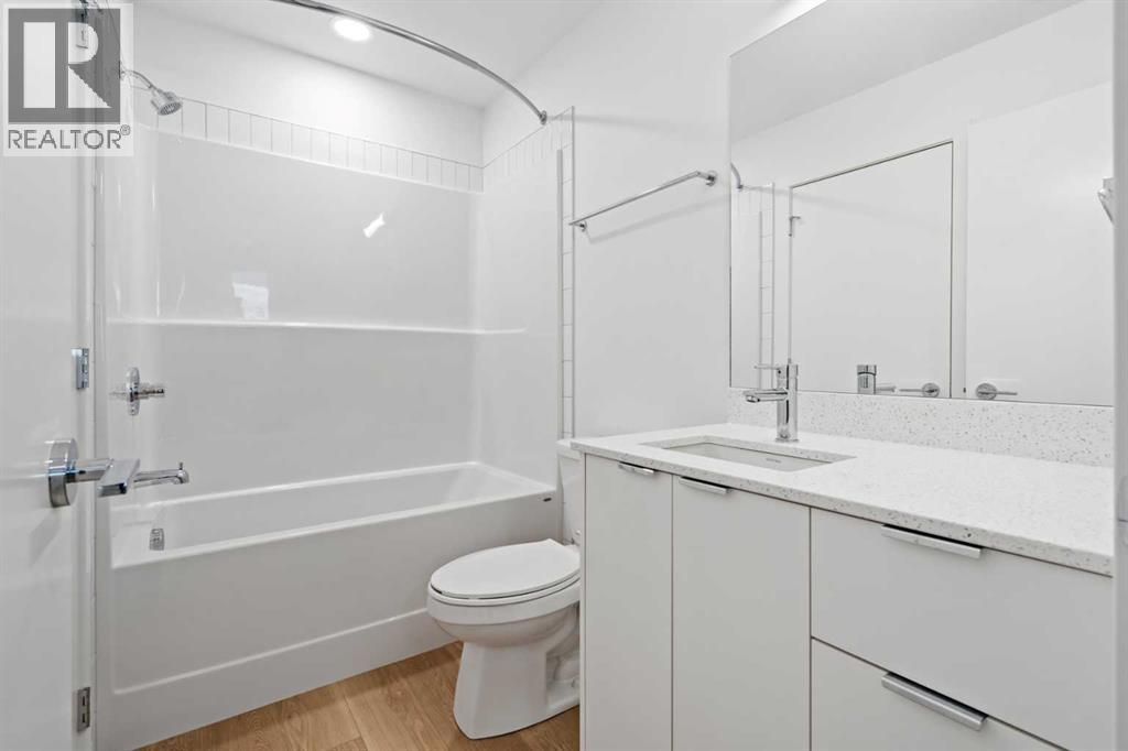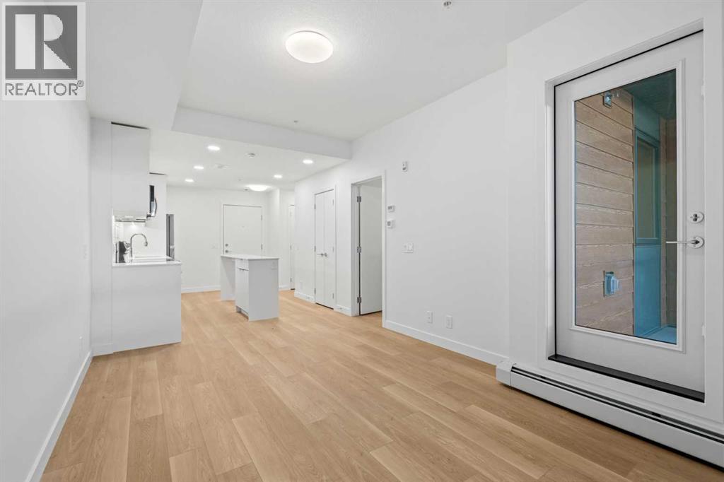 BRAND NEW | 1 BED / 1 BATH / 502 SQ FT | MODERN FINISHES | LOW CONDO FEES | TITLED PARKING – Welcome to East Hills by Minto Communities, an award-winning Canadian builder with over 70 years of experience. This condo complex is located in the growing community of Belvedere, just steps from East Hills Shopping Centre. Designed to foster a true sense of community, East Hills features pedestrian pathways, nearby greenspace, and a walkable, neighbour-friendly layout. Enjoy unbeatable convenience with Costco, Walmart, banks, restaurants, and everyday essentials right across the street, along with quick access to major roadways and public transit for an easy commute downtown or around the city.This brand-new 1 bedroom, 1 bathroom condo offers a smart and efficient layout with 560 sq ft of well-designed living space and modern finishes throughout. As you enter the home, the kitchen is located at the front on the left and features a functional island, stainless steel appliances, ample cabinetry, and convenient storage. The open-concept layout flows seamlessly toward the back of the home into the living area, where you’ll find access to a private balcony—perfect for relaxing or enjoying warm summer evenings.The bedroom is located just off the living room and offers a comfortable retreat, complete with a walk-through closet that leads directly into the bathroom. The bathroom is thoughtfully designed with dual access from both the primary bedroom and the foyer, adding convenience for guests. In-suite laundry is also located here, maximizing functionality without sacrificing space.Additional highlights include titled parking, a pet-friendly building (with restrictions), access to an on-site fitness centre located in Building 3000, and a rooftop patio in Building 1000—both available to all residents—enhancing the lifestyle appeal of this low-maintenance home. With modern design, low condo fees, and an exceptional location, this is an excellent opportunity for first-time buyers , investors, or those looking to downsize in one of southeast Calgary’s most convenient communities. Contact Minto’s sales staff and book your visit today! (id:63190)