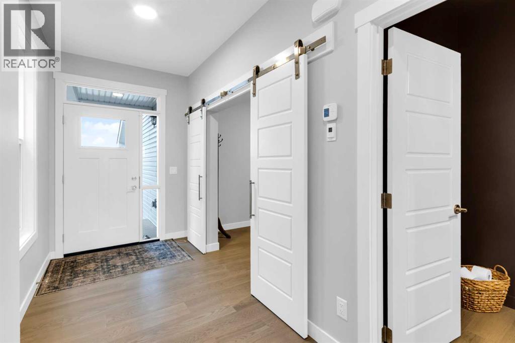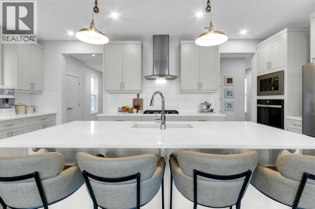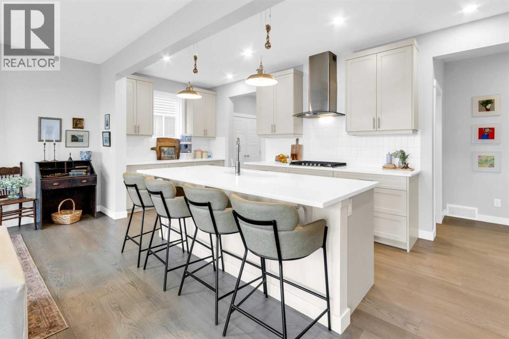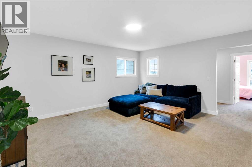 Located in the prestigious community of Rivercrest, this beautifully designed home offers nearly 3,500 sqft. of finished living space, thoughtfully crafted for both comfort and elevated everyday living. Flooded with natural light and positioned to capture stunning views of downtown Cochrane and mountain views to the west. This home features 3 spacious bedrooms on the upper floor plus a main-floor flex room, ideal as a private home office or 4th bedroom with the added versatility of a Murphy bed, along with a 1-bedroom suite on the lower level. The main level welcomes you with 9 ft ceilings, a spacious foyer and a seamless open-concept layout anchored by expansive windows and a large sliding patio door. The kitchen is both stylish and functional, featuring an expansive 8’ island, ample counter space, and built-in appliances, perfect for entertaining and everyday living. The living and dining areas are warmed by a cozy fireplace, creating an inviting atmosphere for gatherings and quiet evenings alike. The fully developed lower-level one-bedroom walk-out suite features 9 ft ceilings, a kitchenette, large windows, a bright open feel, beautiful ensuite bathroom, ample storage and a separate entrance, offering exceptional flexibility for extended family, guests, or as extra rental income. Upstairs, a centrally located bonus room provides the ideal space for family movie nights or a children’s play area. The primary retreat offers a serene escape, complete with a spa-inspired ensuite featuring double sinks, a tiled shower, and a soaker tub. For added convenience, the laundry room connects directly to the primary walk-in closet. Two additional bedrooms are thoughtfully positioned alongside a 5-piece bathroom with a separate sink area and a charming reading nook. Step outside to enjoy the evening sun and panoramic views of the town, surrounding hills, and mountain range from the oversized back deck. Set on a quiet street in a boutique community known for its scenic s urroundings and future school site, Rivercrest offers a strong sense of neighbourhood and exceptional access to downtown Cochrane, Spray Lakes Recreation Centre, and an easy commute to Calgary. (id:63190)