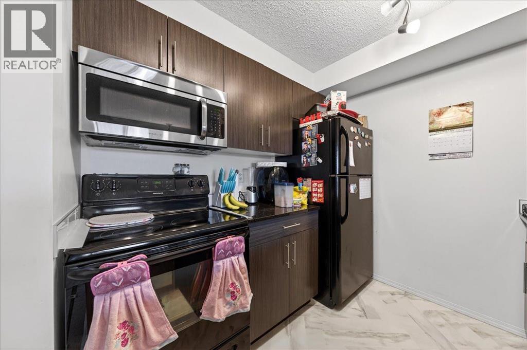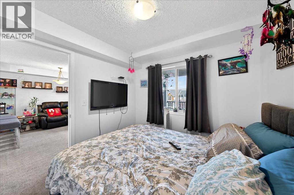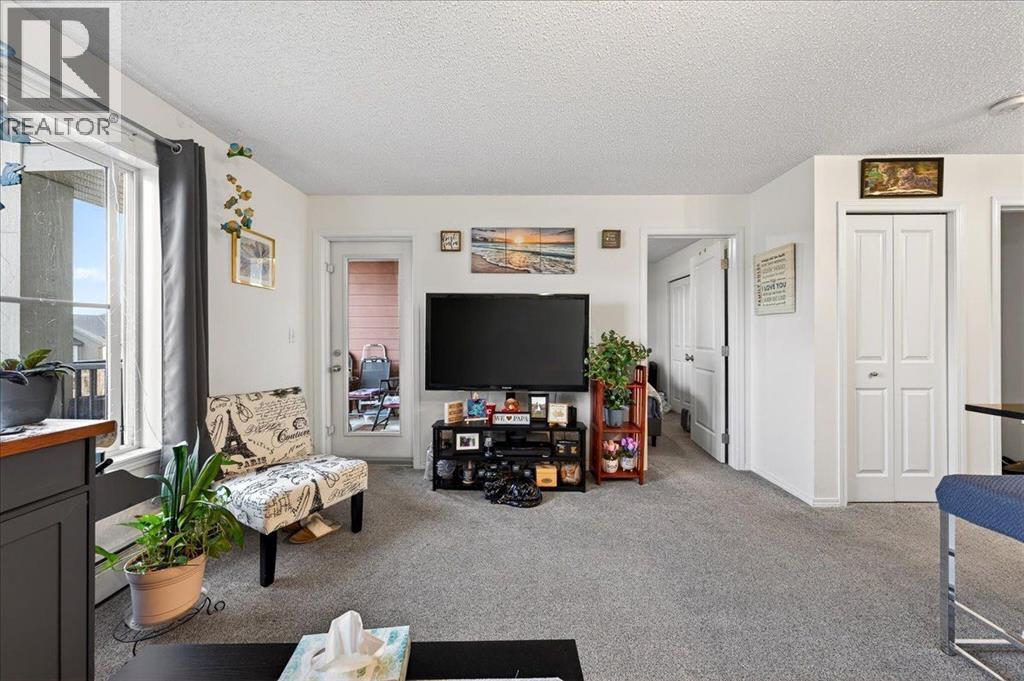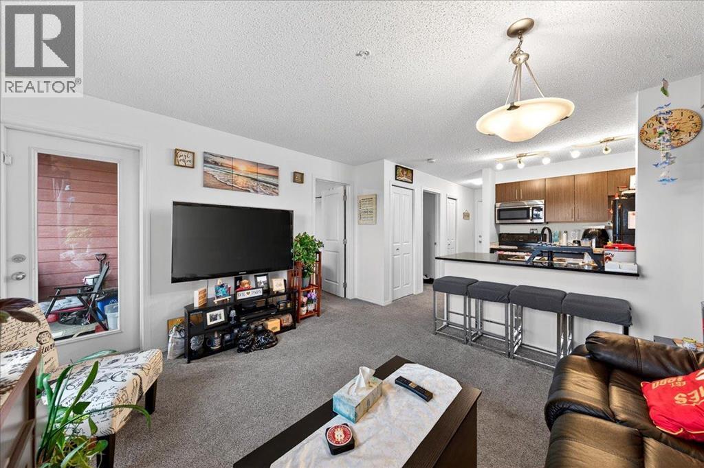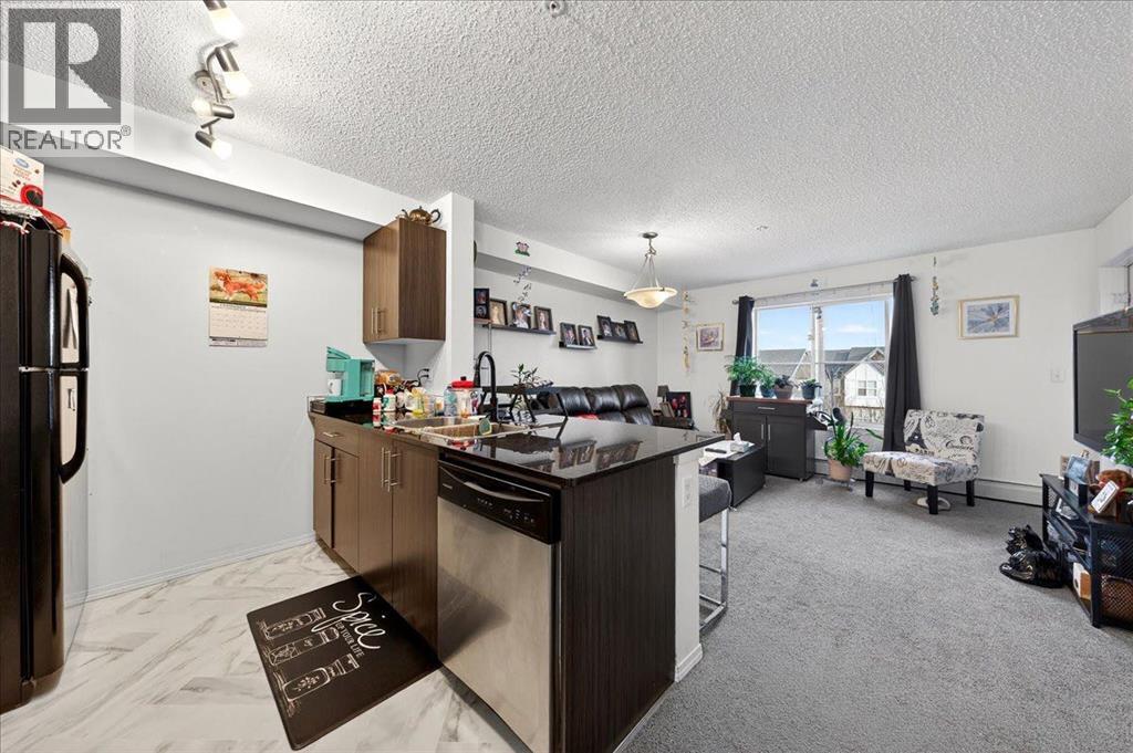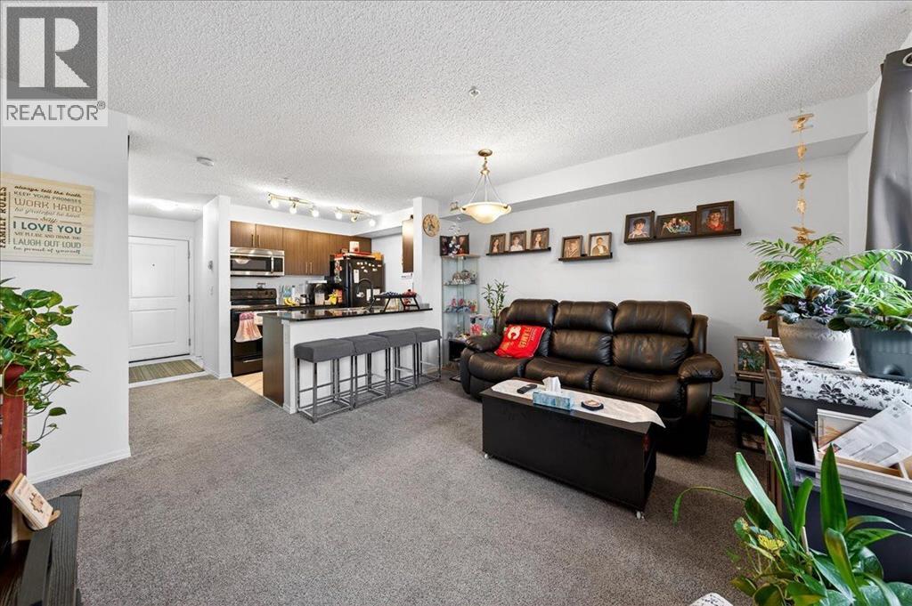 Welcome to this beautiful third-floor condo offering a perfect blend of comfort, accessibility, and modern design. This 2-bedroom, 1-bathroom home features a bright, functional layout with a warm, contemporary feel that is truly move-in ready. Enjoy added convenience with the elevator located just steps from the unit, providing quick and easy access throughout the building.The open-concept design allows the kitchen to flow seamlessly into the dining and living areas—ideal for everyday living, entertaining, or working from home. Both bedrooms are generously sized and versatile, easily accommodating a home office, guest room, or shared living arrangement. The well-appointed 4-piece bathroom is clean, modern, and thoughtfully designed for everyday comfort.Step out onto the private balcony and enjoy beautiful third-floor views, the perfect spot for morning coffee or evening relaxation. A parking stall conveniently located directly in front of the unit adds year-round ease and security.Located in the desirable community of Legacy, residents enjoy close proximity to parks, walking paths, schools, shopping, restaurants, and everyday amenities, along with quick access to major roadways for an easy commute. (id:63190)