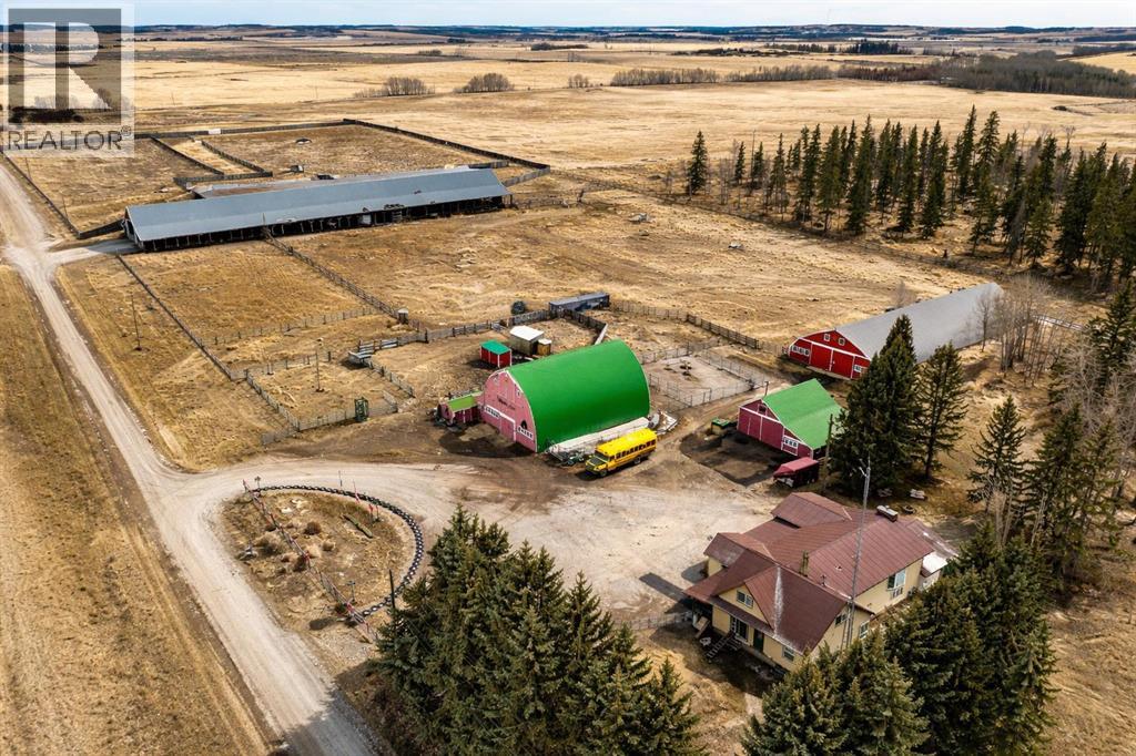 Equine Property / Dog Boarding Facility on 17.5 Acres. Set up and ready for horses and a dog boarding operation, this 17.5-acre Country Residential Hobby property offers a rare opportunity for rural living . The land is fully fenced and cross-fenced for rotational grazing using wood and panel fencing (no wire), with dedicted well to the barn and corrals, electric waterers making it highly functional for horses. The property includes a County of Ponoka approved 30-dog kennel permit (transferable to new owner with County approval) with indoor and outdoor runs already in place, offering excellent potential for a boarding, training, or breeding operation. Outbuildings are extensive and well suited for equine and kennel use, including a 40’ x 60’ barn with 10 box stalls, concrete floors, power, loft, chicken coop, 6 indoor dog kennels, and 8 outdoor dog runs with 8’ panel fencing. Additional buildings include a 50’ x 152’ drive-through Quonset with concrete floor, a shop/garage with concrete floor, power, loft and full-length lean-to with new concrete driveway (2025), and a 66’ x 310’ hay shed/loafing barn. The home offers over 2,600 sq. ft. with 5 bedrooms and has been extensively rebuilt and expanded from the original 1946 structure into a spacious country home. Features include cedar vaulted ceilings in the great room with wood-burning fireplace, office with built-in desk and cabinetry, butler’s pantry with laundry off the main kitchen, large dining area for 10–12, abundant storage, and a three-season sunroom off the great room. Basement access leads to the double attached garage and double carport. The established yard is well planned with excellent drainage, circular driveway, firepit area, and dawn-to-dusk yard lighting. Major updates include metal roofing on the house and barn, new windows (2021), two Lennox furnaces (2021), hot water tank (2021), furnace and duct cleaning (Aug 2025), and septic pumped Jan 2025. Centrally located approximately 40 minutes to R ed Deer, 20 minutes to Rimbey, Ponoka, or Lacombe, and 7 km to Crestomere, making it accessible while still offering privacy and rural lifestyle. A rare opportunity for horse owners, trainers, breeders, or anyone looking to run a dog boarding or kennel operation in rural Alberta (id:63190)