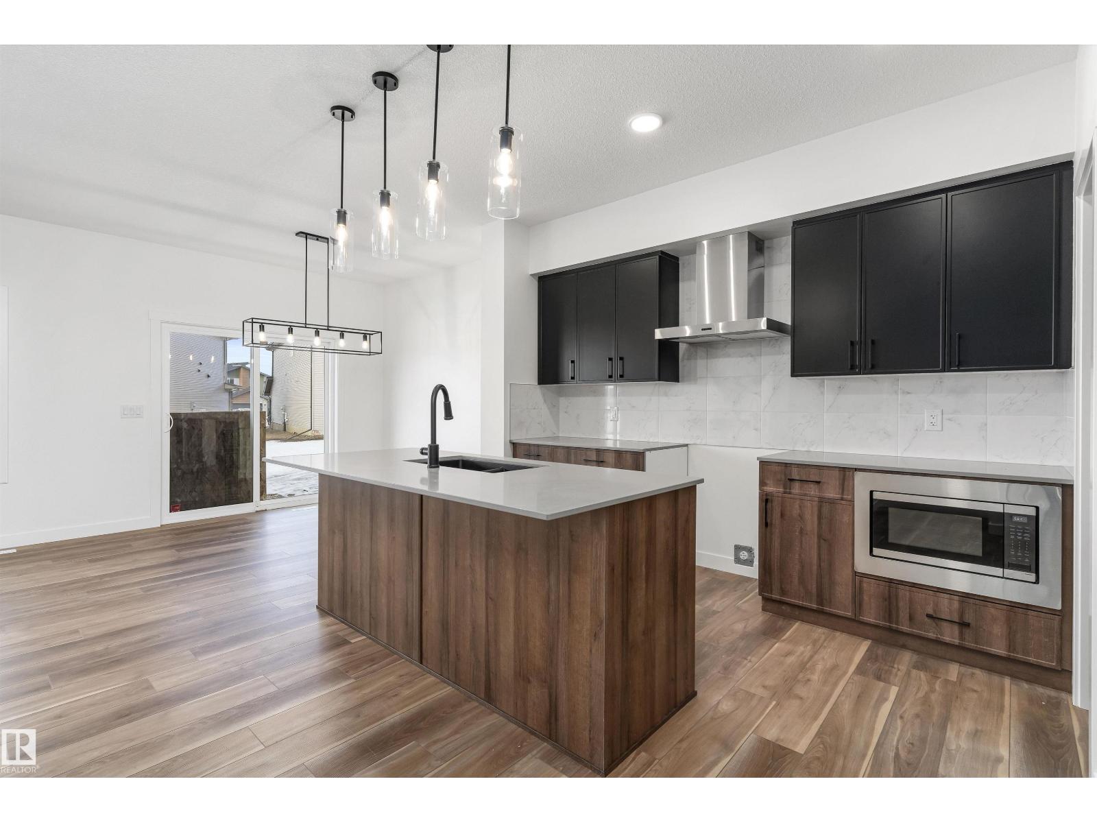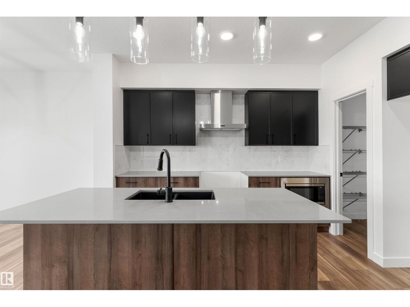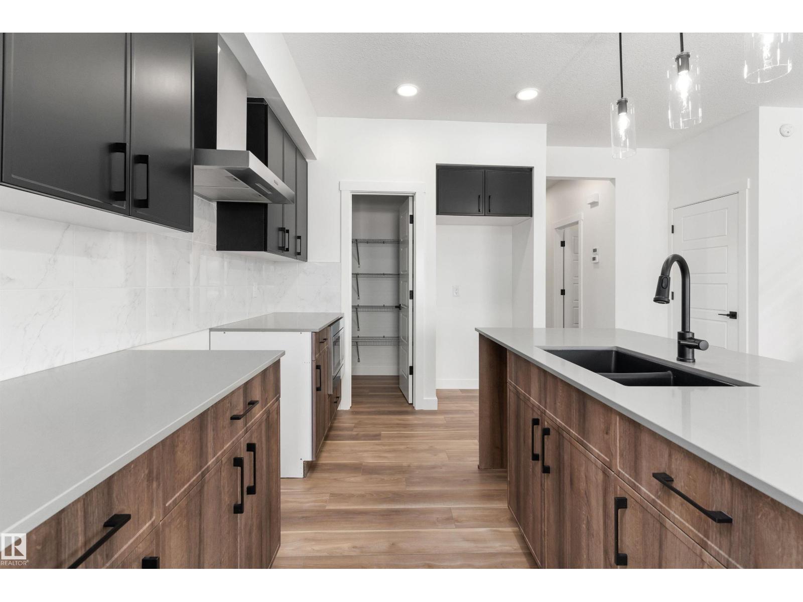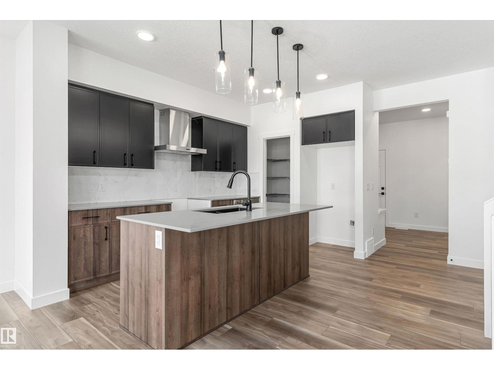 Built by Sterling Homes, this beautifully designed front-attached home in The Uplands at Riverview offers bright, modern living near trails, parks, and the river valley. Triple pane windows and 9’ ceilings create an airy main floor with a welcoming foyer, built-in bench, and walk-in closet for everyday organization. The open layout features a stylish kitchen with quartz countertops, a large island with seating, upgraded cabinetry, chimney hood fan, full-height tile backsplash, and a corner pantry. The great room feels warm with an electric fireplace and large windows, while a sliding patio door opens to the backyard. Upstairs, the primary suite includes two walk-in closets and a 4-piece ensuite with double sinks and a glass shower. A cozy loft, two bedrooms, full bath, and upper laundry complete the level. With luxury vinyl plank flooring, upgraded railings, side entrance, basement rough-ins, and an oversized double attached garage with floor drain, this home blends comfort and thoughtful design. (id:63190)