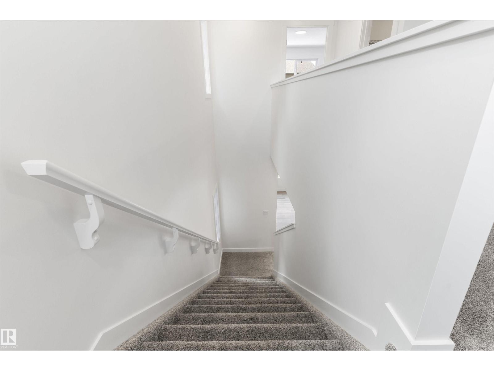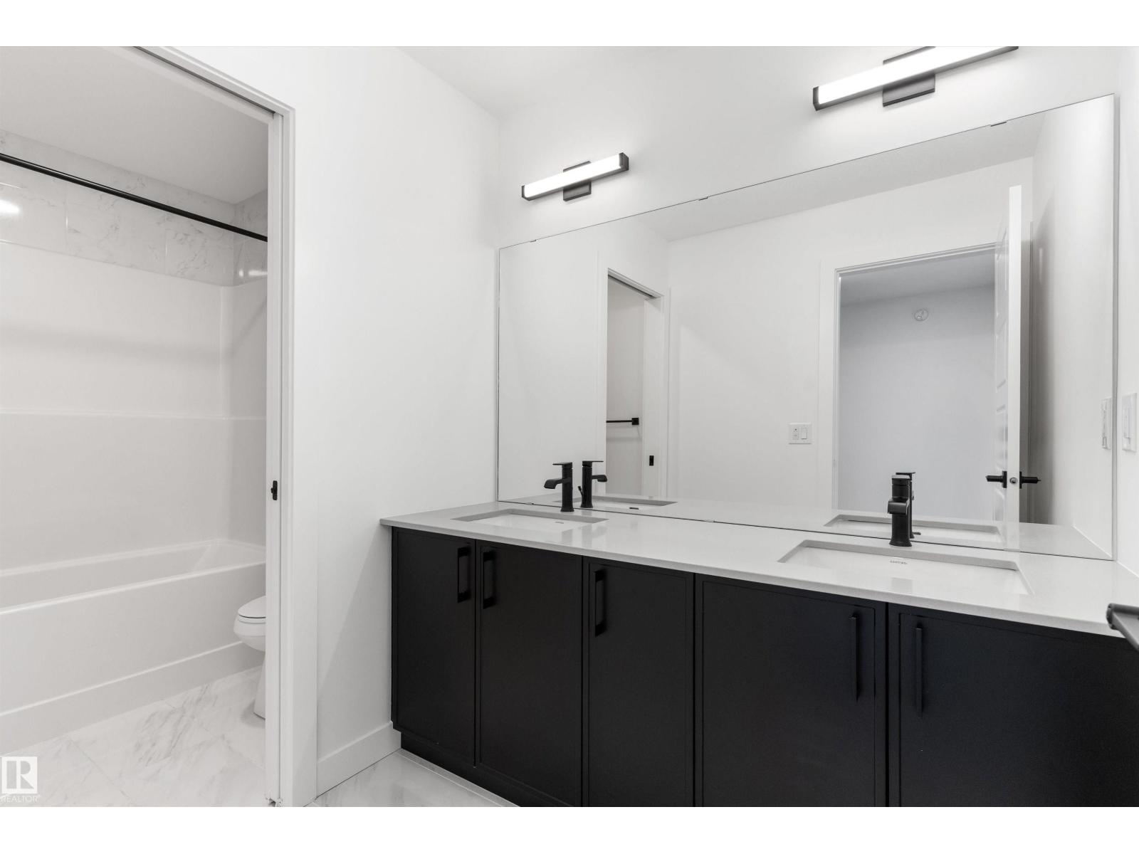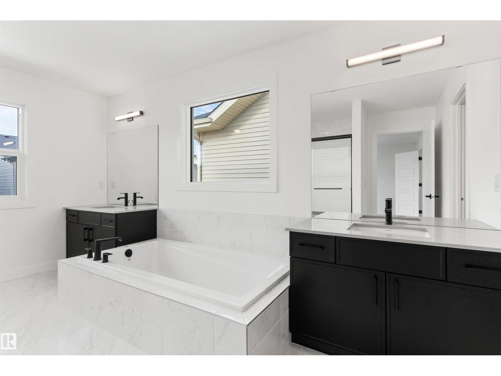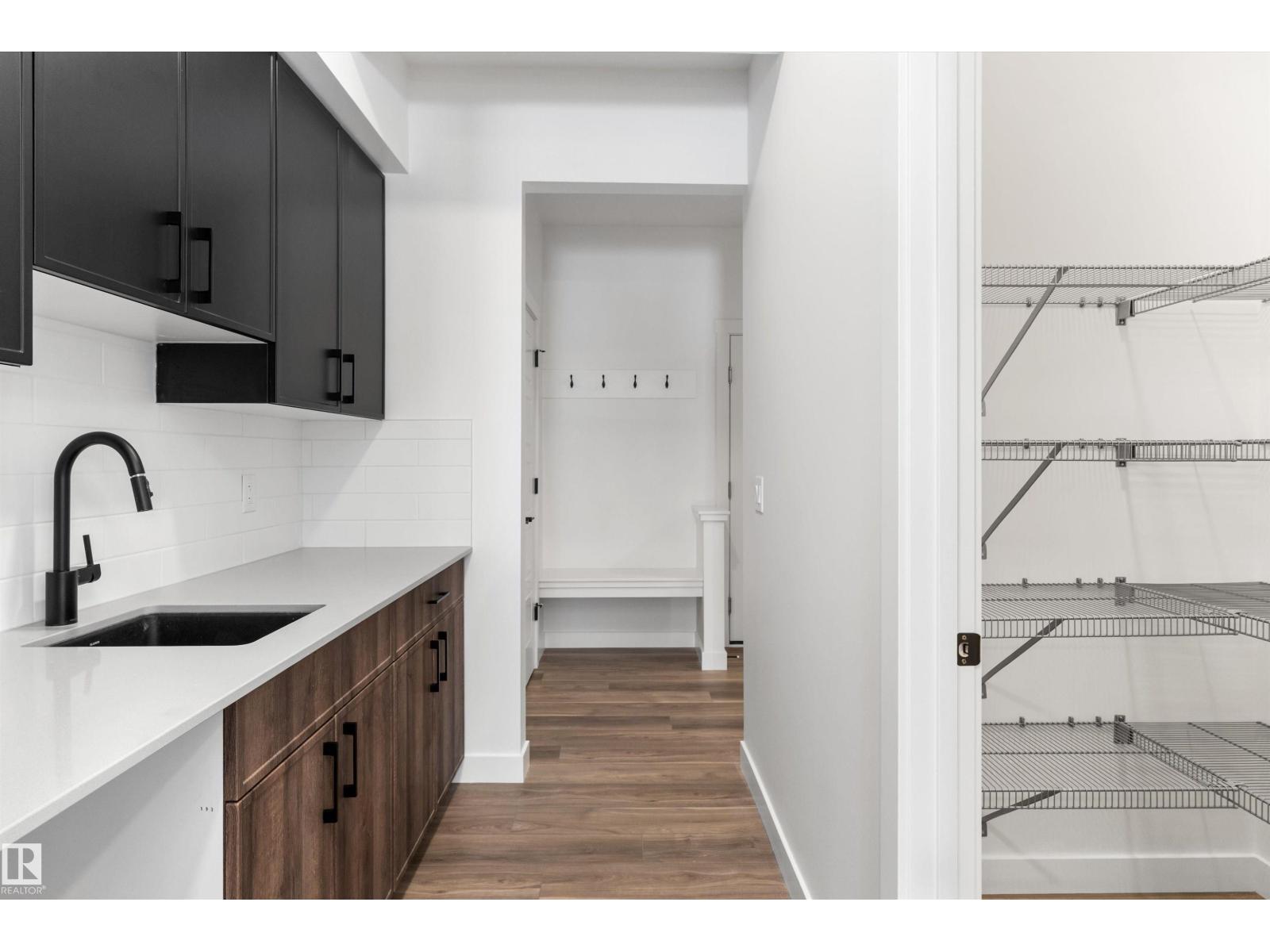 Built by Sterling Homes, this front-attached home in The Uplands at Riverview blends elevated style with family-focused design. Triple-pane windows and 9’ ceilings fill the main floor with natural light. A welcoming foyer leads to a spacious mudroom connecting to a walk-in butler’s pantry with prep sink and bar-fridge space. The chef-inspired kitchen offers quartz countertops, a large island with seating, custom cabinetry, chimney hood fan, built-in microwave, and full-height tile backsplash. The great room features a tiled fireplace and patio door with backyard views. Upstairs, the primary suite includes a 5-piece ensuite with glass shower, double sinks, tiled tub surround, and walk-in closet with direct laundry access. A bright bonus room, double-sink bath, and two bedrooms with walk-in closets complete the level. Finished with luxury vinyl plank flooring, upgraded black fixtures, side entrance, and basement rough-ins, this home delivers style and function in a thriving west-end community. (id:63190)