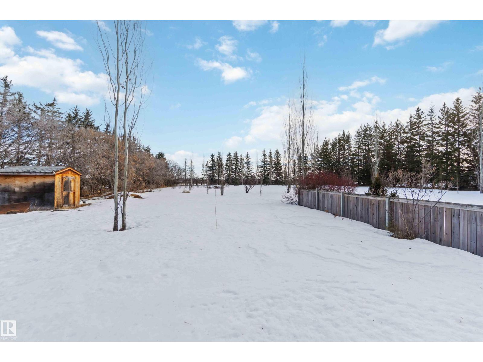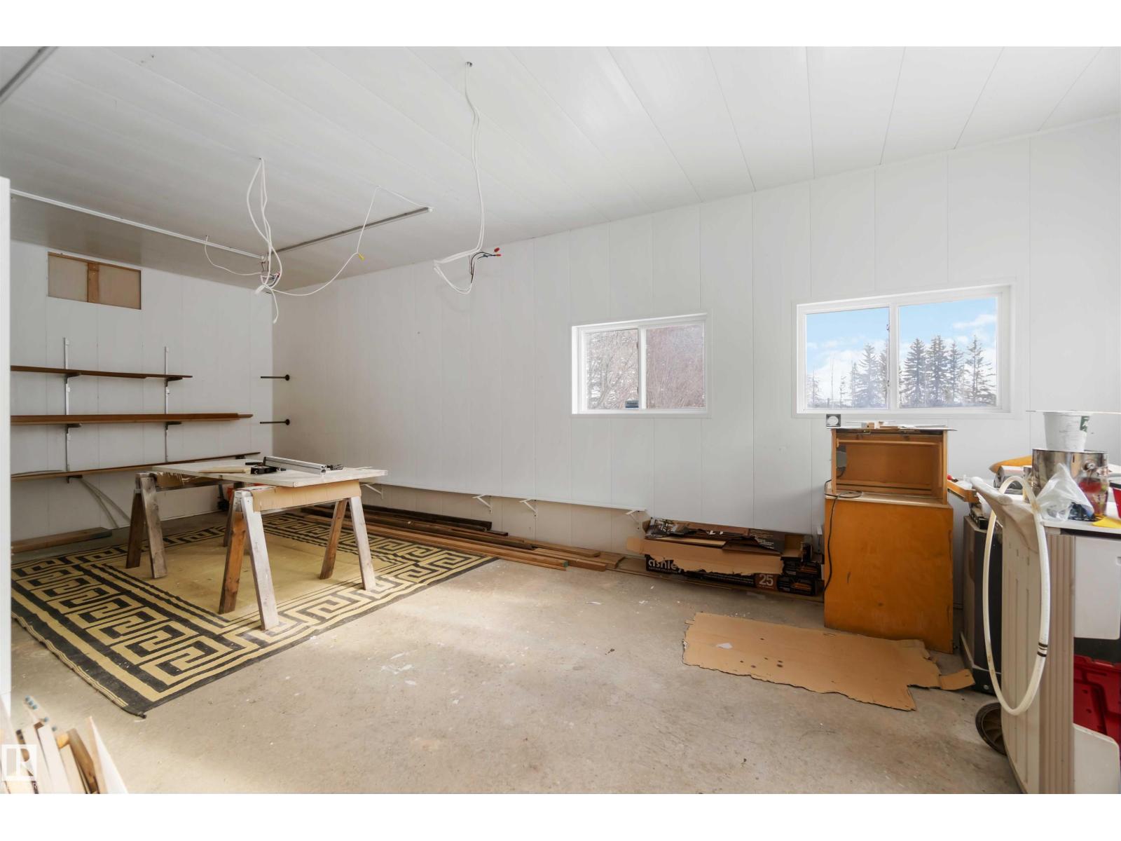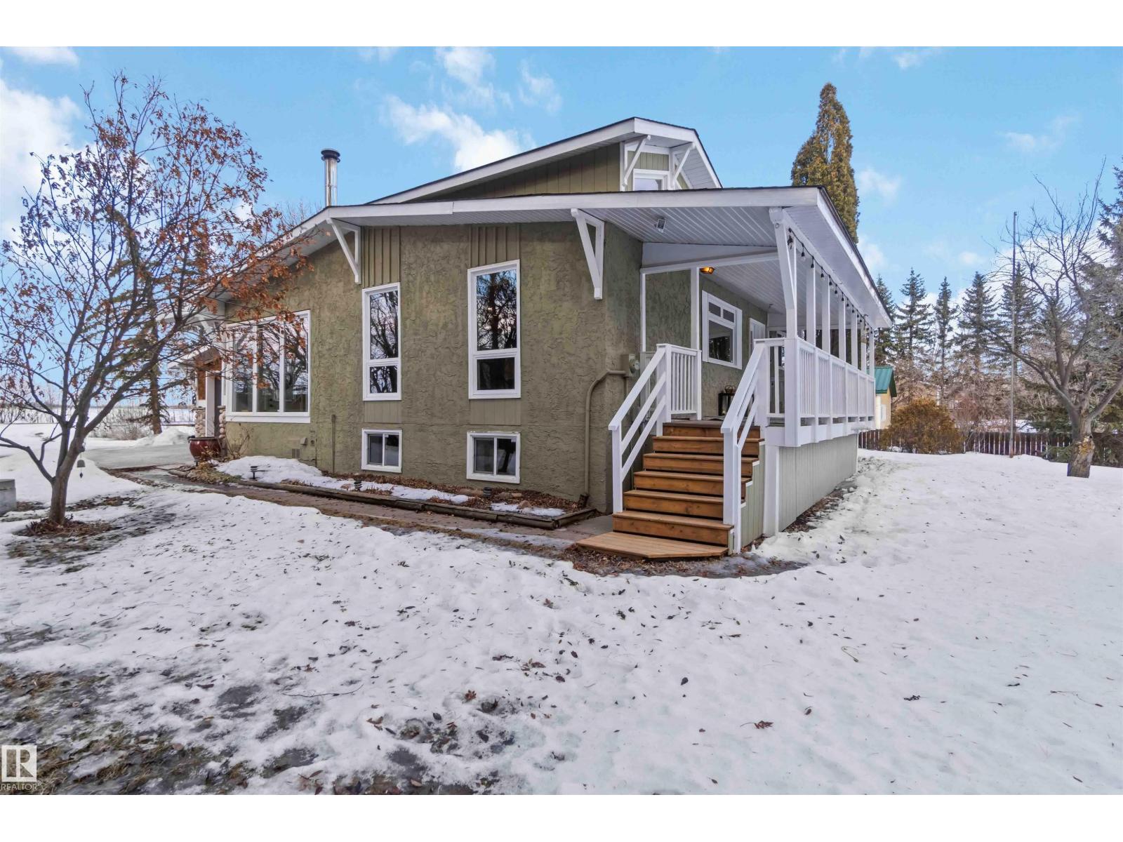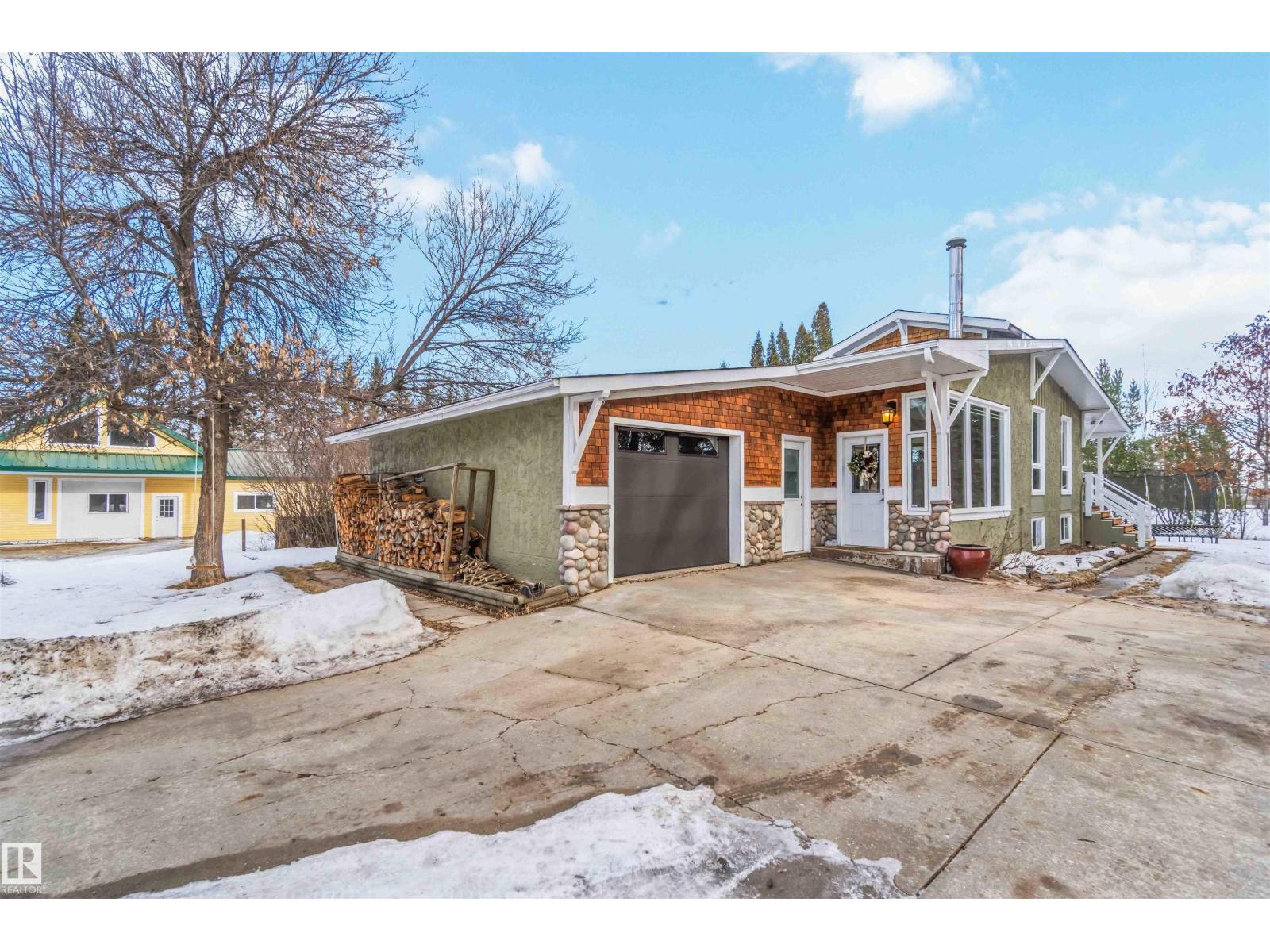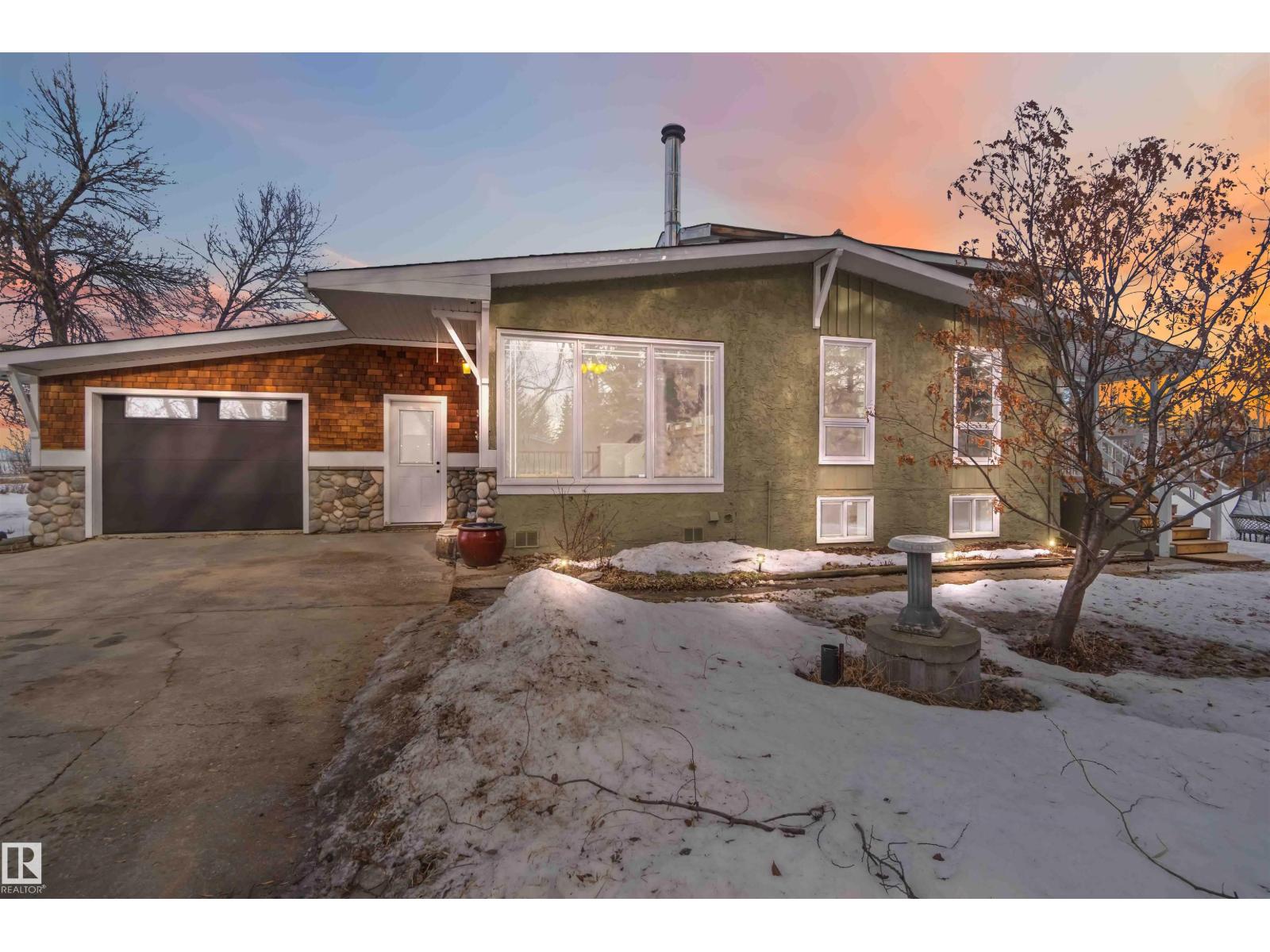 Over 2 acres of beautiful acreage-style living in the hamlet of Villeneuve, just 10 minutes west of St. Albert. This property is serviced with city water and a septic tank connected to the city septic system. A true dream shop measuring 82’ x 30’ plus loft features in-floor heating and is ideal for woodworking, mechanical projects, or storing all your toys. The main floor of the house offers a functional layout with a cozy wood-burning stove, large kitchen, and two bedrooms, with the option to convert the main-floor laundry back into a third bedroom. A 4-piece main bath and extensive built-in cabinetry add to the home’s charm and practicality. The fully developed basement includes two additional bedrooms, a 3-piece bathroom, and a spacious recreation room. Recent upgrades include most windows, the furnace, and the hot water tank. (id:63190)