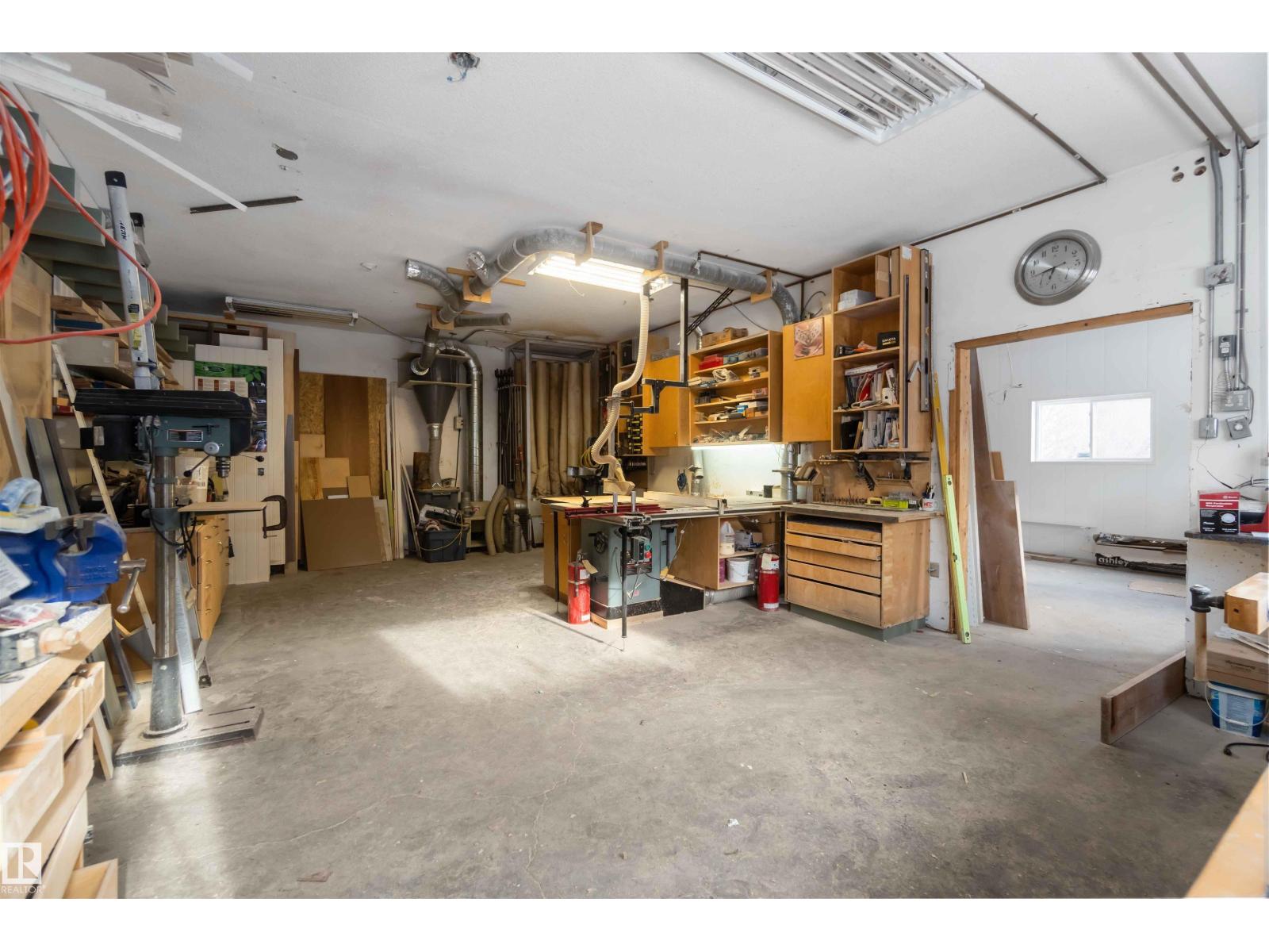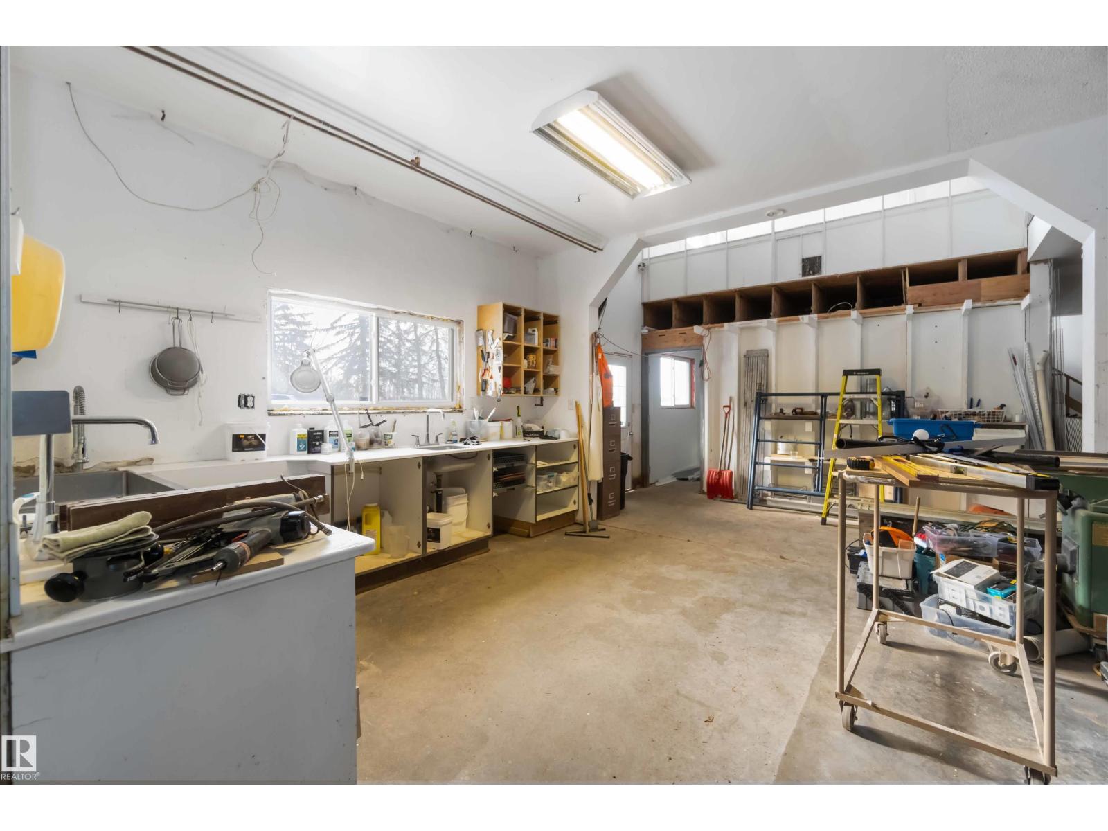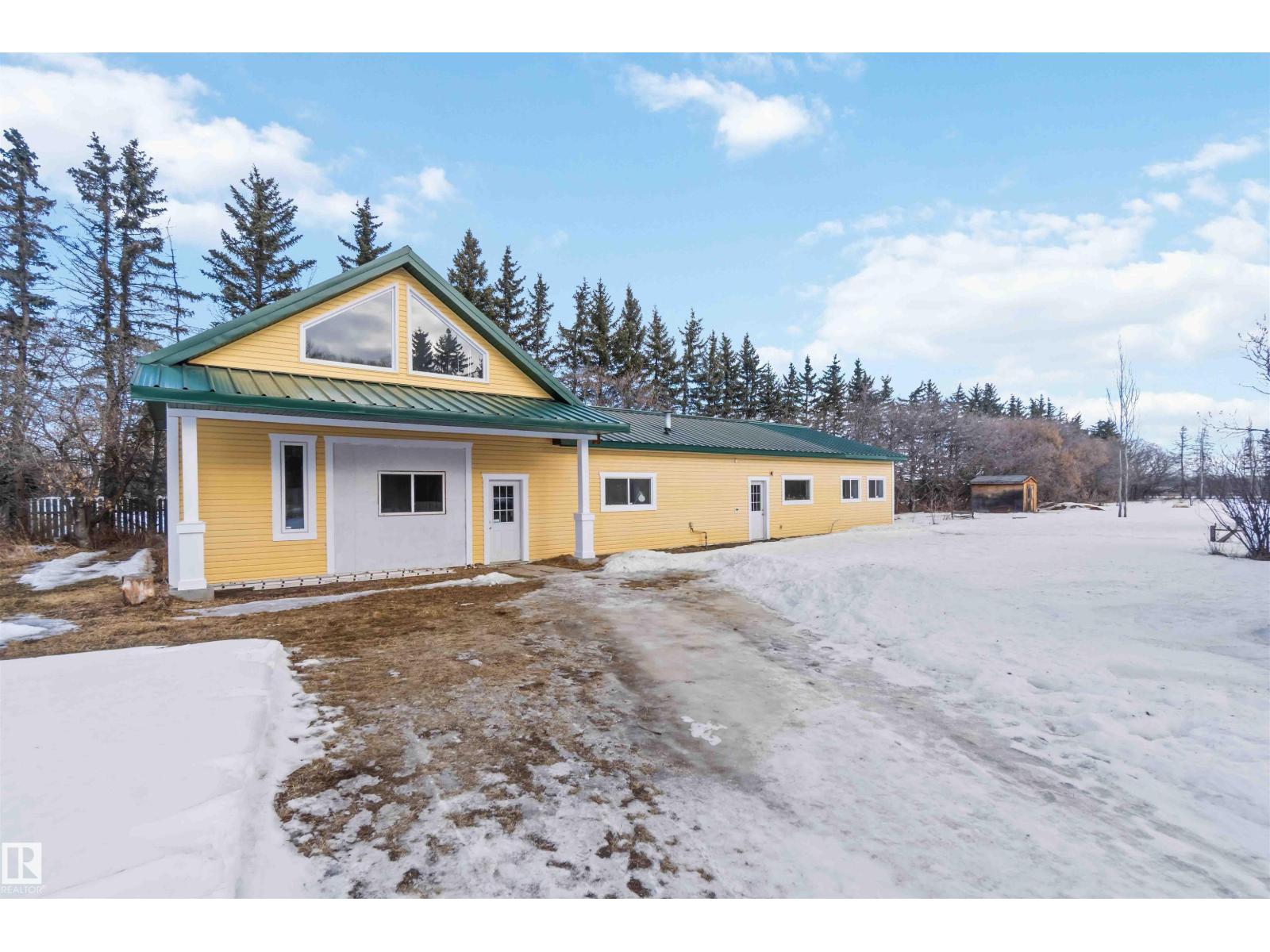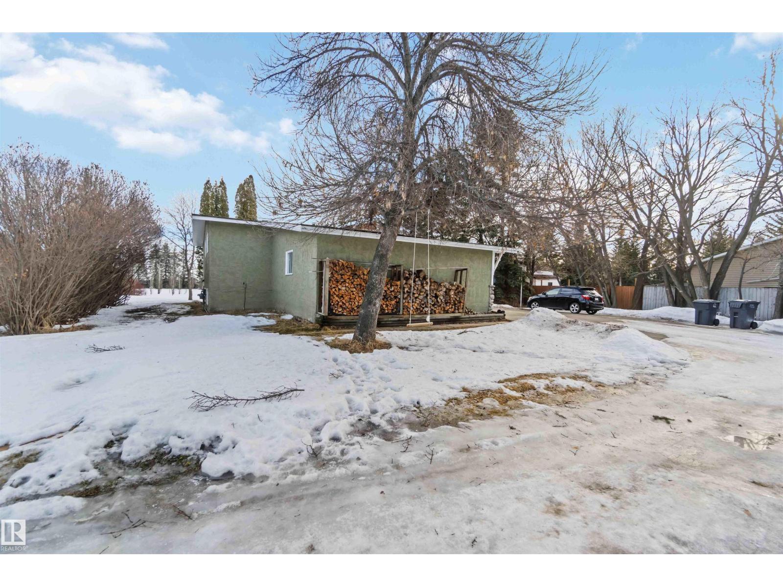 Over 2 acres of beautiful acreage-style living in the hamlet of Villeneuve, just 10 minutes west of St. Albert. This property is serviced with city water and a septic tank connected to the city septic system. A true dream shop measuring 82’ x 30’ plus loft features in-floor heating and is ideal for woodworking, mechanical projects, or storing all your toys. The main floor of the house offers a functional layout with a cozy wood-burning stove, large kitchen, and two bedrooms, with the option to convert the main-floor laundry back into a third bedroom. A 4-piece main bath and extensive built-in cabinetry add to the home’s charm and practicality. The fully developed basement includes two additional bedrooms, a 3-piece bathroom, and a spacious recreation room. Recent upgrades include most windows, the furnace, and the hot water tank. (id:63190)