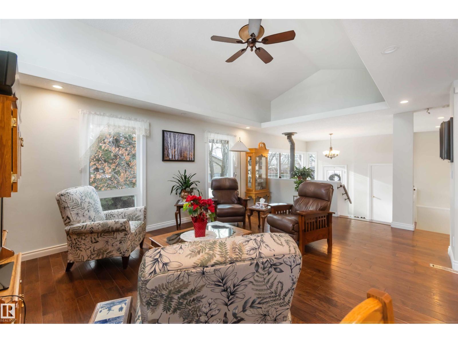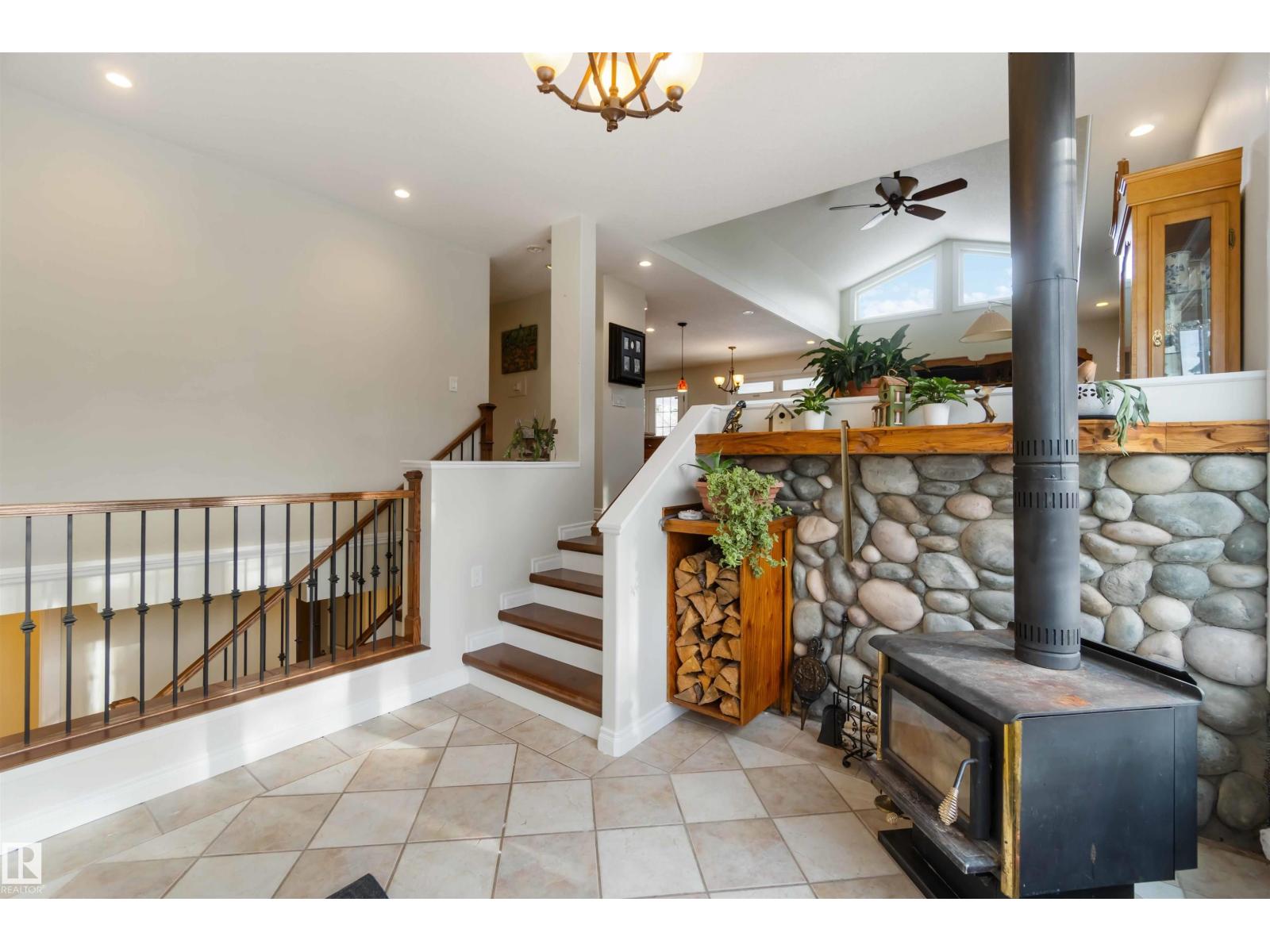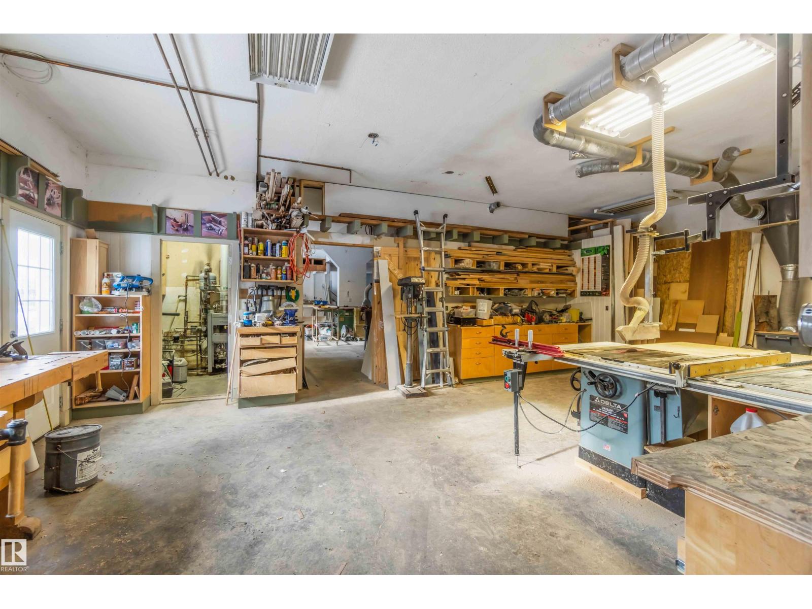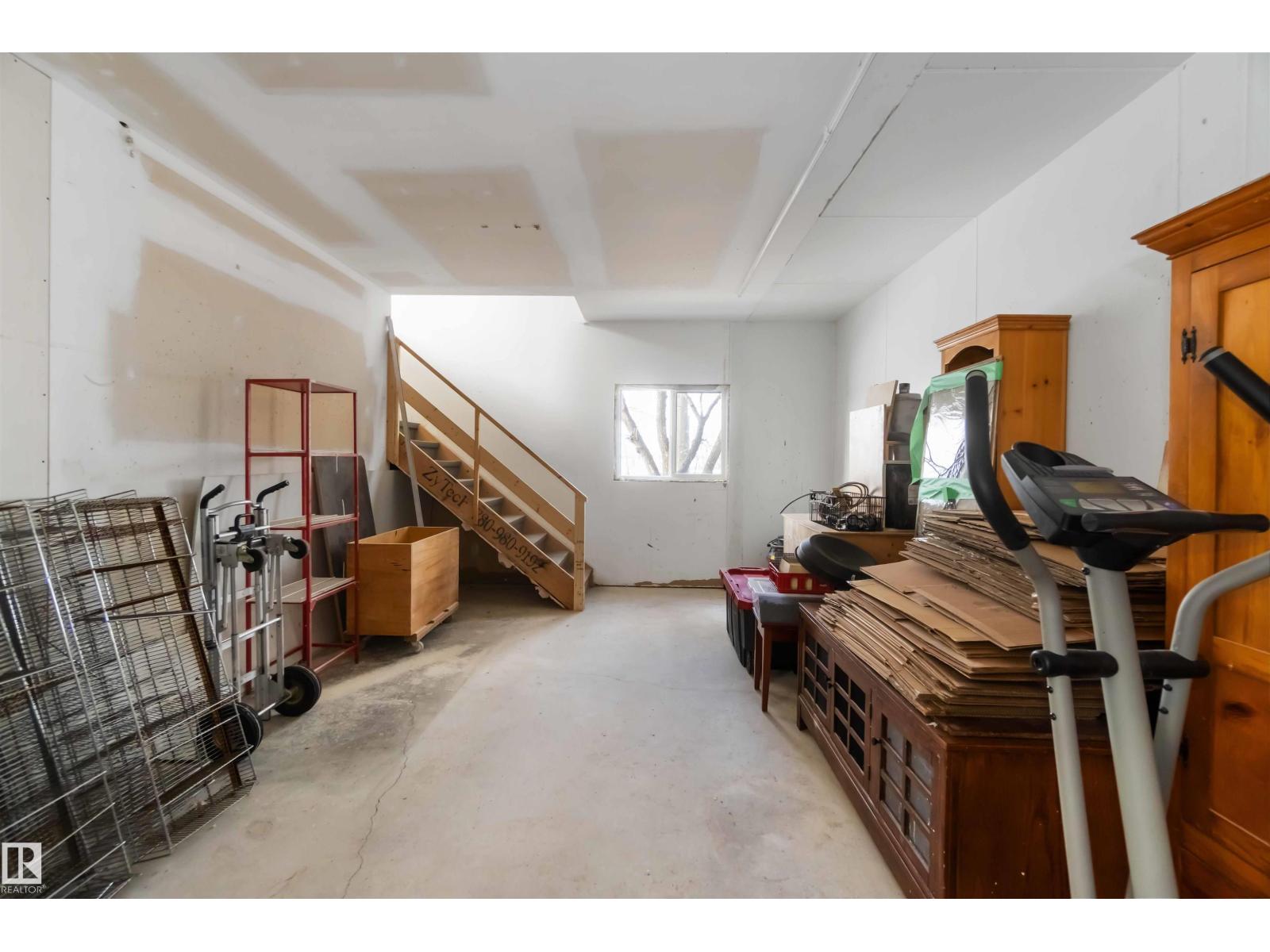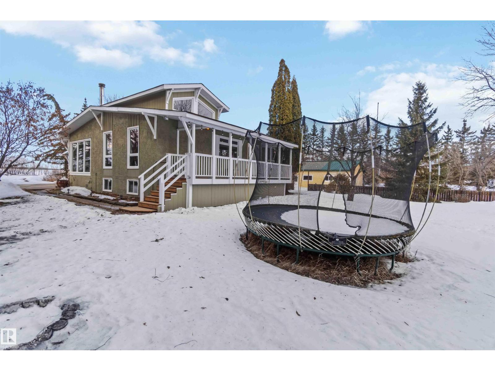 Over 2 acres of beautiful acreage-style living in the hamlet of Villeneuve, just 10 minutes west of St. Albert. This property is serviced with city water and a septic tank connected to the city septic system. A true dream shop measuring 82’ x 30’ plus loft features in-floor heating and is ideal for woodworking, mechanical projects, or storing all your toys. The main floor of the house offers a functional layout with a cozy wood-burning stove, large kitchen, and two bedrooms, with the option to convert the main-floor laundry back into a third bedroom. A 4-piece main bath and extensive built-in cabinetry add to the home’s charm and practicality. The fully developed basement includes two additional bedrooms, a 3-piece bathroom, and a spacious recreation room. Recent upgrades include most windows, the furnace, and the hot water tank. (id:63190)