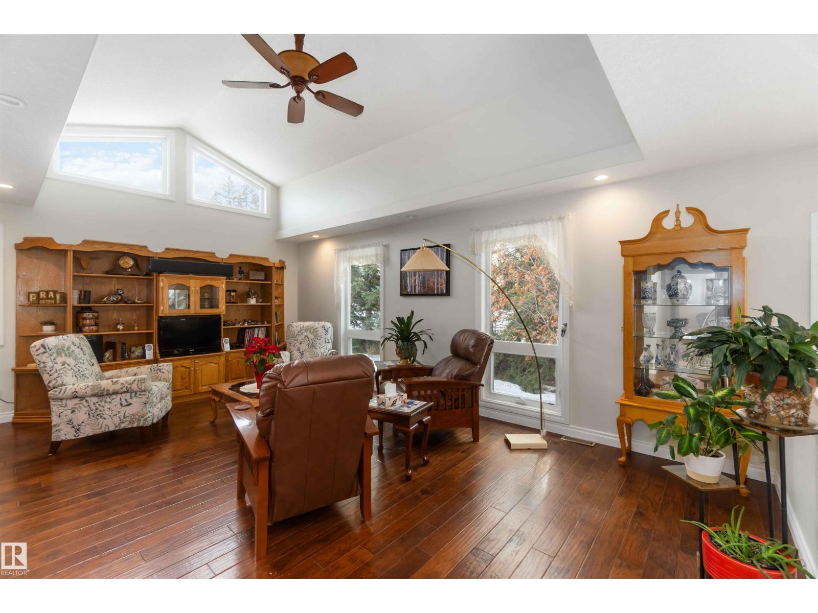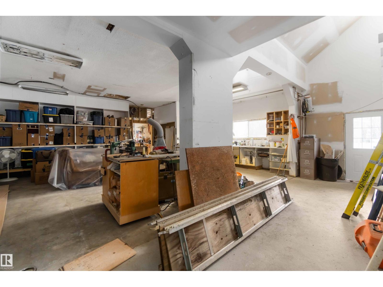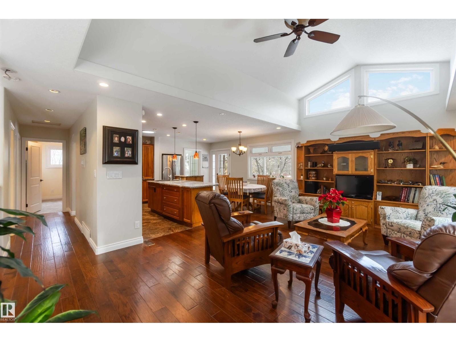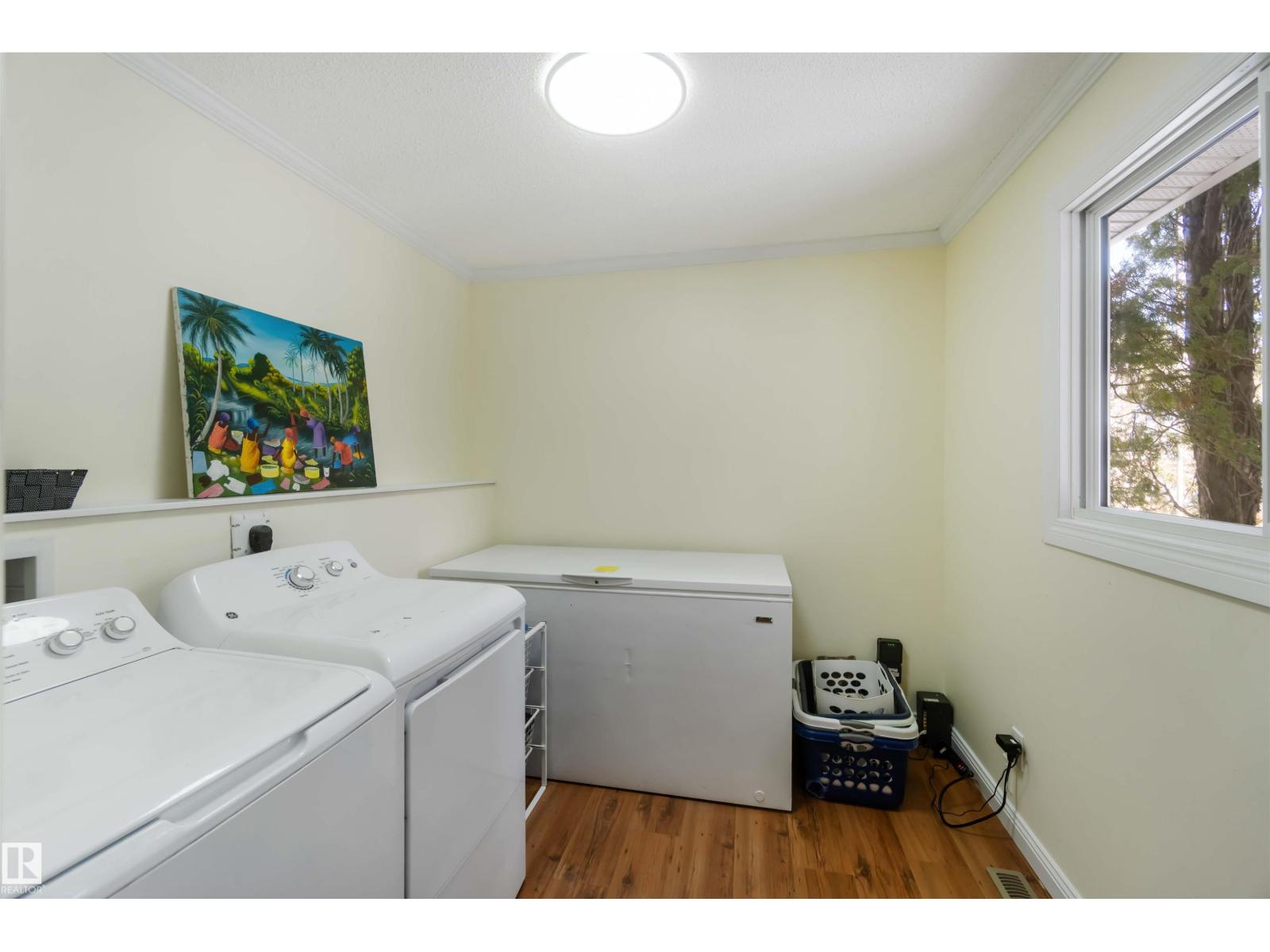 Over 2 acres of beautiful acreage-style living in the hamlet of Villeneuve, just 10 minutes west of St. Albert. This property is serviced with city water and a septic tank connected to the city septic system. A true dream shop measuring 82’ x 30’ plus loft features in-floor heating and is ideal for woodworking, mechanical projects, or storing all your toys. The main floor of the house offers a functional layout with a cozy wood-burning stove, large kitchen, and two bedrooms, with the option to convert the main-floor laundry back into a third bedroom. A 4-piece main bath and extensive built-in cabinetry add to the home’s charm and practicality. The fully developed basement includes two additional bedrooms, a 3-piece bathroom, and a spacious recreation room. Recent upgrades include most windows, the furnace, and the hot water tank. (id:63190)