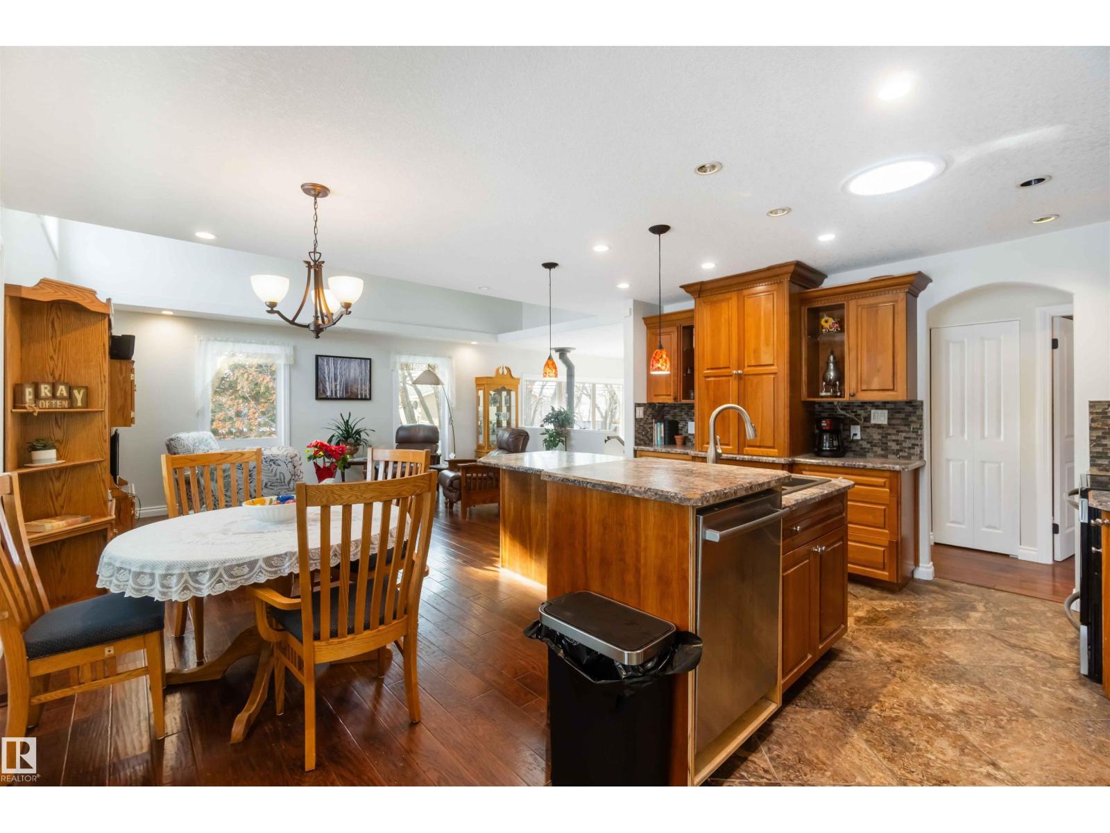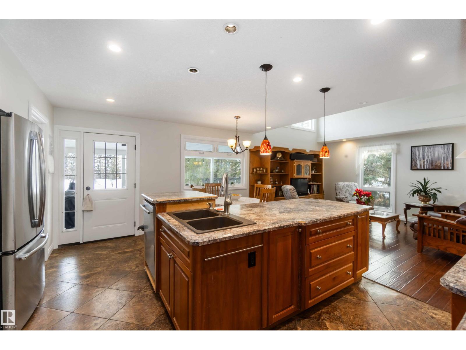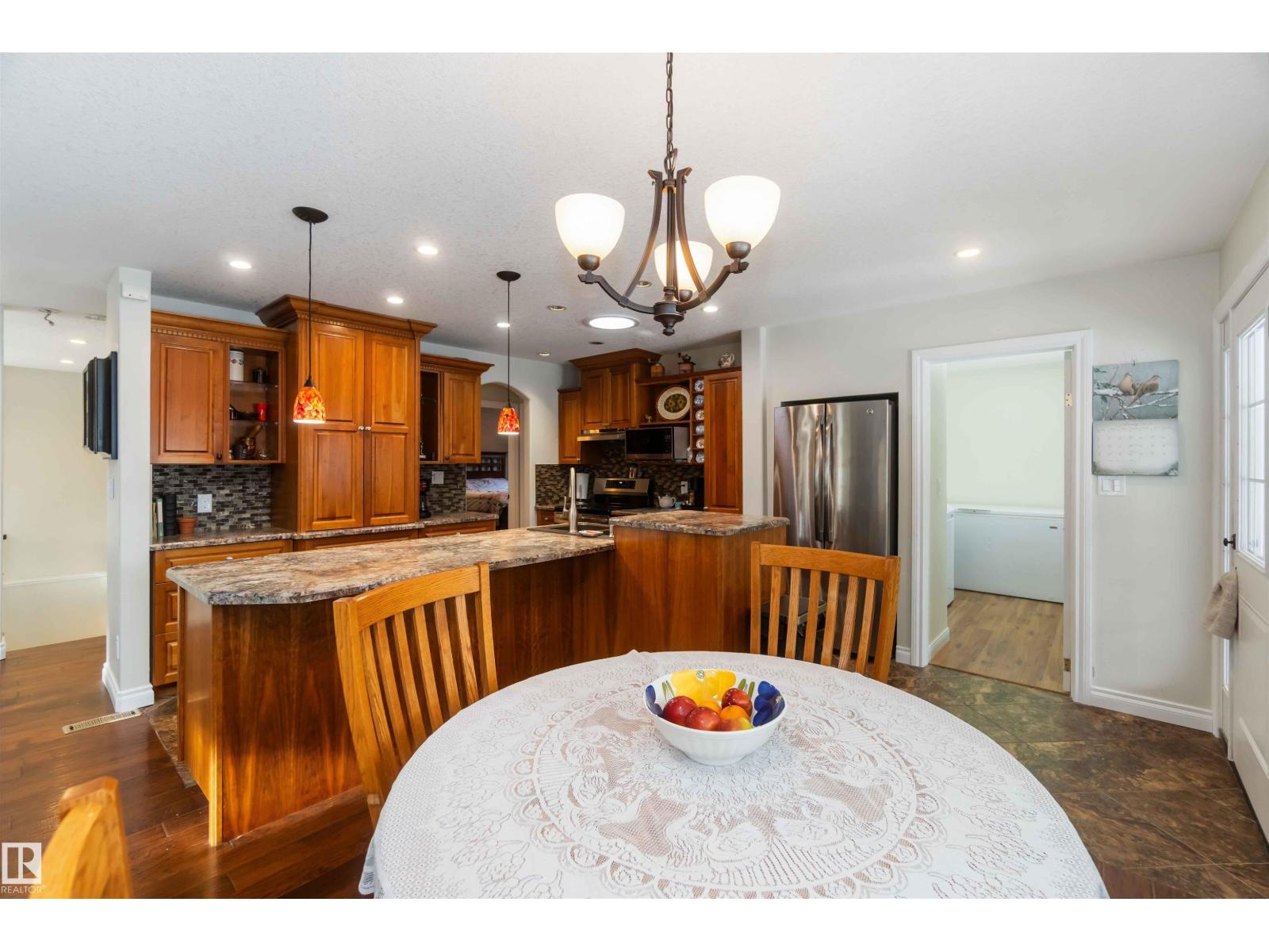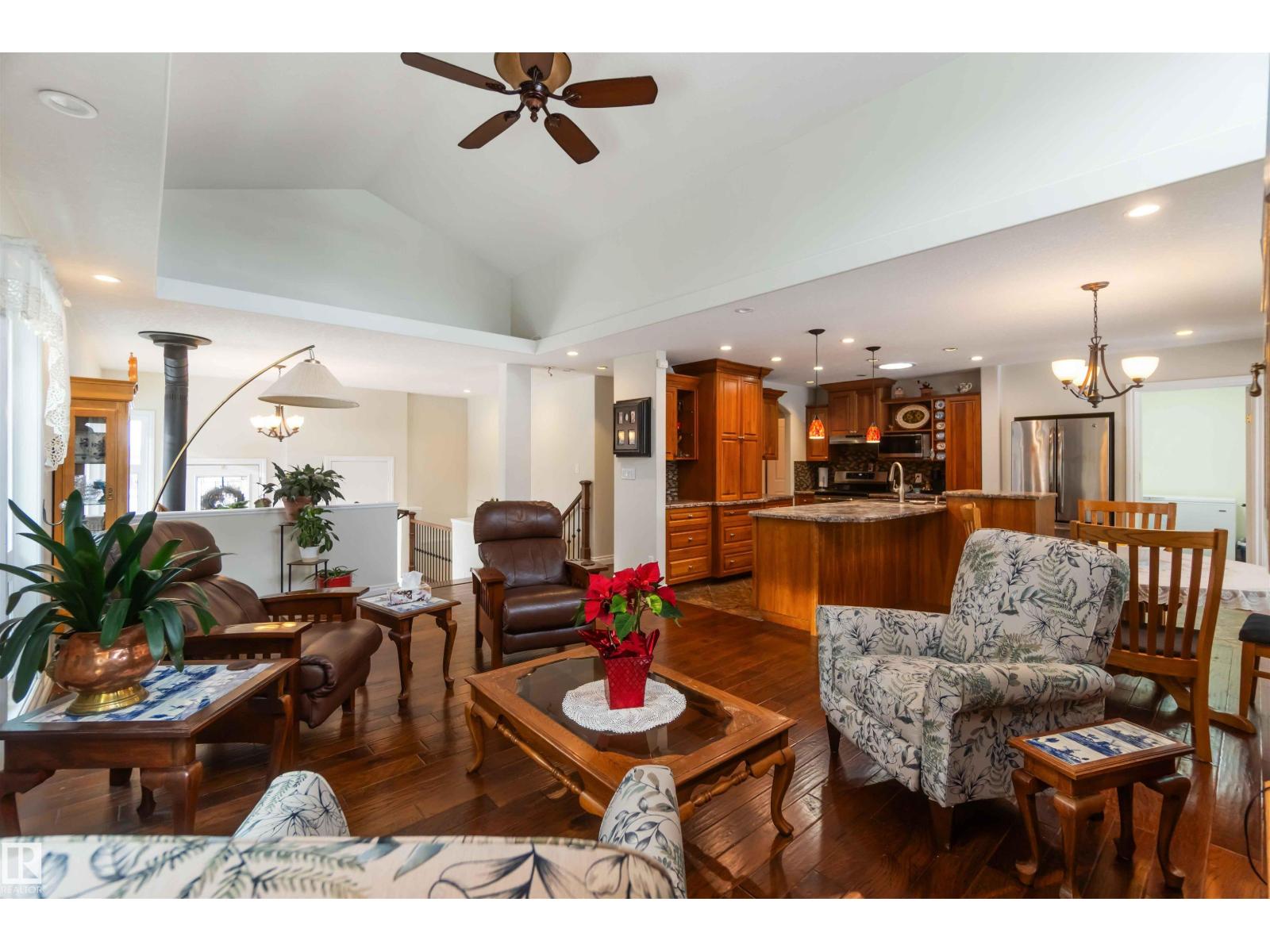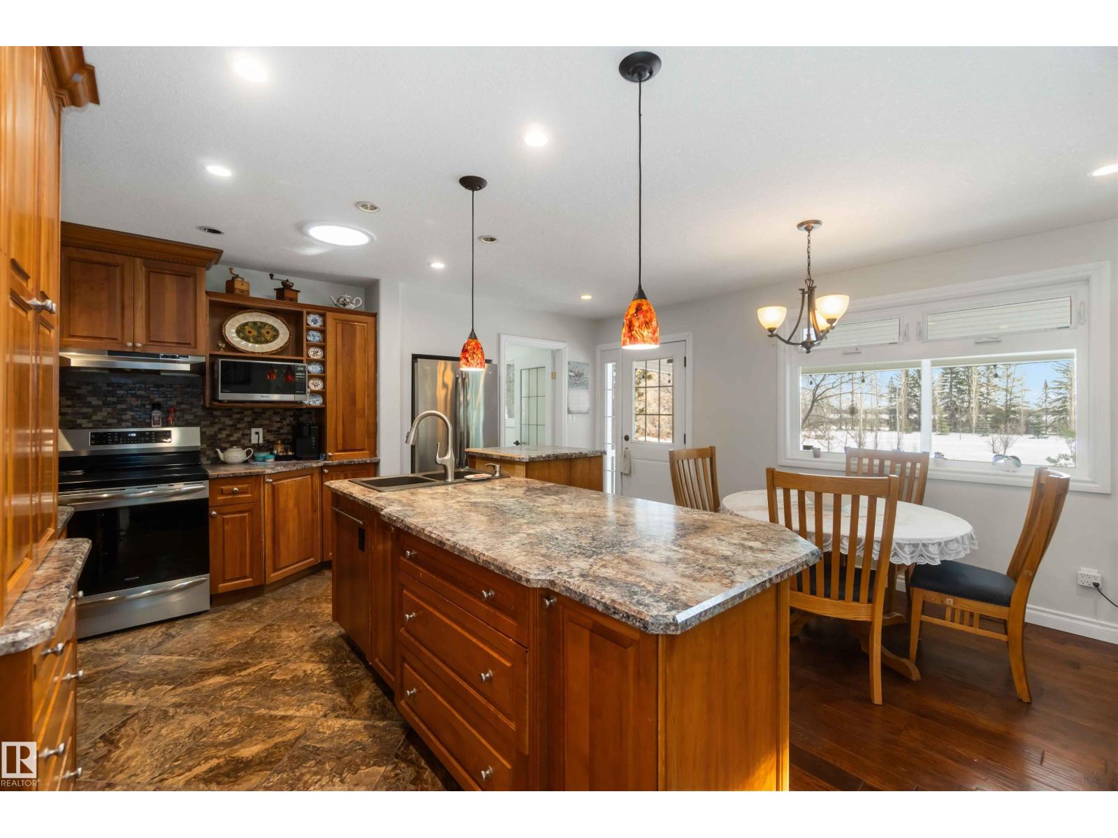 Over 2 acres of beautiful acreage-style living in the hamlet of Villeneuve, just 10 minutes west of St. Albert. This property is serviced with city water and a septic tank connected to the city septic system. A true dream shop measuring 82’ x 30’ plus loft features in-floor heating and is ideal for woodworking, mechanical projects, or storing all your toys. The main floor of the house offers a functional layout with a cozy wood-burning stove, large kitchen, and two bedrooms, with the option to convert the main-floor laundry back into a third bedroom. A 4-piece main bath and extensive built-in cabinetry add to the home’s charm and practicality. The fully developed basement includes two additional bedrooms, a 3-piece bathroom, and a spacious recreation room. Recent upgrades include most windows, the furnace, and the hot water tank. (id:63190)
