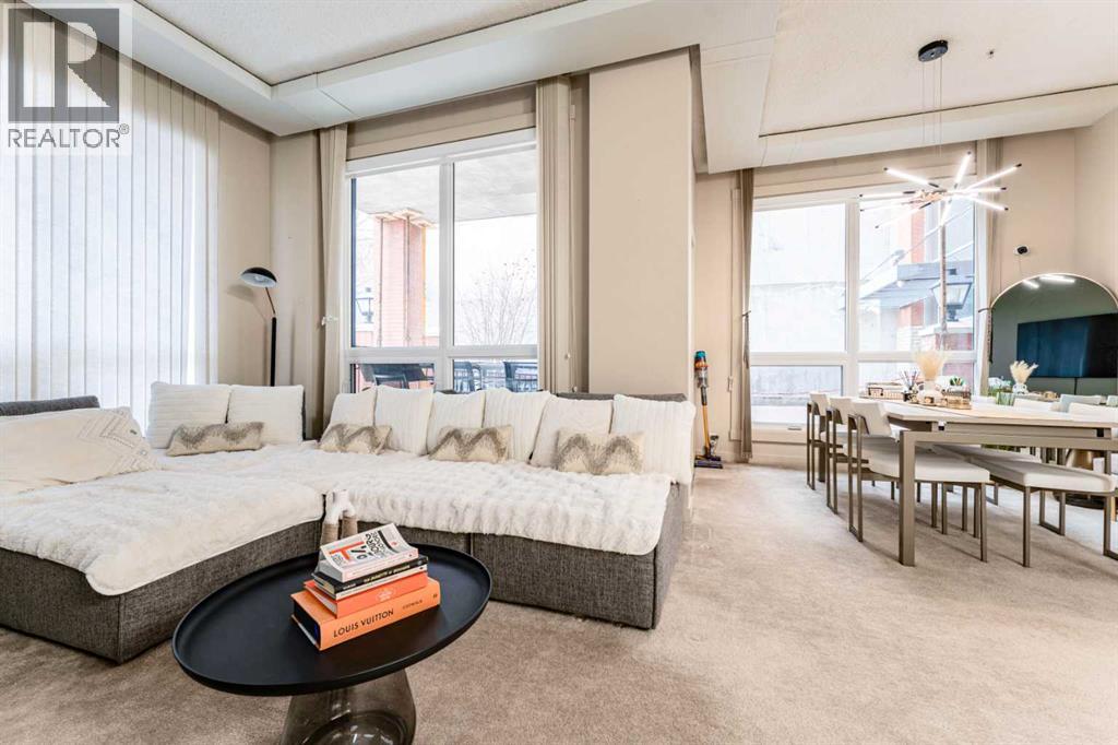 Welcome, first-time home buyers, investors, and working professionals! This is your opportunity to own a beautifully appointed ground-floor luxury unit in the highly sought-after London at Heritage Station—one of SW Calgary’s premier high-rise communities. Step into your own private outdoor oasis: a massive, fenced-in patio with green space, perfect for relaxing, gardening, or hosting outdoor gatherings. With its quiet, tucked-away location and direct ground-level access, you’ll enjoy exceptional convenience—come and go without passing through the main entrance, ideal for busy lifestyles or pet owners. Inside, this bright and spacious home impresses at every turn. The expansive living room is flooded with natural light from multiple tall windows, while the 10-foot ceilings enhance the open, airy atmosphere. The home features fresh, professionally painted interior walls, giving the space a crisp and modern feel. The open-concept kitchen features white modern cabinetry, sleek granite countertops with breakfast bar seating, a tile backsplash, a brand-new (2024) electric stove and built-in microwave/hood fan - a wonderful upgrade for cooking enthusiasts. The home also includes newer contemporary light fixtures and remote-controlled window blinds, adding convenience and style throughout. Convenience continues with in-suite front-loading laundry. Both bedrooms are generously sized, offering tall windows, pot lights, and excellent privacy. The primary suite includes a stylish 4-piece ensuite, while the second bedroom is complemented by an additional modern 3-piece bathroom. This well-managed building offers full-time on-site security and comes with a secure underground parking stall. Residents enjoy exceptional amenities, including a 17th-floor rooftop patio with breathtaking downtown and mountain views, a common rooftop terrace and party room, heated indoor access to Save-On-Foods and the attached shopping plaza. Commuting is effortless as location is just steps to Herita ge LRT station. Situated on Horton Road SW, you’re just minutes from schools, playgrounds, parks, shopping, restaurants, and walking paths—everything you need for a connected, walkable lifestyle. Whether you're seeking your first home, an investment property, or a stylish professional retreat, this unit offers the perfect blend of luxury, privacy, and convenience. Don’t miss your chance—book your private showing today! (id:63190)